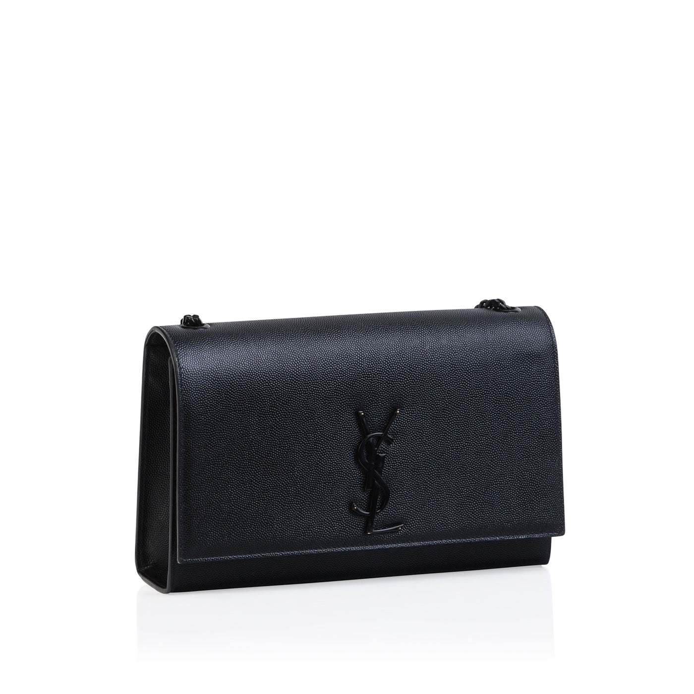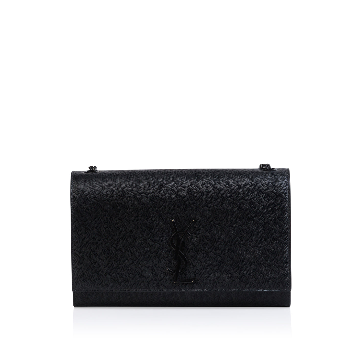 The perfect mix of edgy and elegant, Saint Laurent presents their iconic Kate bag in a black on black palette. Crafted from grainy leather, this bag is the ideal accessory to take you from day to night. Offering the best of both worlds, the Kate bag is your go-to for any occasion. Wear this piece with pretty much anything in your wardrobe - whether you dress it up or down, the Kate is the perfect compliment to your look. The black leather complimented by the glossy, jet black hardware and prominent YSL logo gives us major rock n' roll vibes while remaining timeless and chic. The perfect balance between classic and contemporary, the Kate is a well worthy addition to any luxury handbag collection.