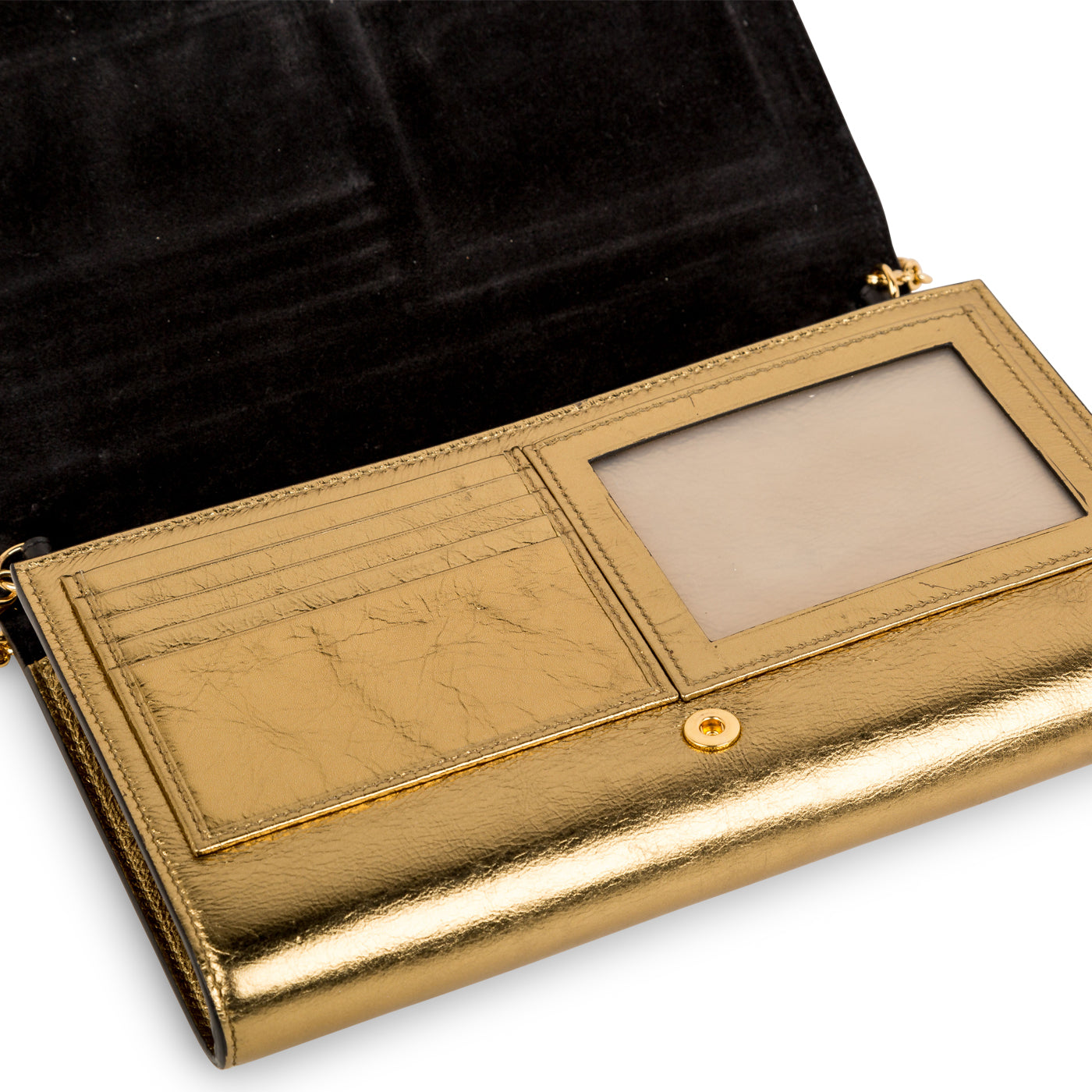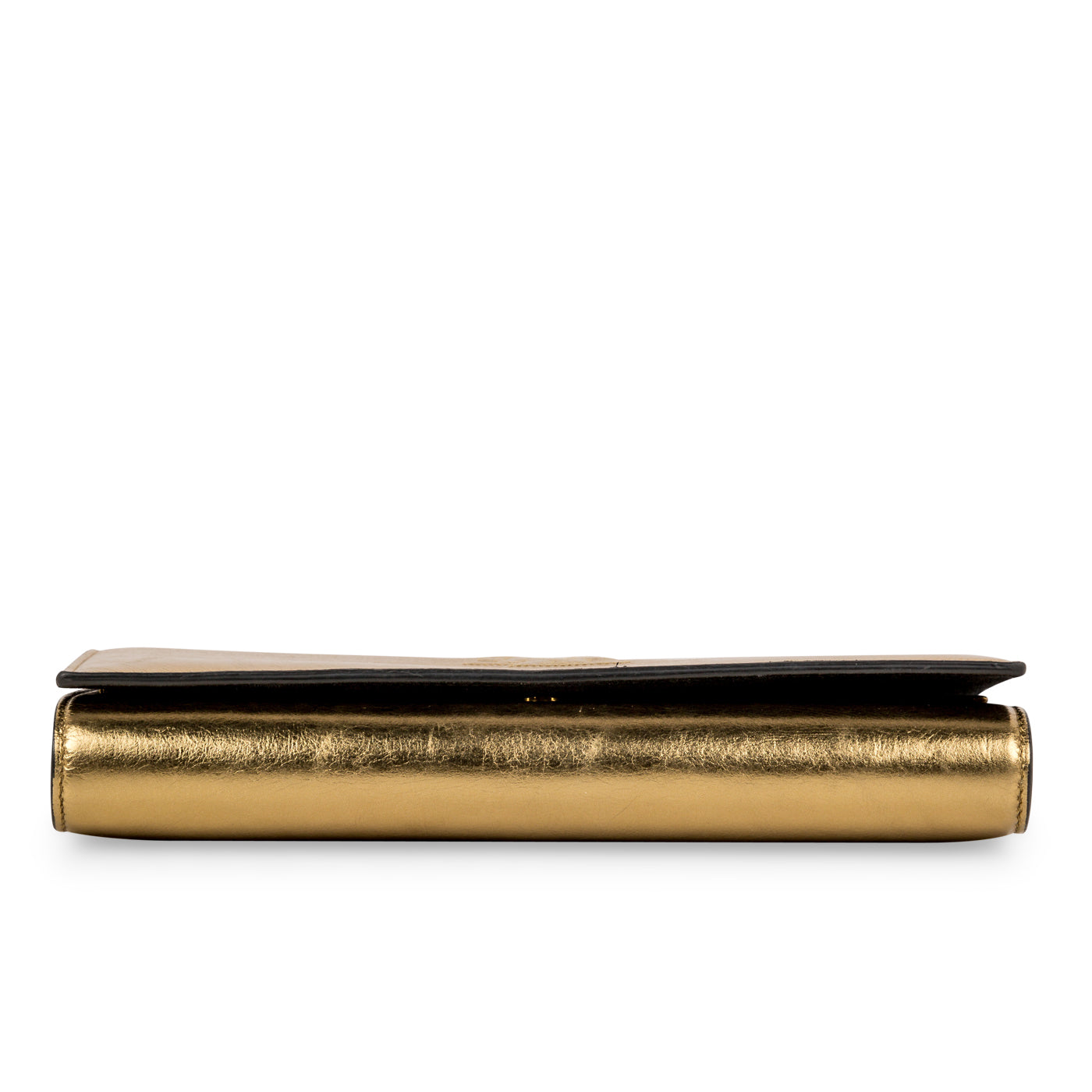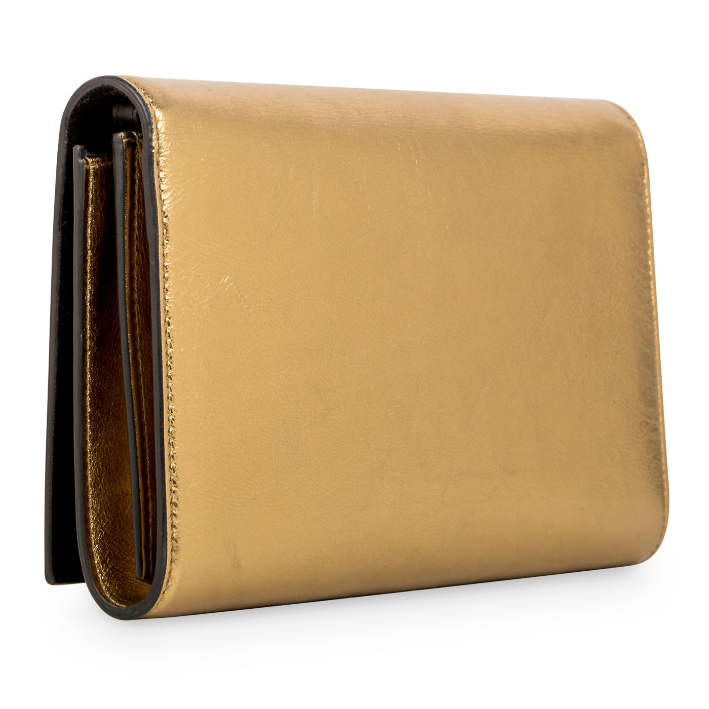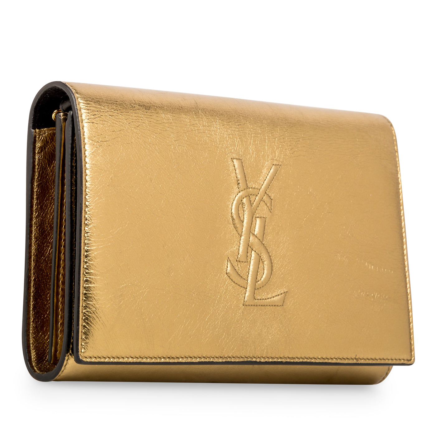 A timeless and iconic YSL signature, the Flap bag displayed in a metallic gold hue is an absolute necessity for any handbag enthusiast. Crafted from aged calfskin leather, this bag is the ideal accessory to take you from day to night. Offering the best of both worlds, the Kate bag is your go-to for any occasion. Wear this piece with pretty much anything in your wardrobe - whether you dress it up or down, the Kate is the perfect accessory to compliment your look. The perfect balance between classic and contemporary, the YSL Logo Flap is a well worthy addition to any luxury handbag collection.