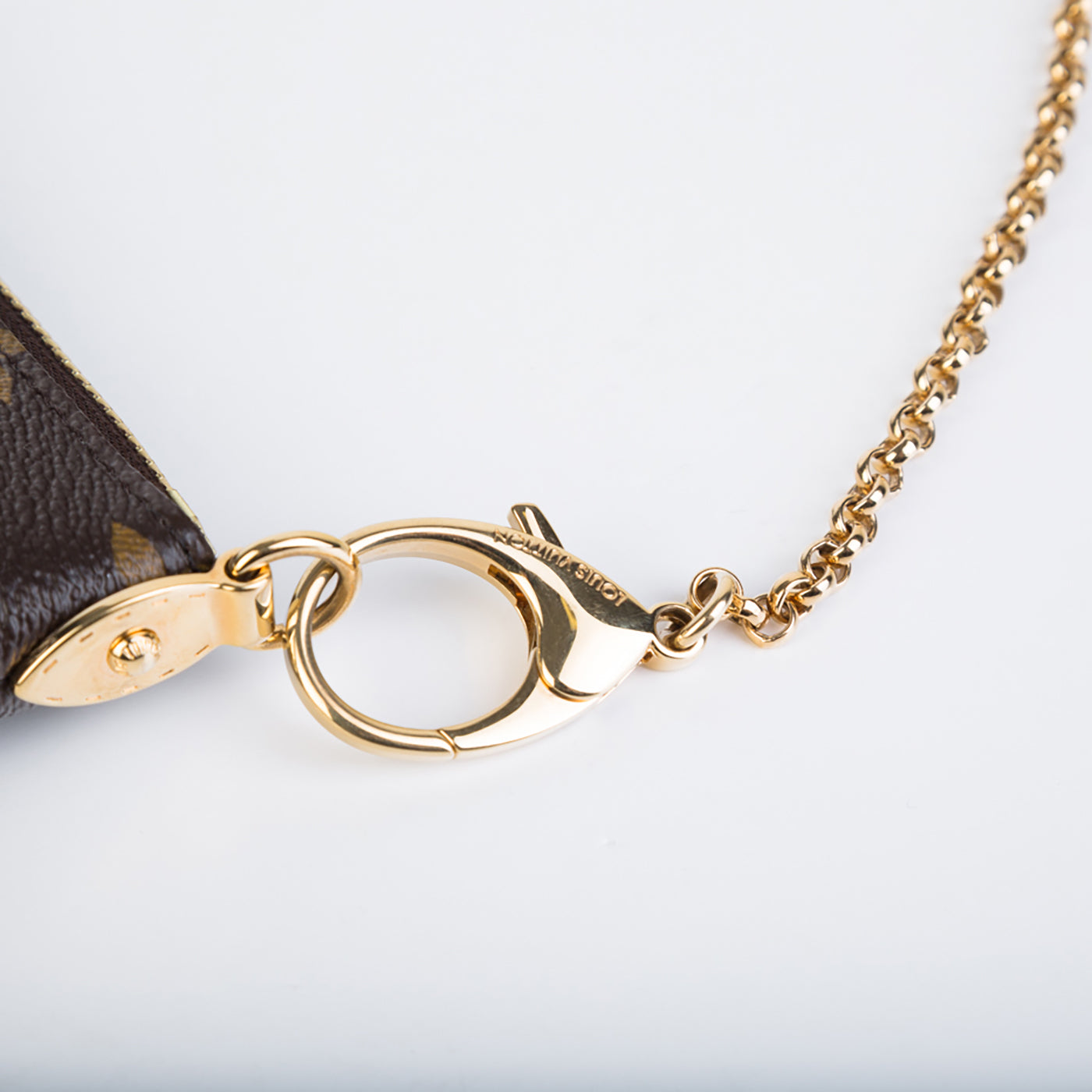 This discontinued clutch on chain by Louis Vuitton is highly sought after even after it’s production ended in 2016. The heritage logo plaque, paired with the detachable and delicate gold chain means this bag is the perfect go to clutch bag for that instant Parisian-chic. The purse zips close making it secure and it comes complete with a Louis Vuitton dust bag.