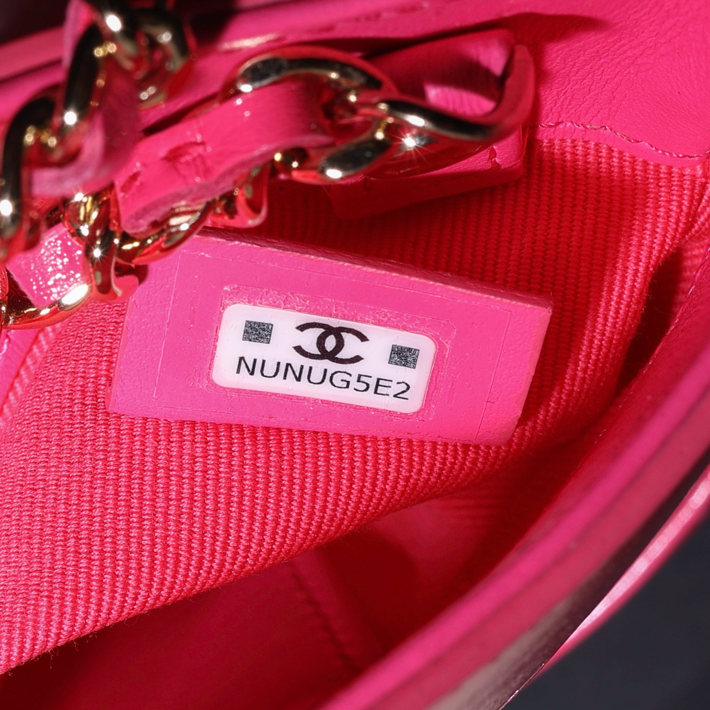 - Chanel embossed leather logo tag