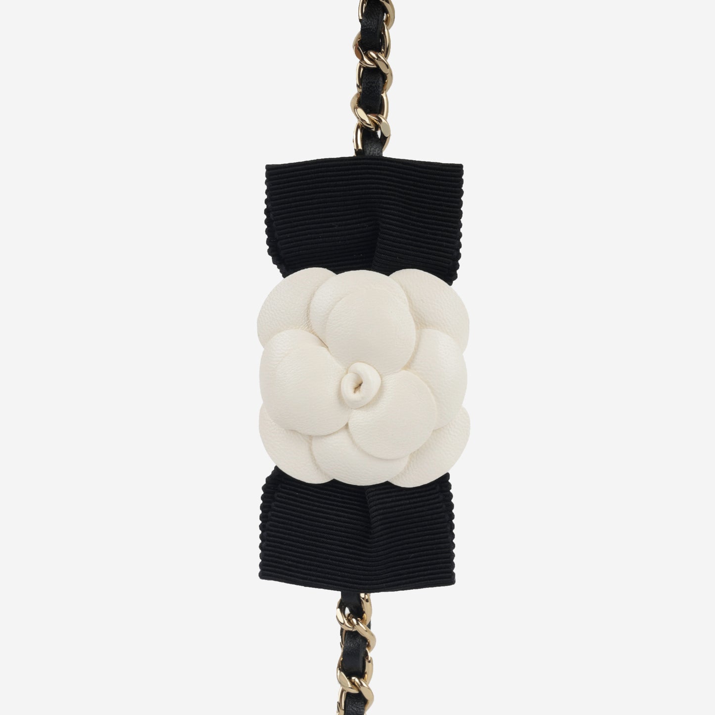 - Interwoven chain / leather strap with leather Chanel camellia bow