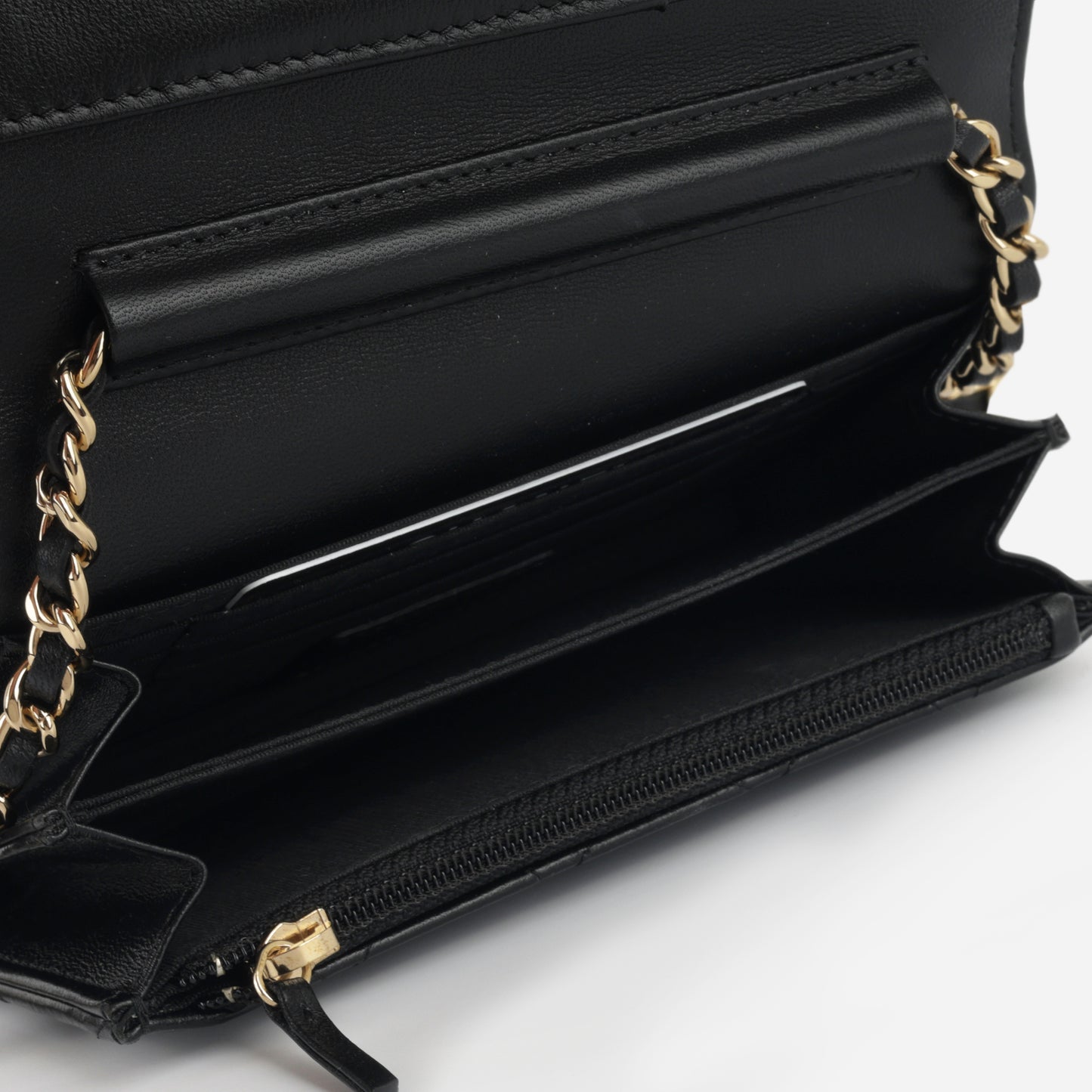 In a mini size variation of the classic wallet on chain, this bag embodies modern sophistication and adaptability. Whether you opt to carry it as a chic clutch in your hand or utilise its convenient chain strap for effortless crossbody wear, the possibilities are as endless as they are stylish.