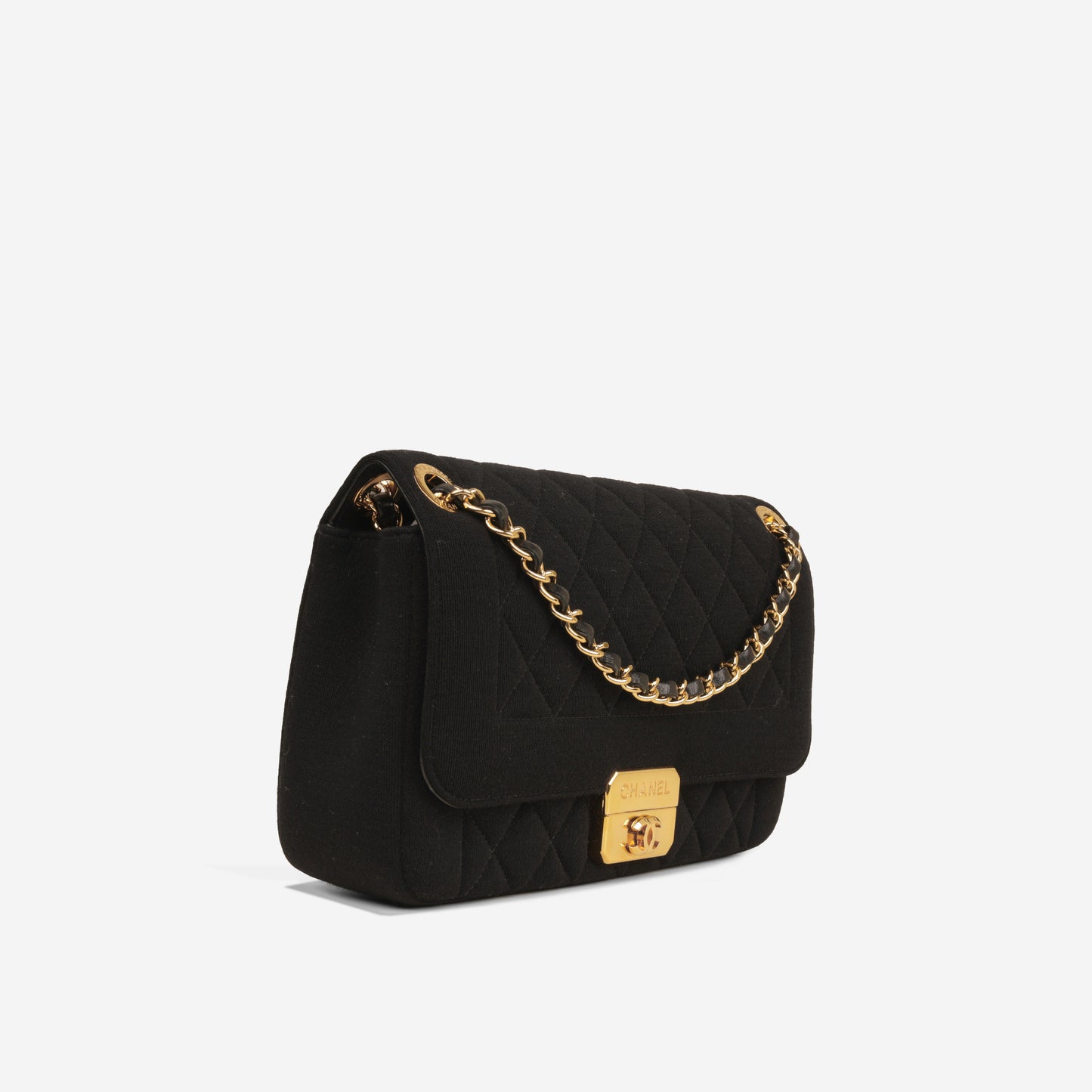 Elevate your style with our Medium Chic With Me Flap in stunning Black Jersey. Crafted with meticulous attention to detail, this compact yet chic accessory is designed to make a statement.