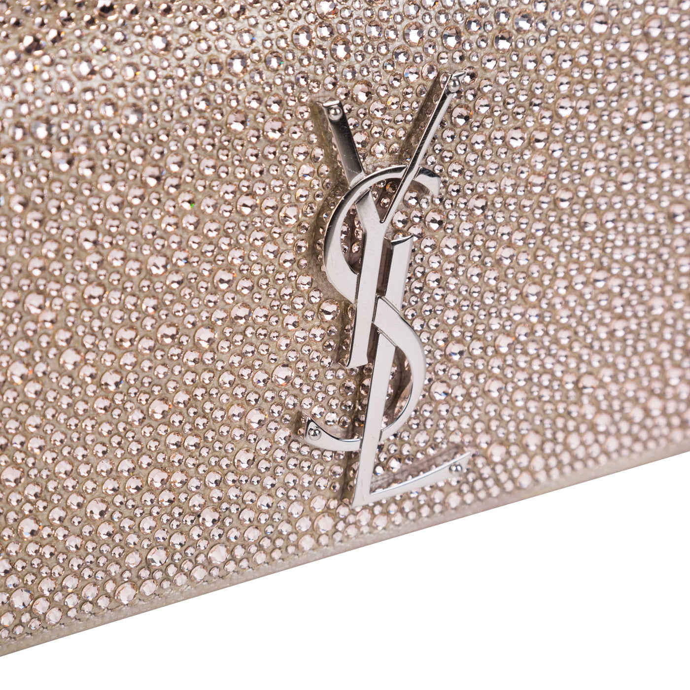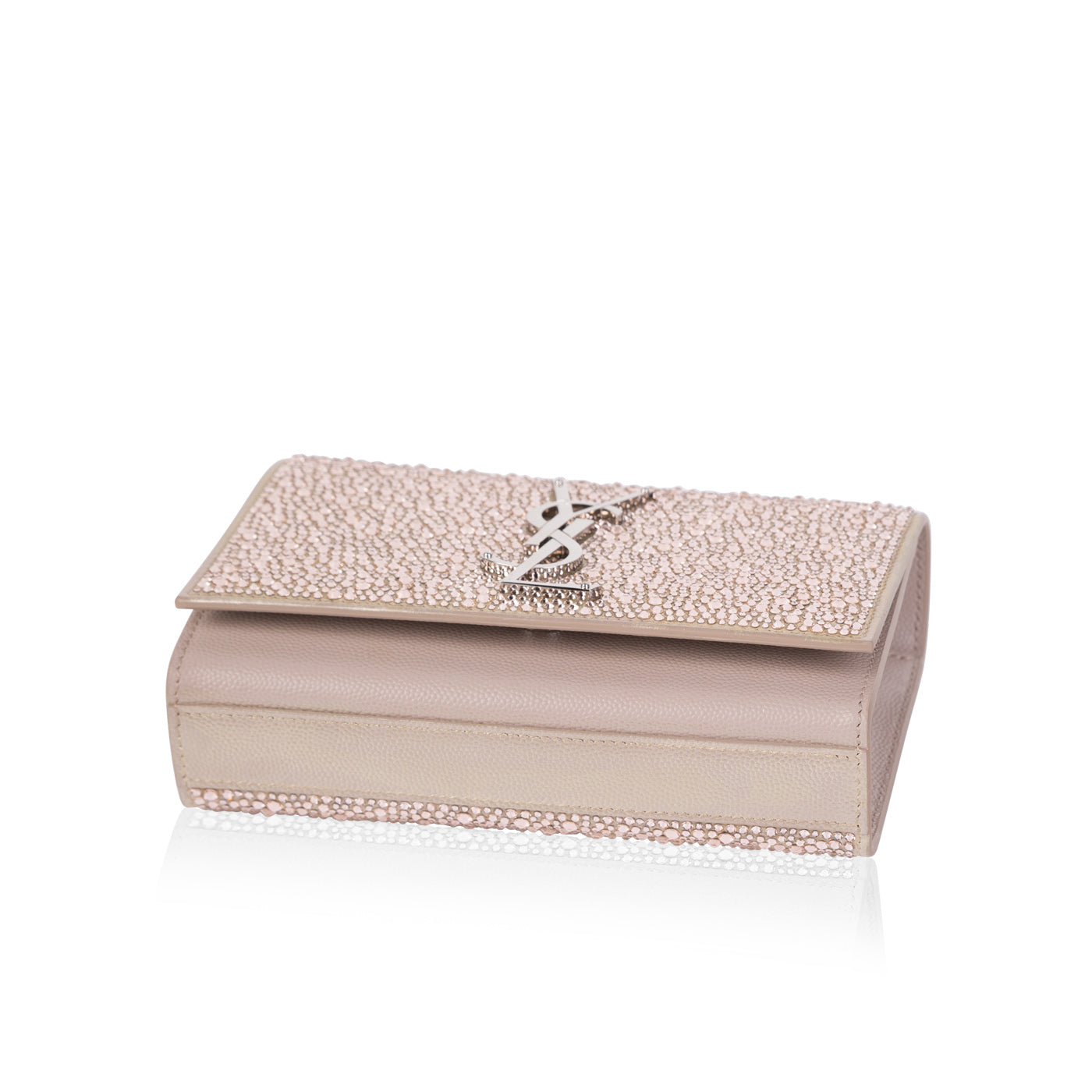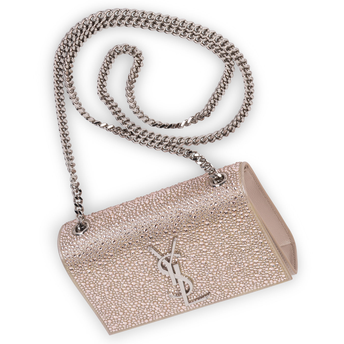 The Monogram Kate bag is one of the most iconic bags that Saint Laurent has come out with - and who doesn't love a glammed up, glitzy version of a classic piece? Although this bag originally came without the crystal embellishment, we love that this once ordinary piece has been transformed into a unique, gem of a bag - all thanks to Mya James, who does the finest bespoke crystal art on anything imaginable! With the prominent YSL logo in silver-tone hardware, and a long chain for shoulder / cross body usage, the Kate bag is the perfect option for a confident, glamorous woman with a love for sparkles. Whether you wear this bag with an extravagant ballgown or a simple, evening cocktail dress, you will certainly make a statement by shining through the evening...literally.