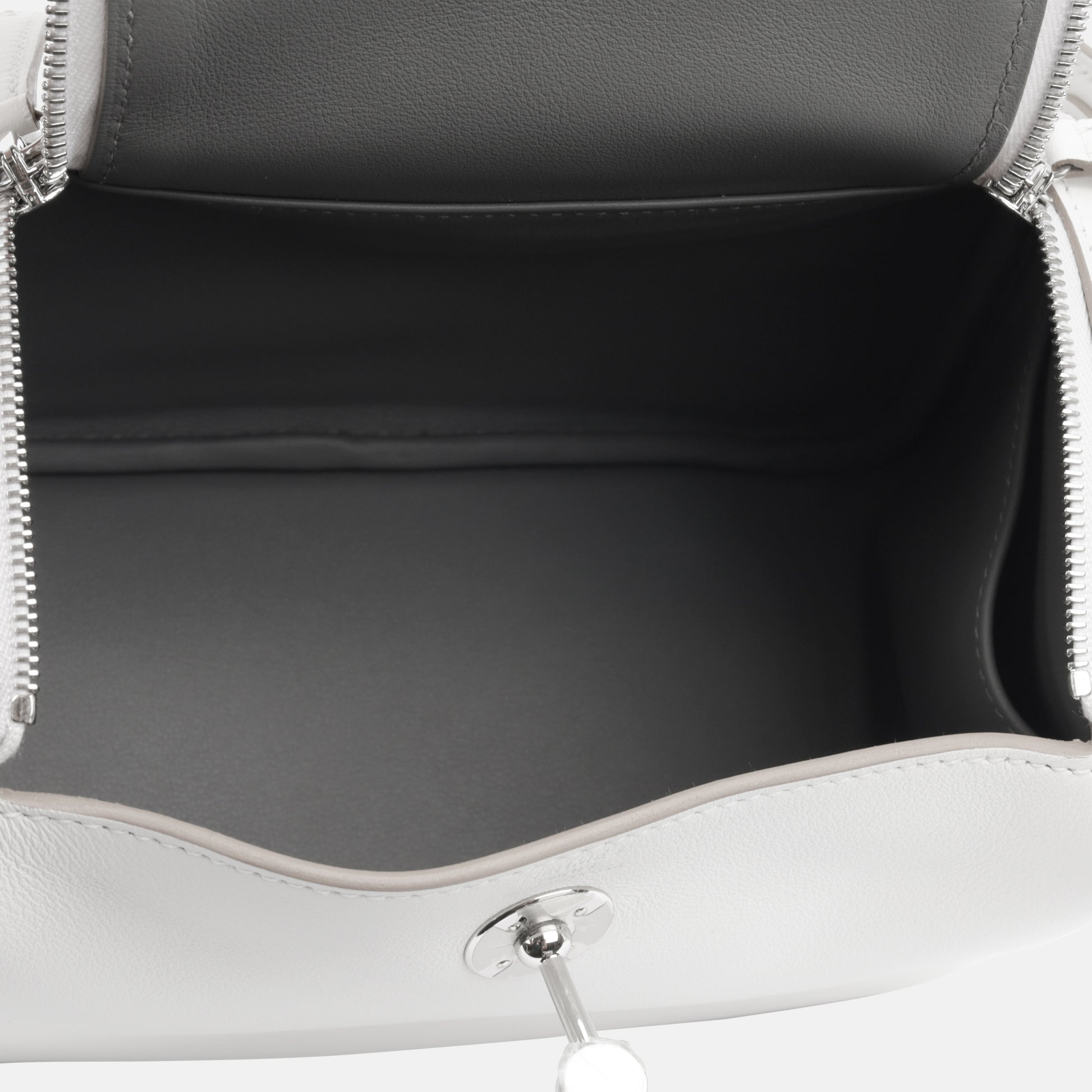 Taking the name from the 1920's American street dance, the Lindy Hop, the soft and supple bag from Hermes folds in different ways to replicate the folds of the body. This piece is crafted from Pure White (officially known as Blanc) swift leather, contrasted by a Gris Etain interior lining and accented with palladium hardware; making it the perfect everyday bag. A prime example of “low-key luxury”, the Lindy is discreet while remaining glamorous in the most tasteful, modest way possible.