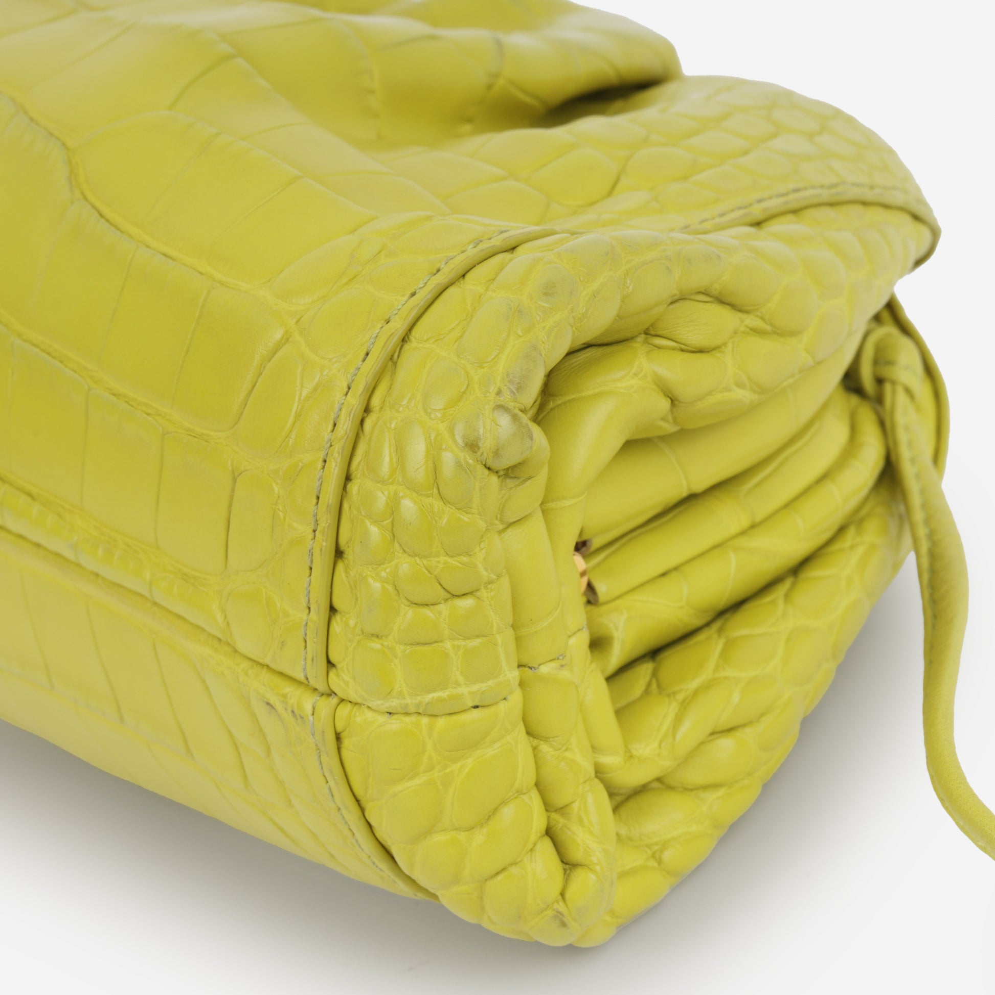 Bottega Veneta presents their beautiful mini pouch bag, the ultimate understated bag to emphasise all your outfits. Carefully crafted in exotic crocodile leather in a s slouchy silhouette, this bag offers practicality as well as style. Fit all your every day essentials inside the spacious interior.