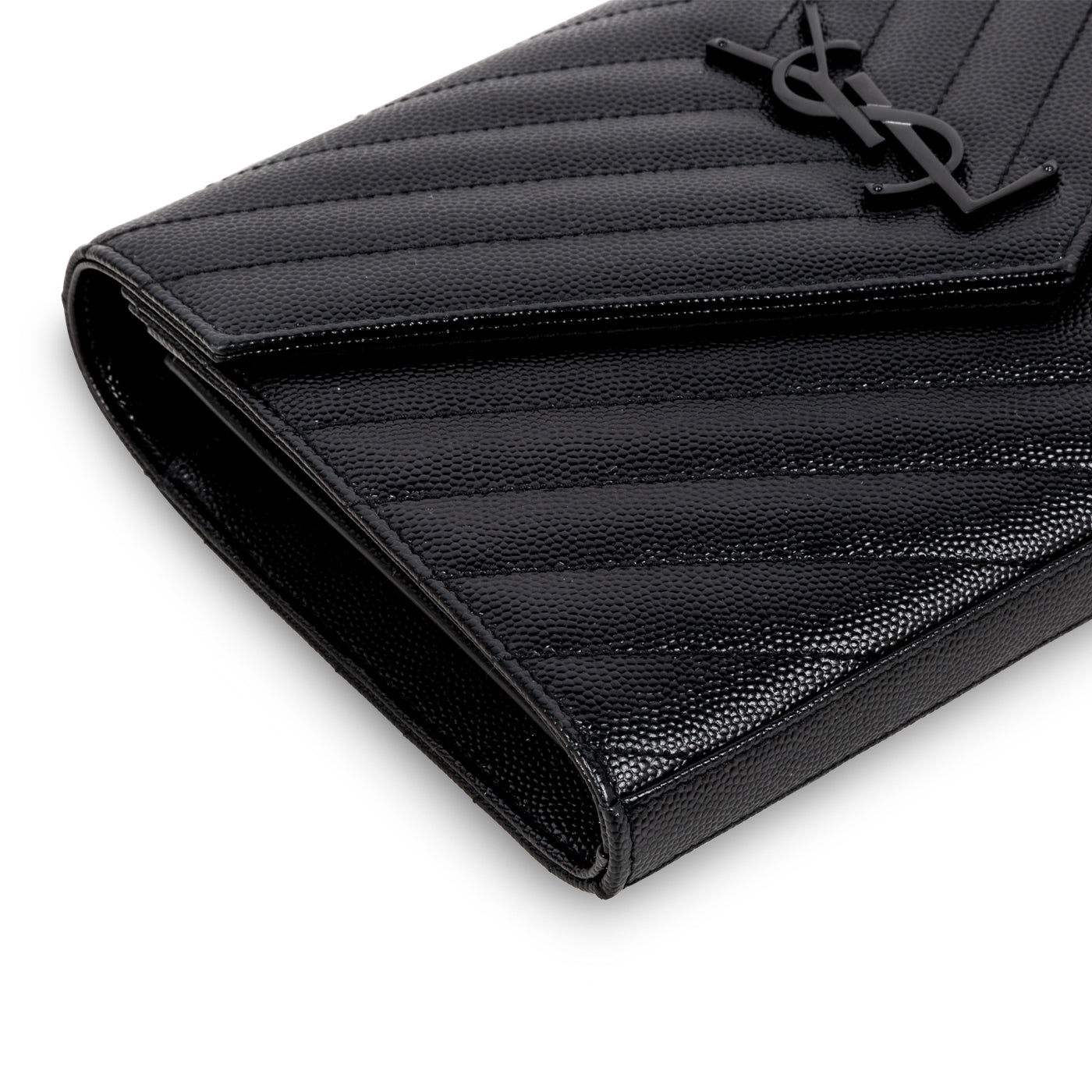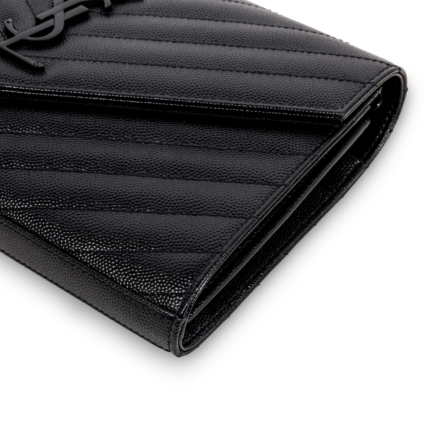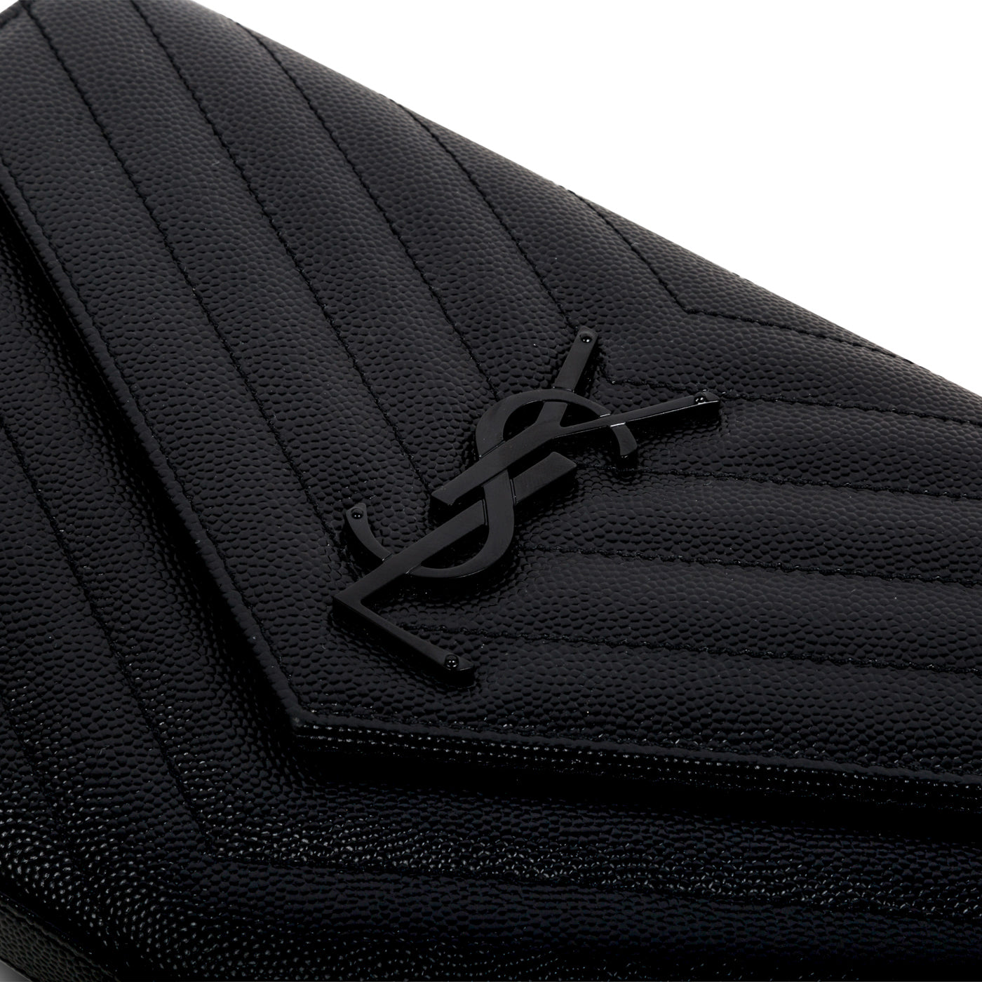 Why carry a wallet inside a bag when you could just wear your wallet and be practical, handsfree, AND stylish? The Saint Laurent wallet on chain is the perfect, easy bag for a dressy night out or a casual day piece. Featuring its iconic YSL logo in black hardware, this bag is the ideal choice for a chic woman with a love for luxury. With its discreet black on black combination, you can be sure to make a statement whilst remaining subtly chic by adding this bag as a statement piece to a neutral toned outfit. This bag is truly a must-have piece and a worthy addition to any handbag collection.