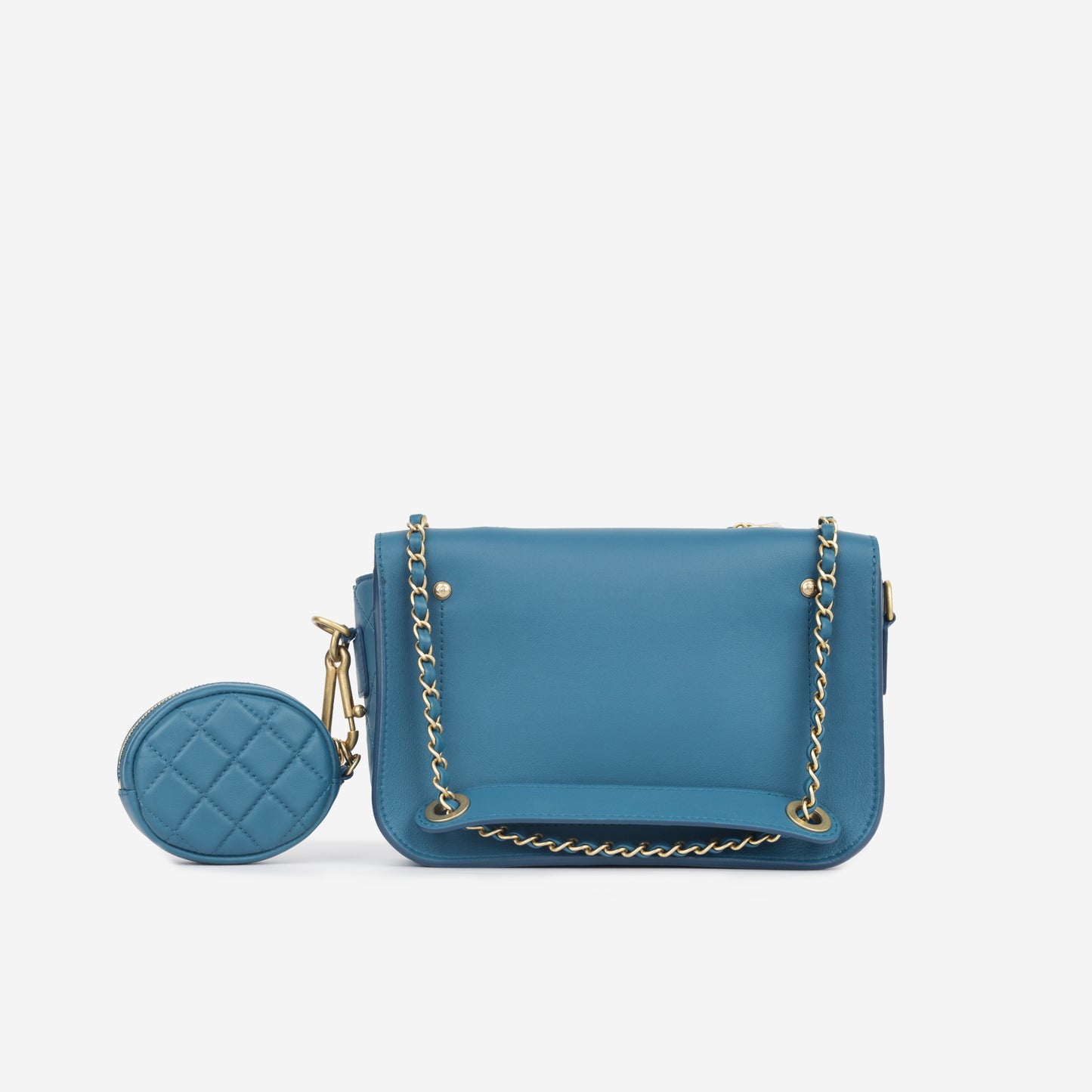 Introducing the Multi Pouching Flap in a captivating shade of blue, a stylish and versatile accessory that not only adds a touch of elegance to your look but also comes with the added convenience of a detachable pochette. This thoughtfully designed ensemble combines modern aesthetics with practical functionality.