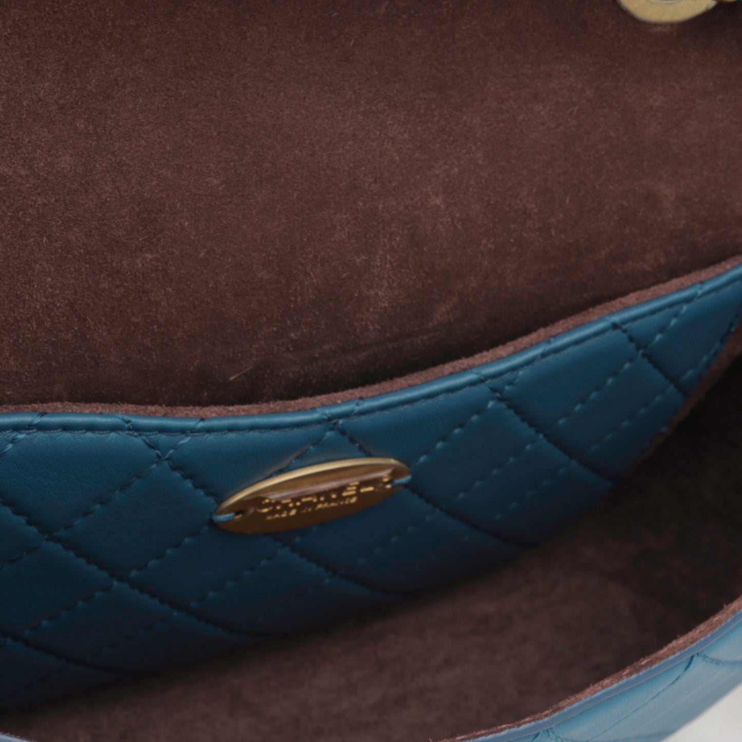 - ‘Chanel’ and ‘Made in France' stamps engraved in metal hardware plaque