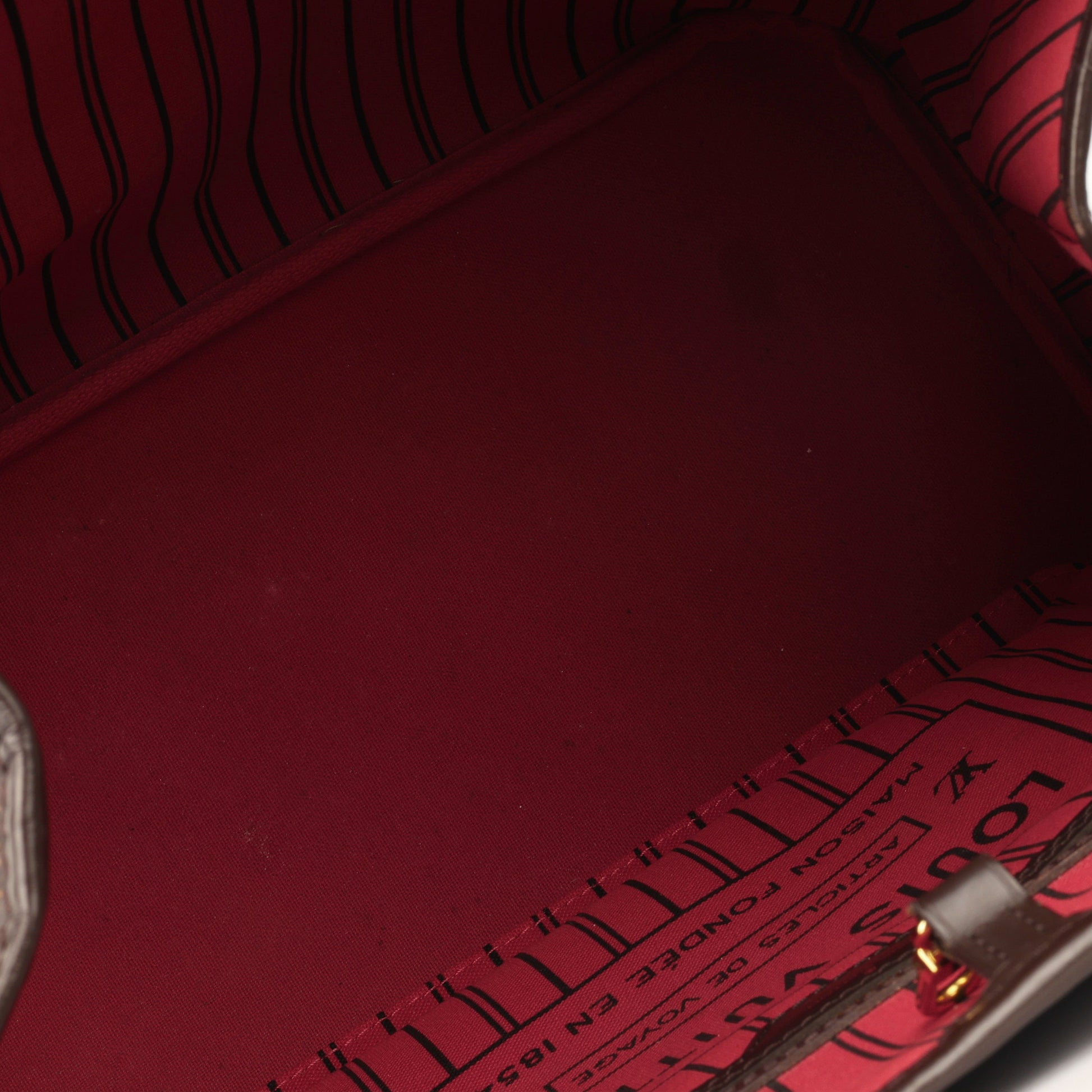 The Louis Vuitton Neverfull, compromises of classic design, complemented by heritage details. The side laces allow the bag to be cinched at the sides for a sleek look. The spacious compartment features a removable pouch to keep your belongings safe.
