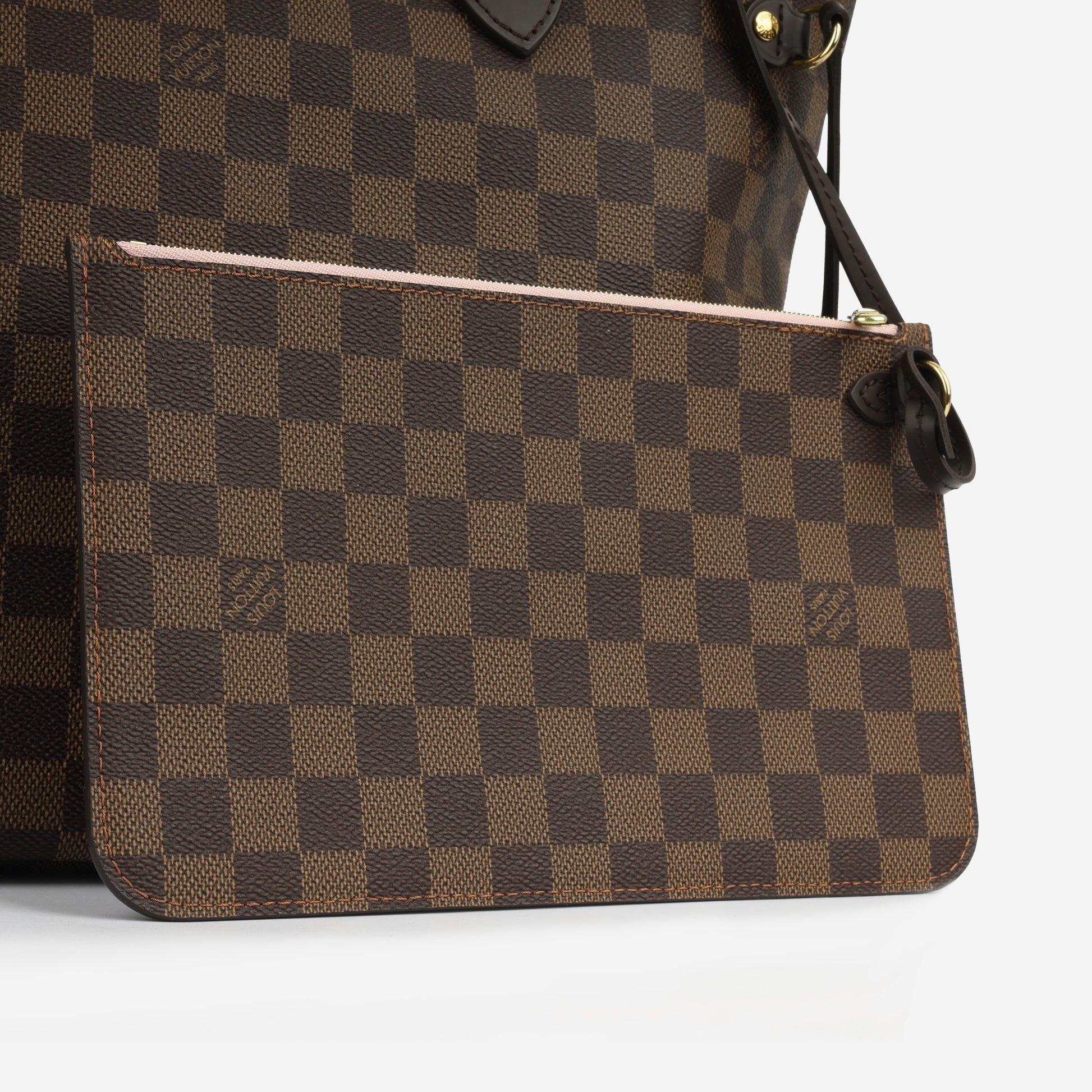 The Louis Vuitton Neverfull, compromises of classic design, complemented by heritage details. The side laces allow the bag to be cinched at the sides for a sleek look. The spacious compartment features a removable pouch to keep your belongings safe.