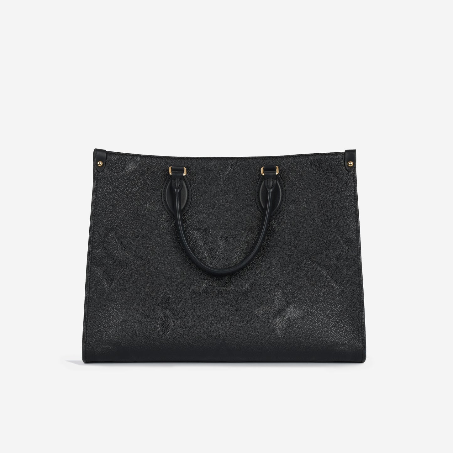 The Onthego is inspired by Louis Vuitton's iconic Sac Plat from 1968, crafted from black monogram empreinte leather which is embossed with the enlarged monogram print. The grained cow leather makes this the perfect day bag with enough space for all your daily essentials.