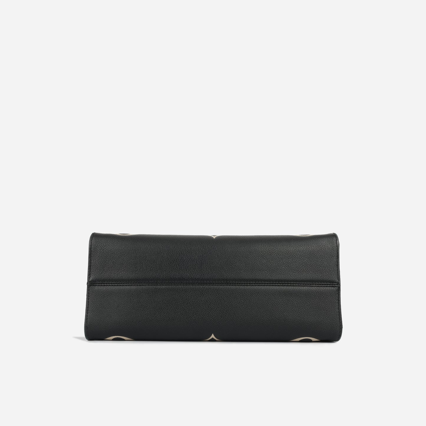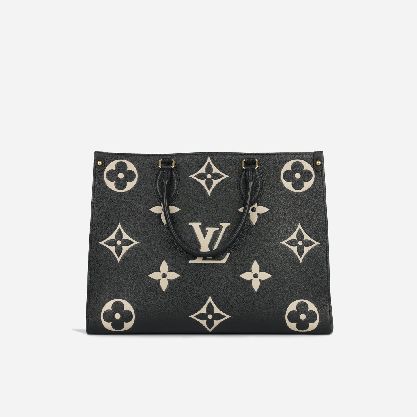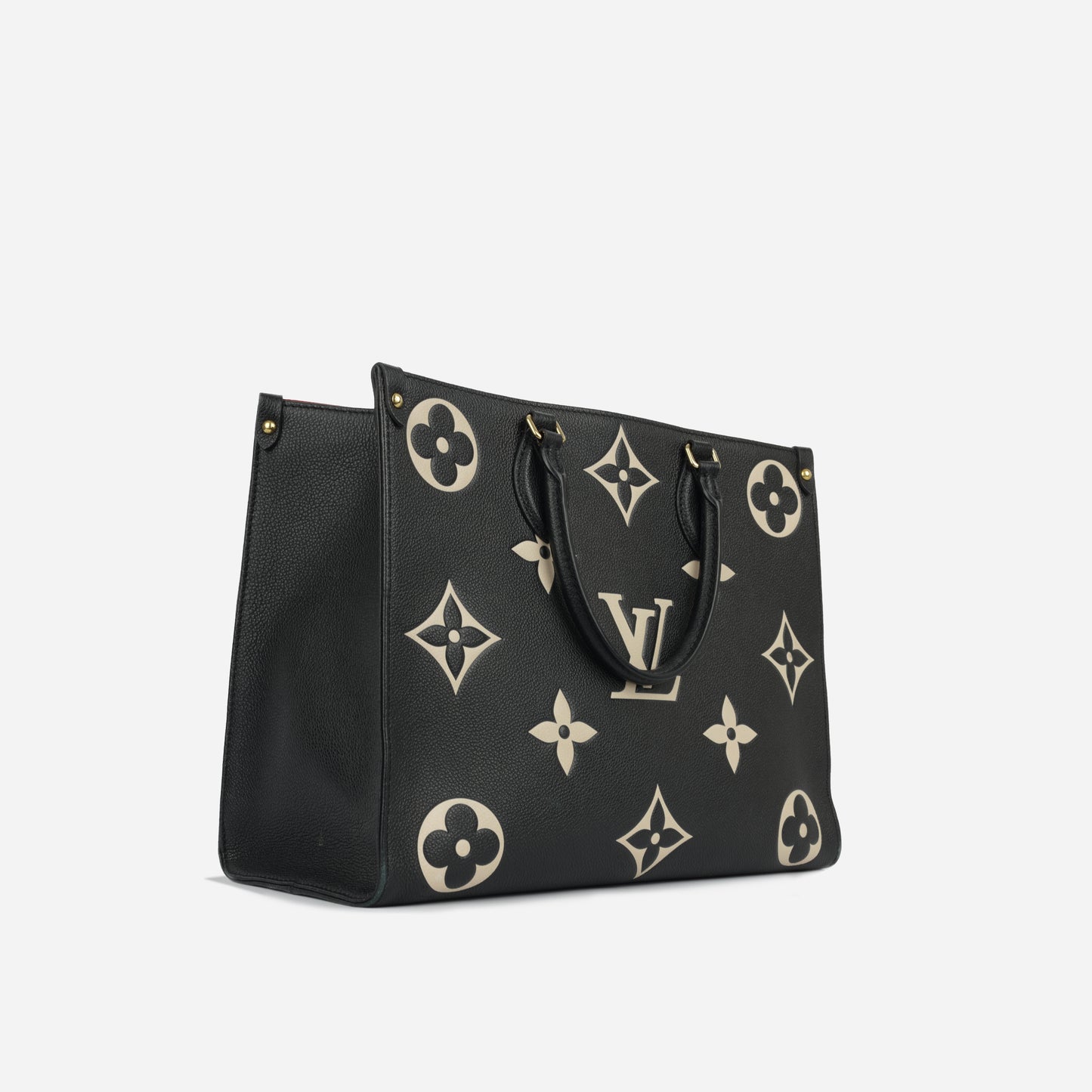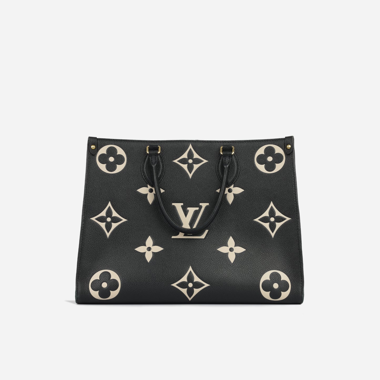 The Onthego is inspired by Louis Vuitton's iconic Sac Plat from 1968, crafted from black bicolour empreinte leather which is embossed with the enlarged monogram print. The grained cow leather makes this the perfect day bag with enough space for all your daily essentials.