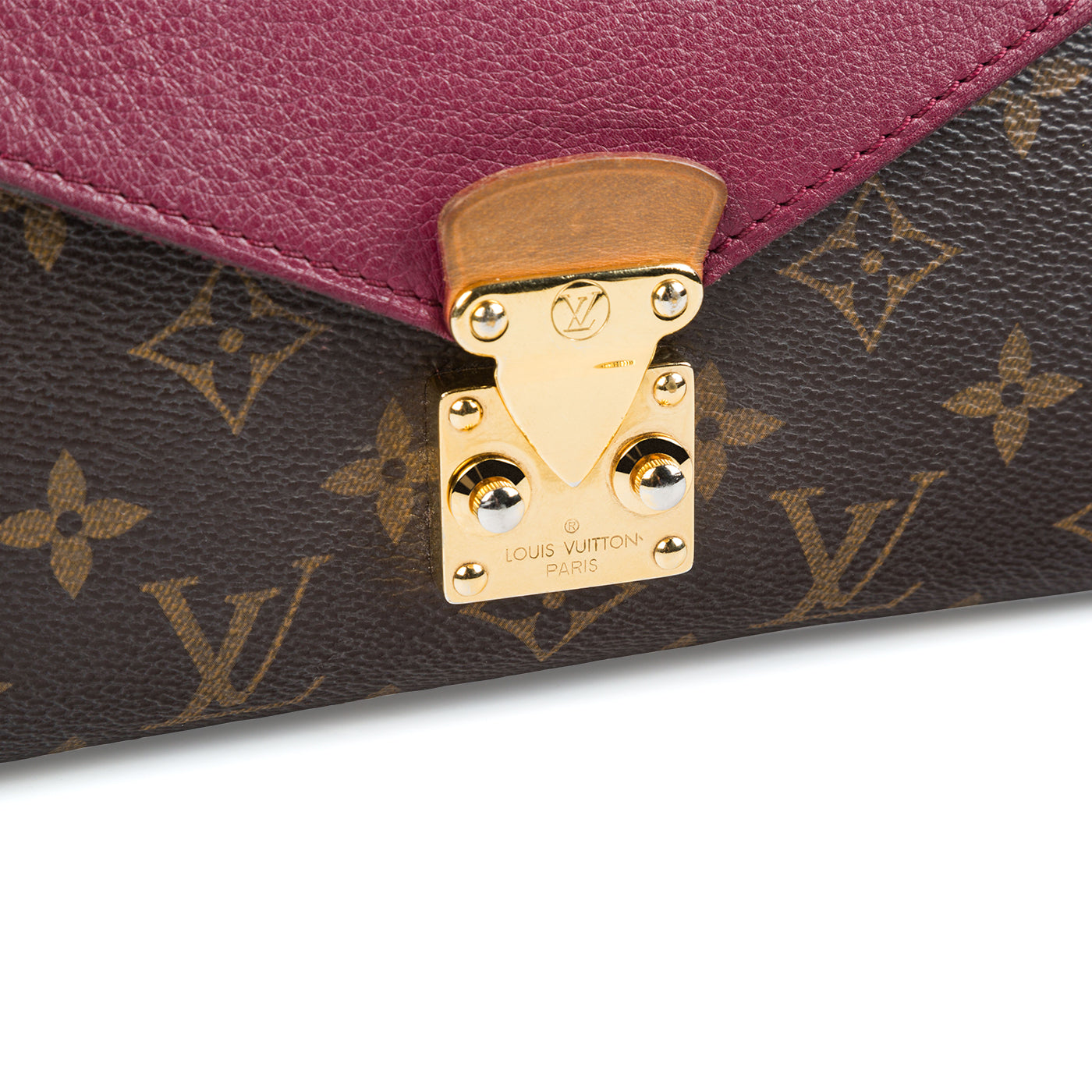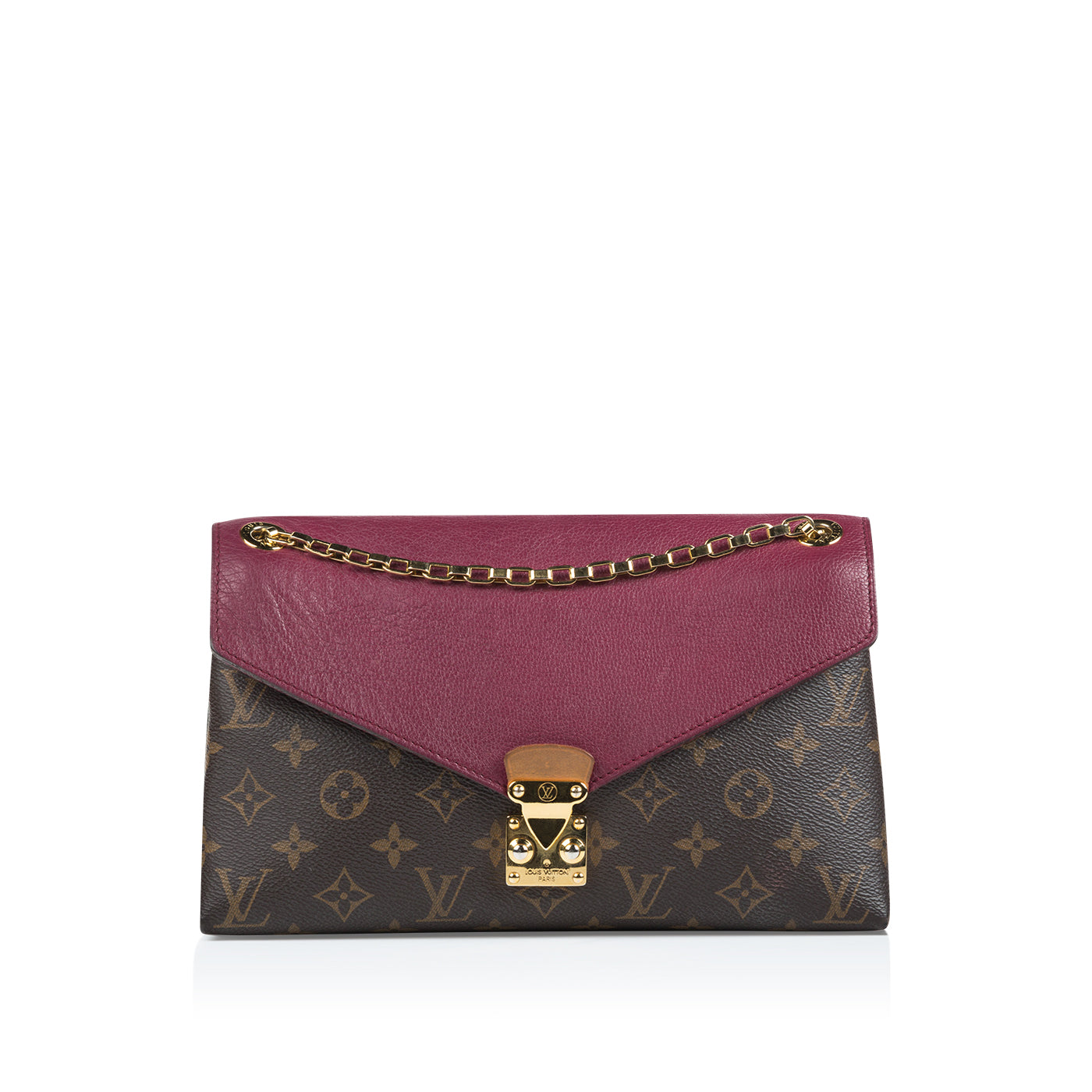 The glamorous Louis Vuitton Pallas combines iconic monogram canvas with colourful grained leather to create a feminine and contemporary feel. The Pallas shoulder bag features a beautiful burgundy-oversized envelope flap, which is contrasted against magnificent gold toned hardware. The bag also features the unmistakable Pallas chain shoulder strap. Its interior features two storage compartments alongside a zipped compartment, allowing you to remain meticulously organised whilst looking effortlessly elegant.