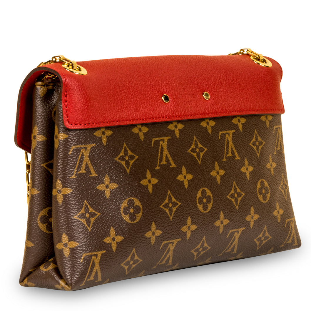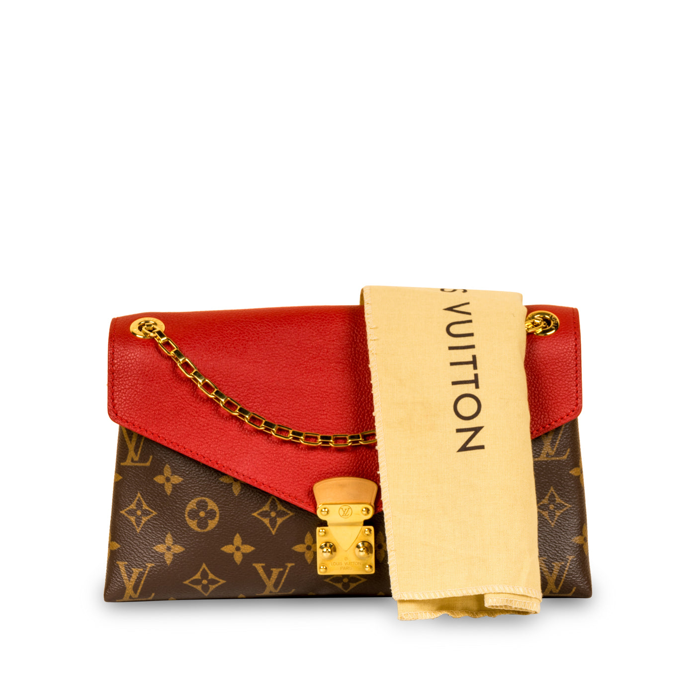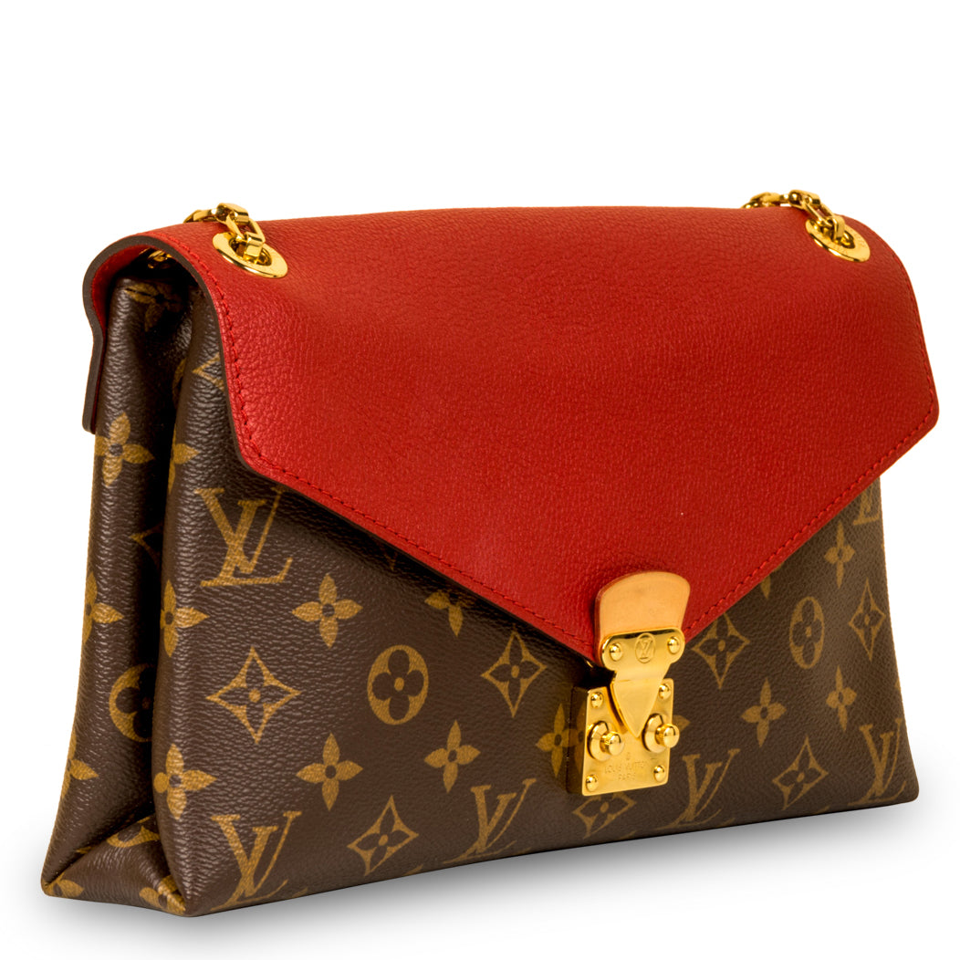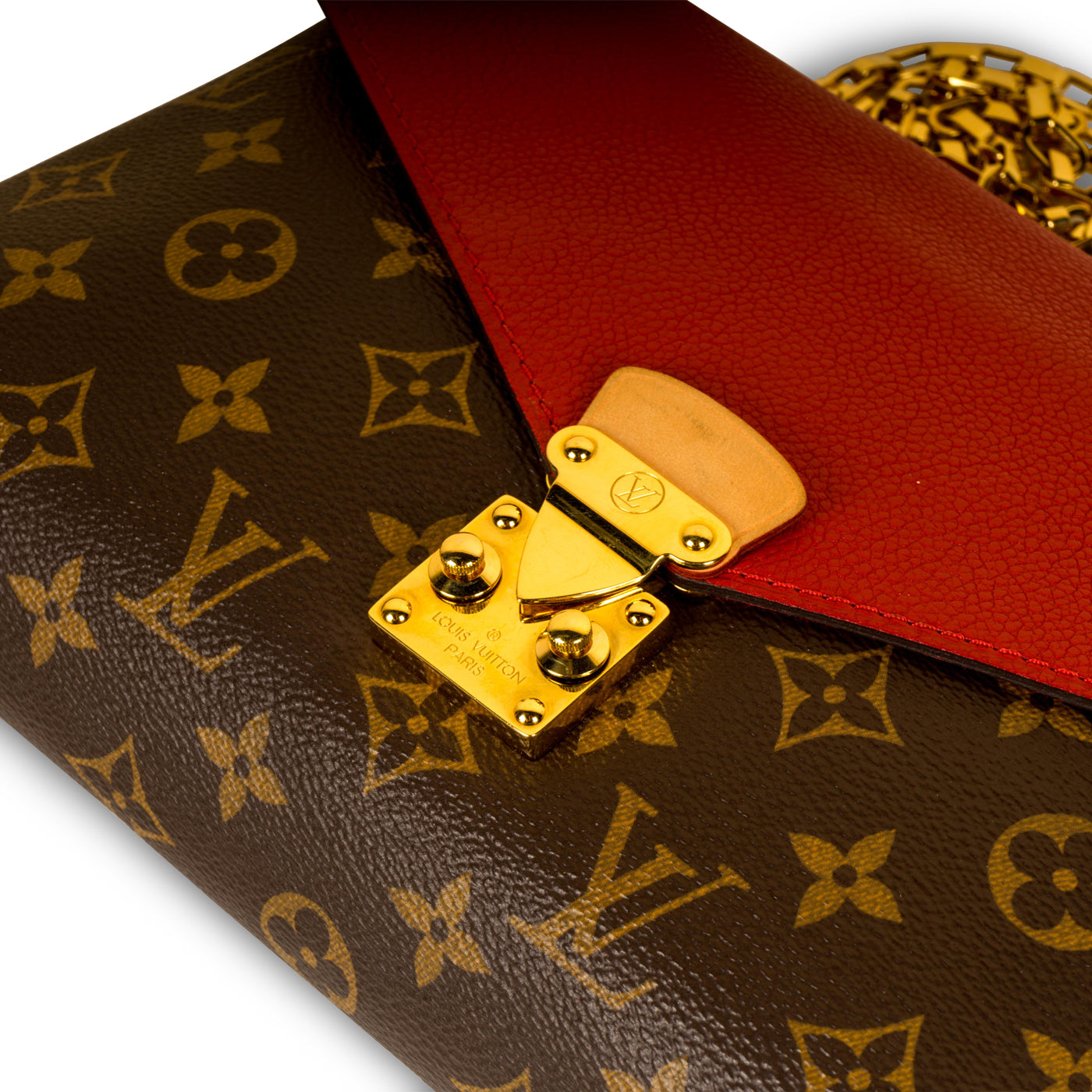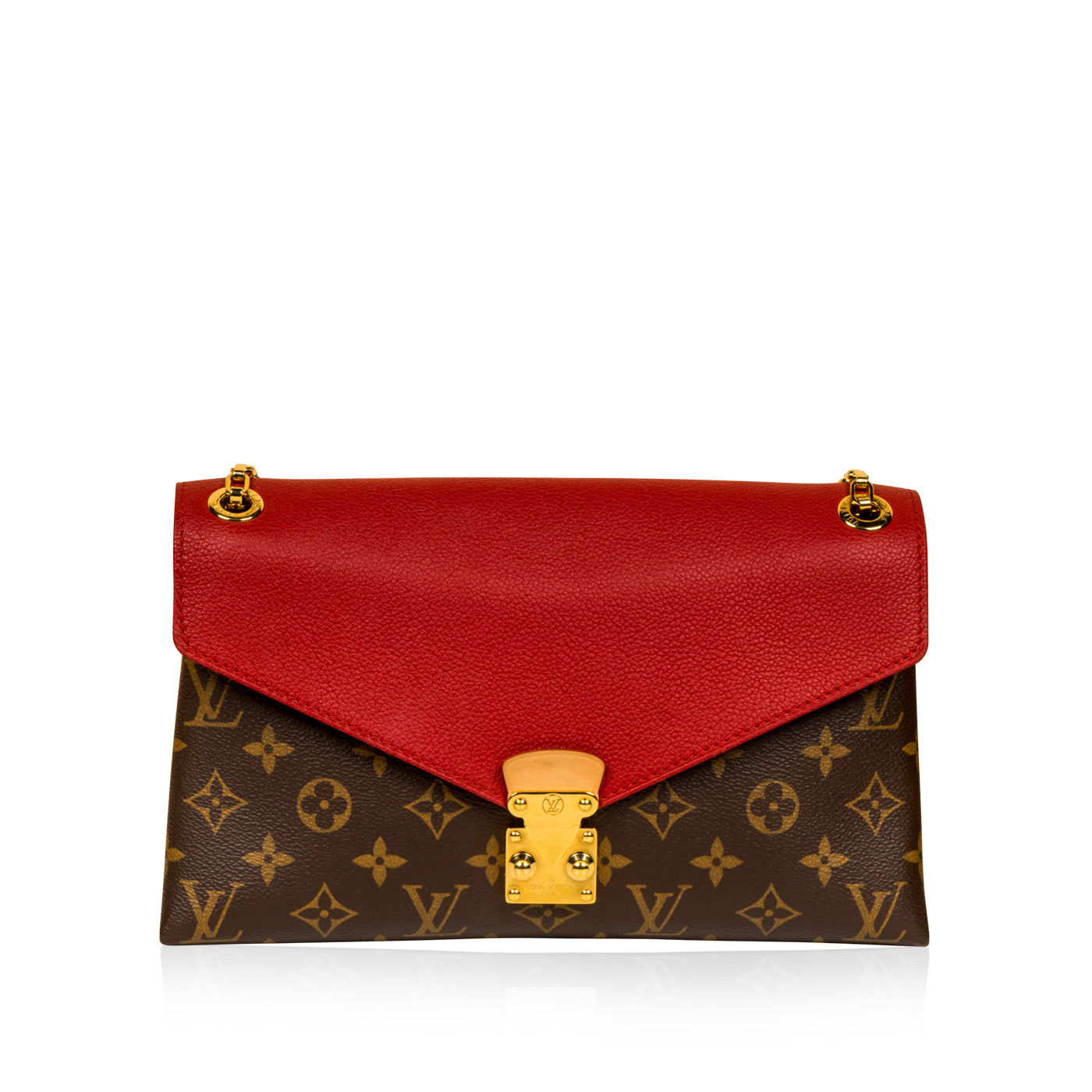 Carefully crafted in the brand's signature monogram canvas, the Pallas Chain shoulder bag is an absolute must-have for any woman with a love for luxury Complimented by a deep red leather envelope flap and a gold-tone chain, this bag is effortlessly sleek, stylish and sophisticated. A bag that can easily hold all your every-day essentials comfortably inside, the Chain Pallas is the perfect accessory to accompany you wherever you go. A handbag that compliments absolutely anything in your wardrobe, the Chain Pallas is basically your new best friend. It's that bag you don't even have to think about - the ultimate go-to that you'll never get bored of and one you'll always have with you. A timeless classic that will never go out of style, the Chain Pallas is a necessary addition to any luxury handbag addition.