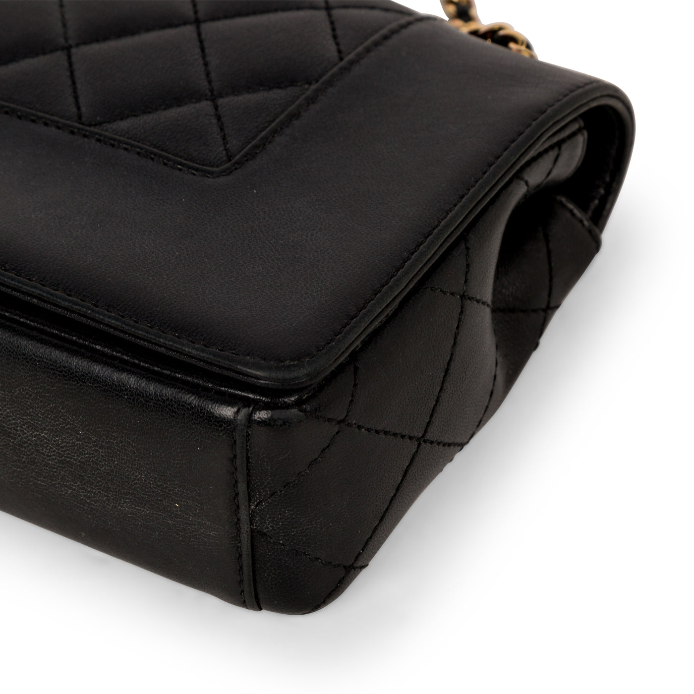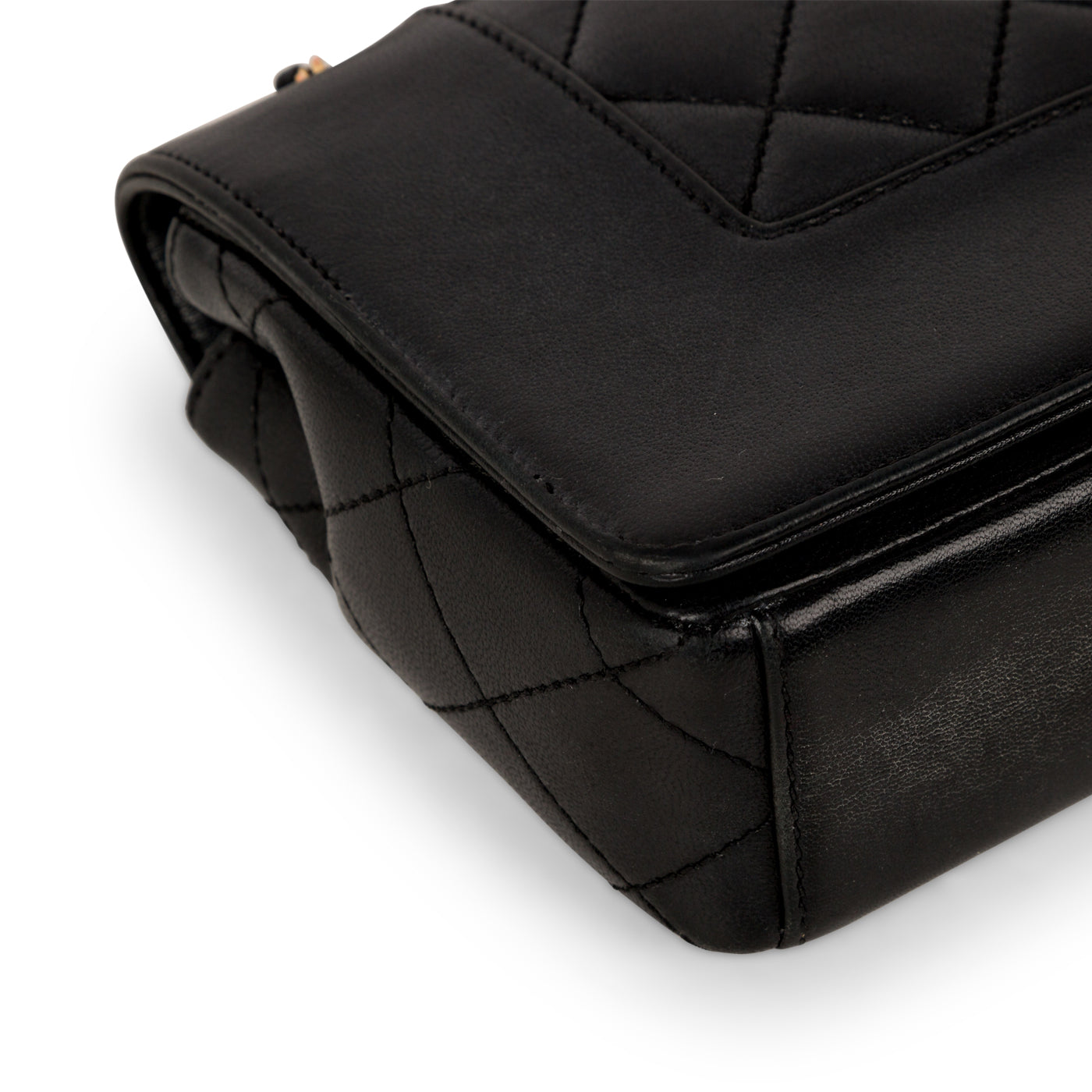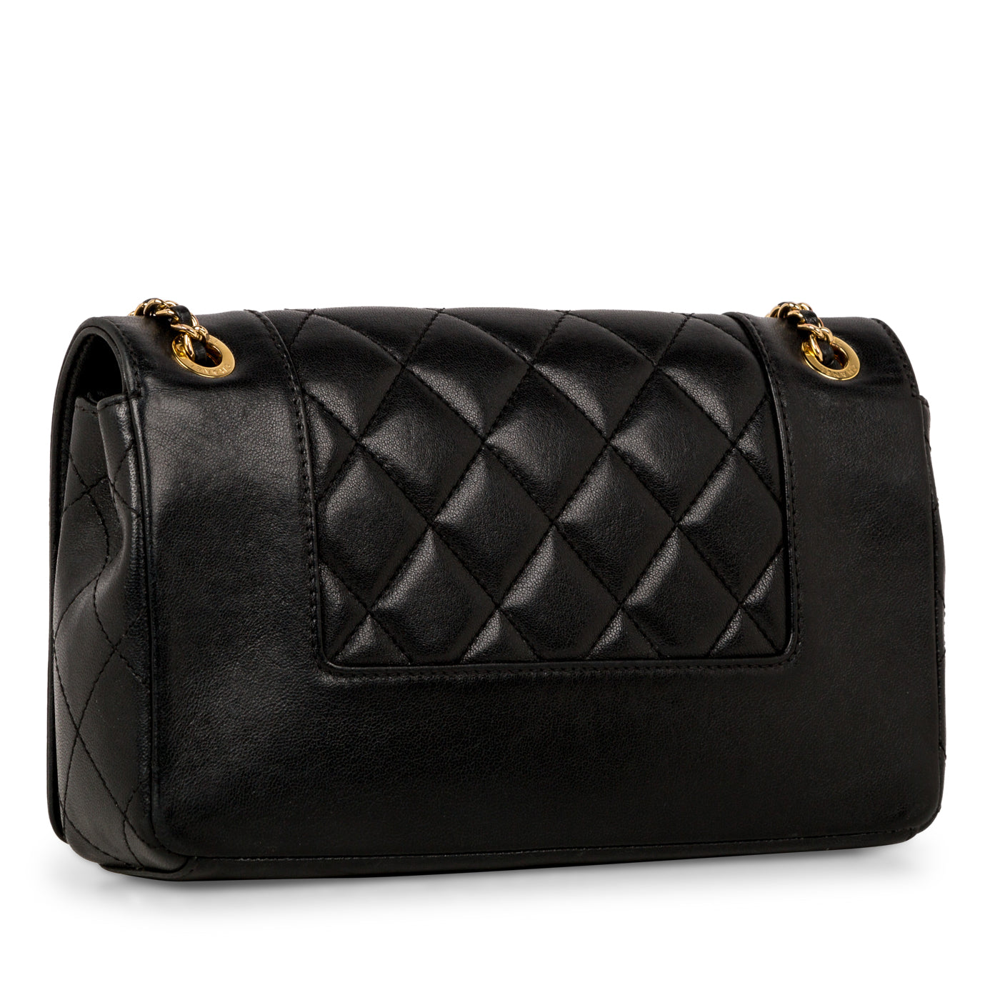 This flap bag from French fashion house Chanel is a rare find, having been shown at their runway collection for Paris in Rome. It features the signature quilted lambskin, contrasted against a smooth leather panel round the edges. In classic black it can be worn throughout the year, and the gold tone hardware is the iconic choice to make to stand out from the crowd.