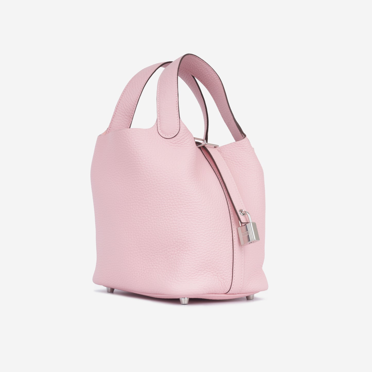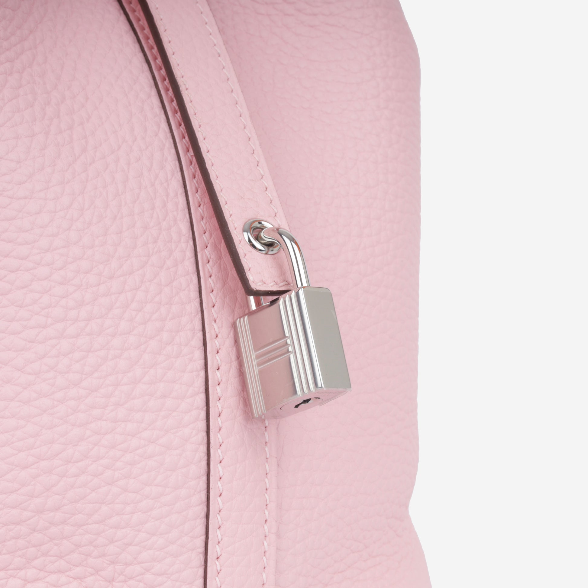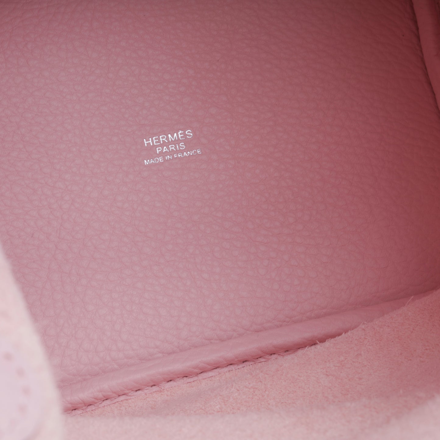 Carefully crafted from supple, textured leather, Hermès presents their stunning mini Picotin 18 bag in a beautiful combination of Rose Sakura leather and Palladium hardware. Hermès is acclaimed for their leather quality, as well as being at the very top of the fashion hierarchy. Simple, elegant, and understated, each Hermès bag is timeless and tasteful. This bag is no exception.
