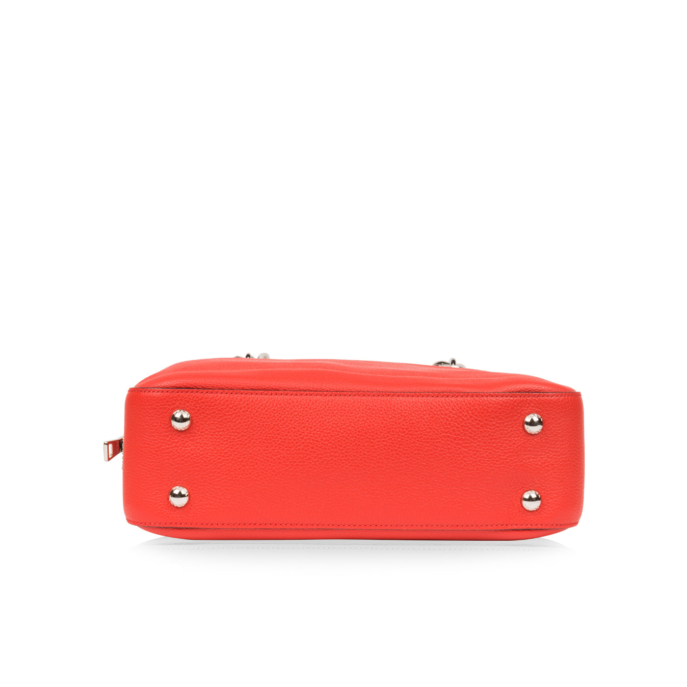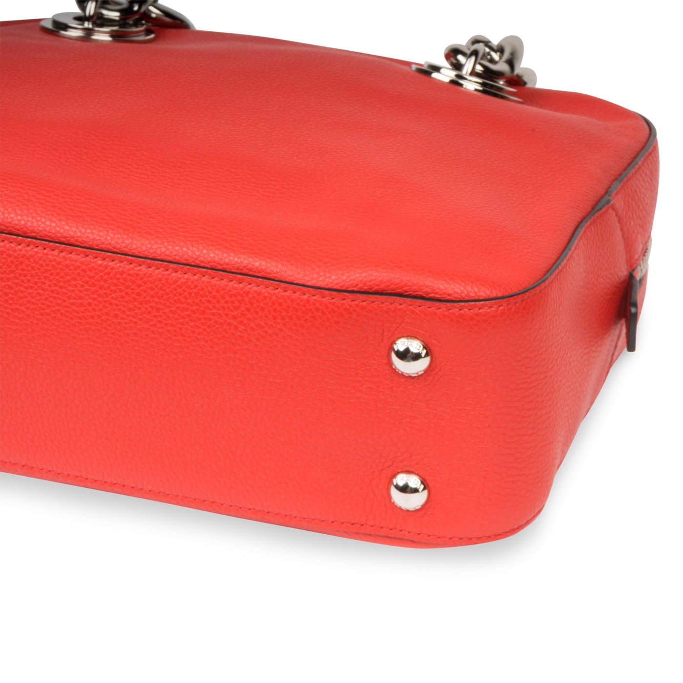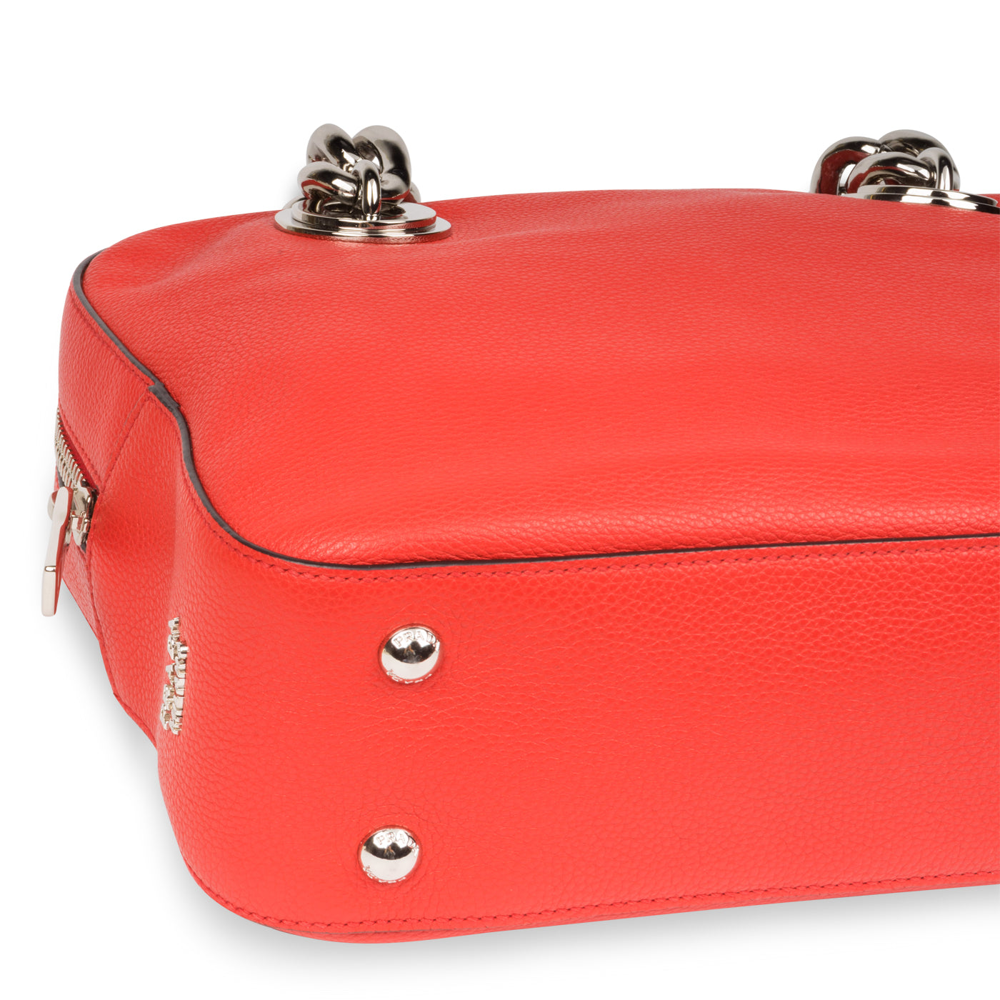 Carefully crafted from red grained leather, this stunning Prada bag featuring prominent silver chain straps is a true must-have. For the woman who isn't afraid to stand out in the crowd, this bright bag is a prime example of "understated statement." Featuring a small Prada logo plaque on the side of the bag, this bag exudes a true "if you know, you know" aesthetic. The perfect compliment to any neutral-toned or monochromatic outfit, this stunning bag is that little pop of colour everyone needs in their life. Hold all your ever day essentials comfortably inside while remaining sleek, stylish and sophisticated. A bag that will remain your every day go-to, this bold Prada is a well-worthy addition to any luxury handbag collection.