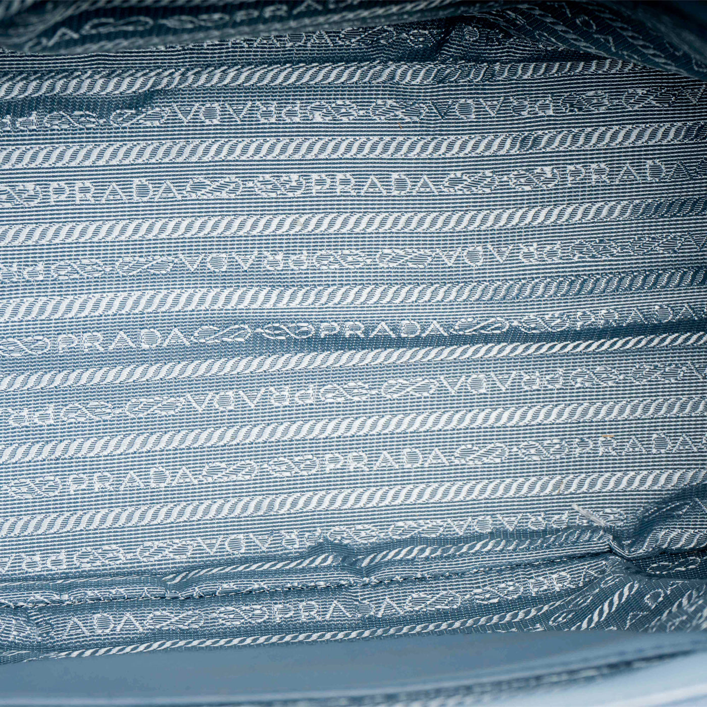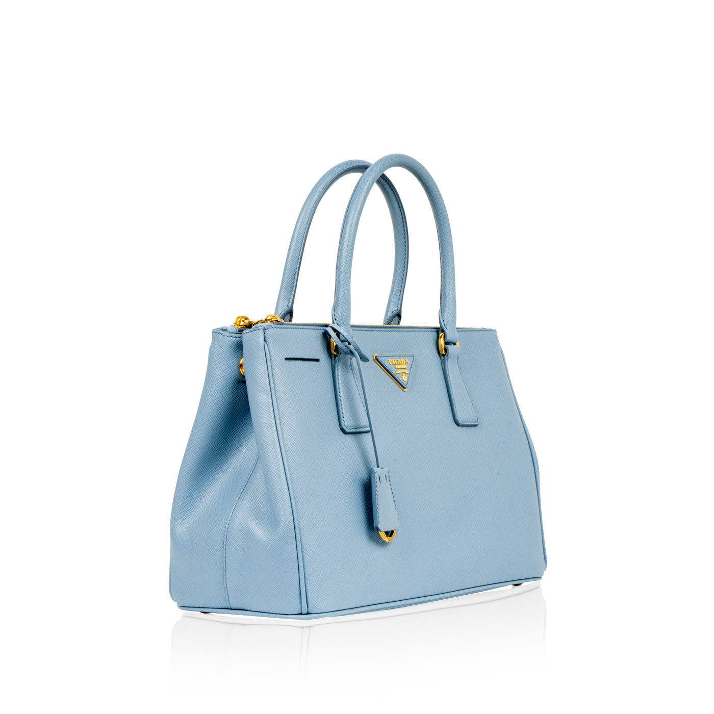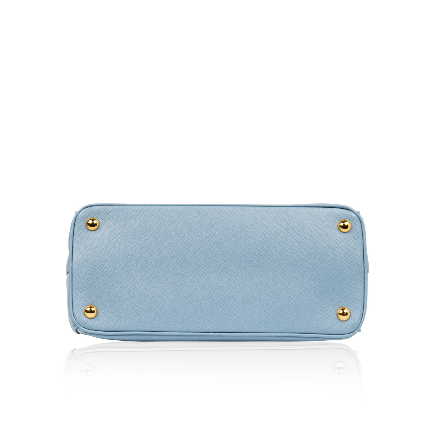 The Prada Galleria bag is modern and sleek in its design, showcasing Italian glamour. Although versatile and understated enough for everyday wear, it is a stunning and unique design with textured Saffiano leather, structured leather straps and gorgeous gold tone trims. The baby blue colour way is the perfect addition to your spring/summer wardrobe. Wear on the shoulder with the detachable strap for daytime or carry but the structured leather handles for the evening; this bag suits any occasion.