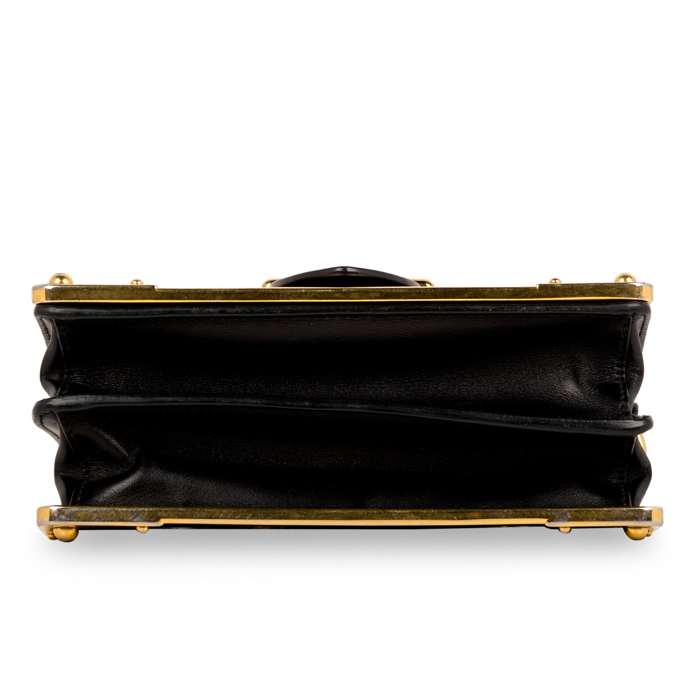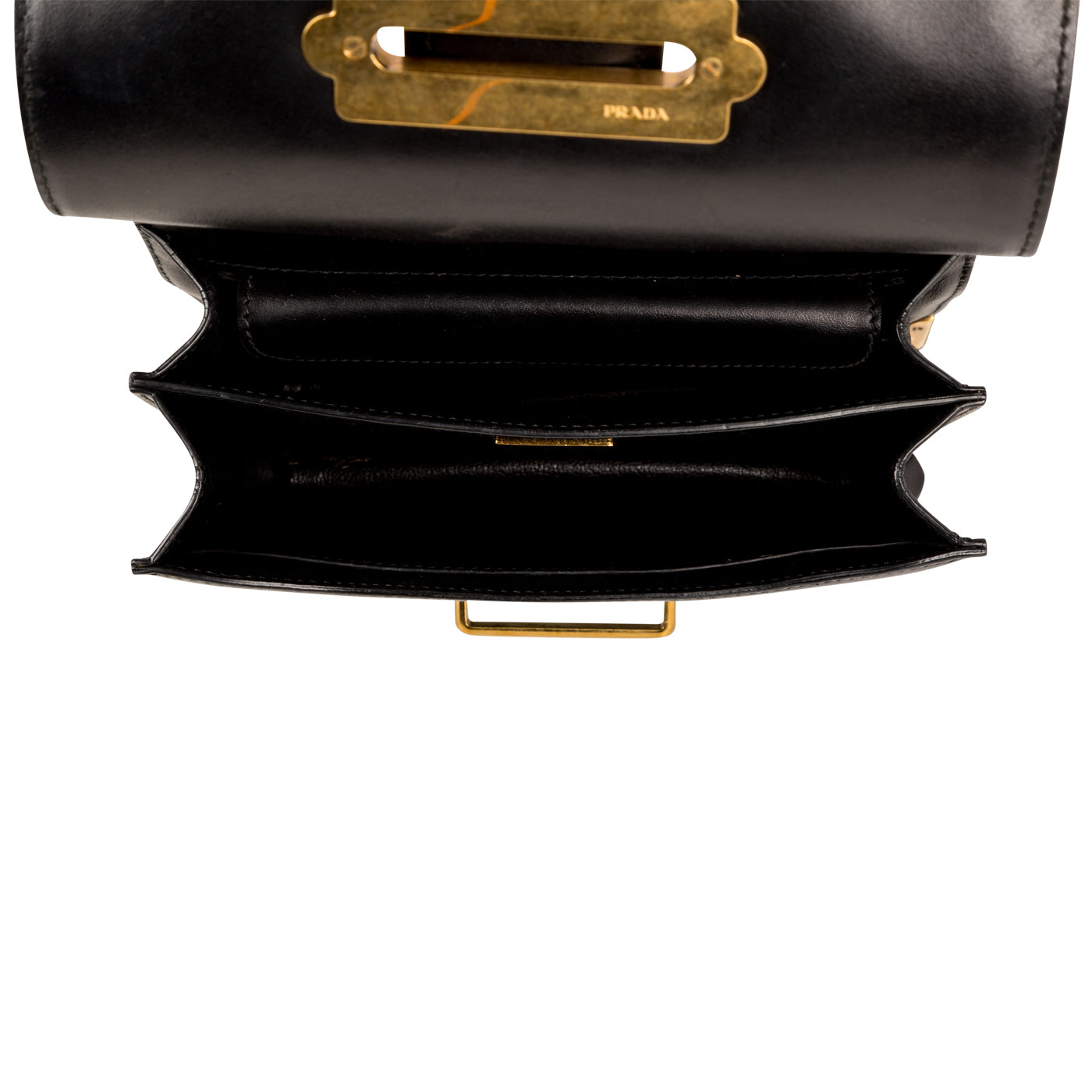 The Cahier bag by Prada is one of their most sought after designs, which sold out in stores after its introduction to their collection in 2016. The design is still part of their current collection and have all of the Italian glamour associated with Prada. The Cahier bag is perfect addition to your evening wardrobe and will be sure to turn heads with it's unique gold hardware trim which adds an antique twist to this otherwise modern style cross body bag. Wear with a white dress for a perfect summer outfit.