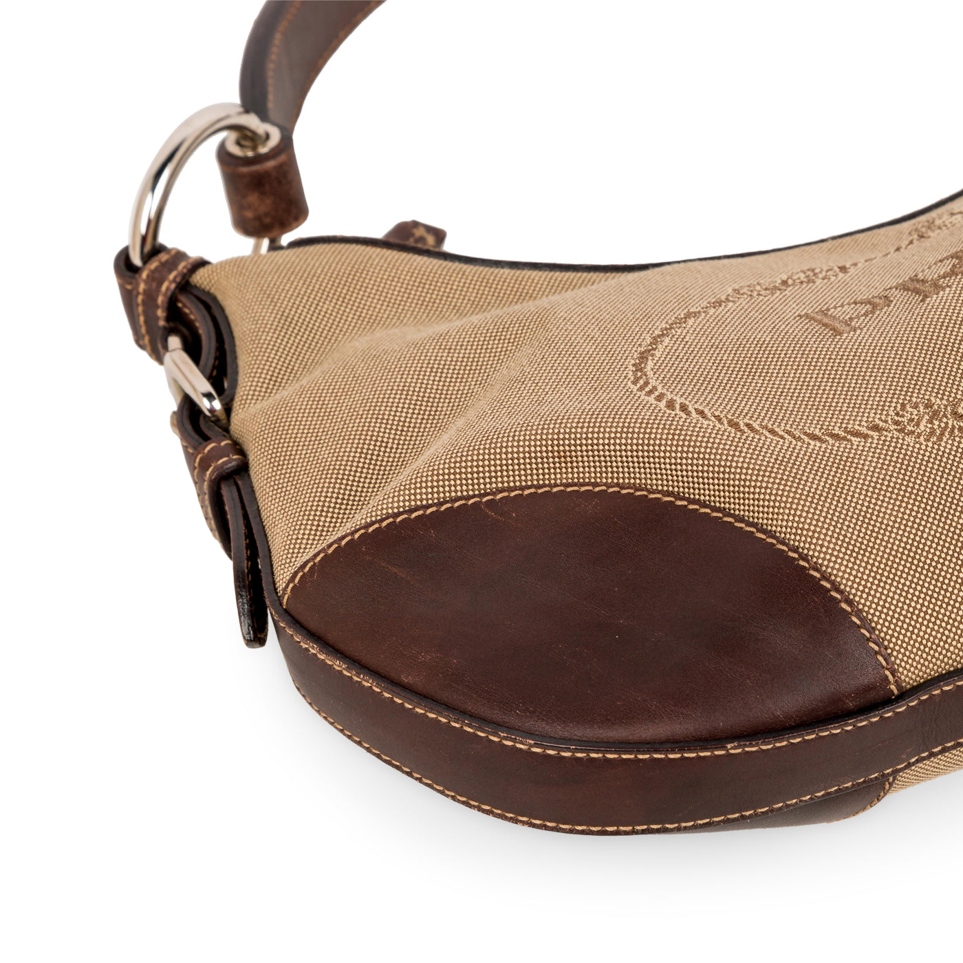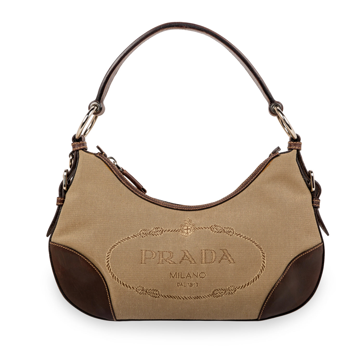 - Brown fabric lining with Prada interwoven in print