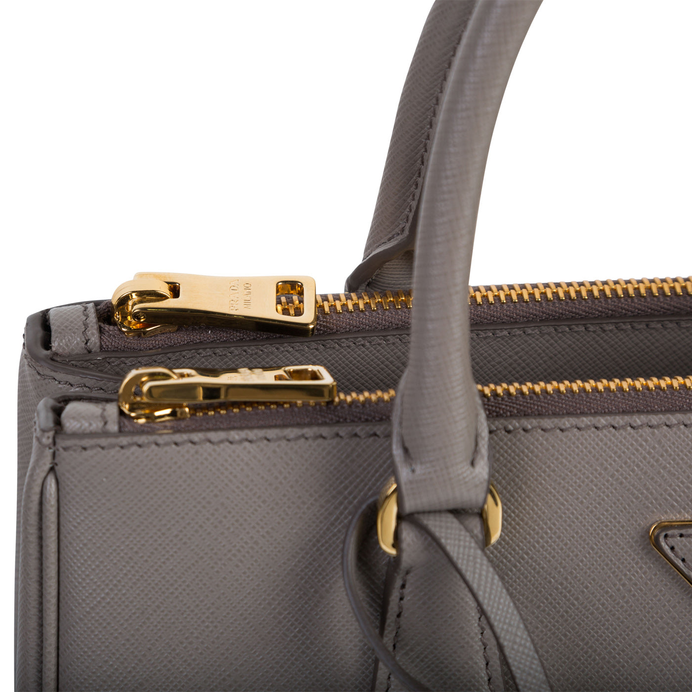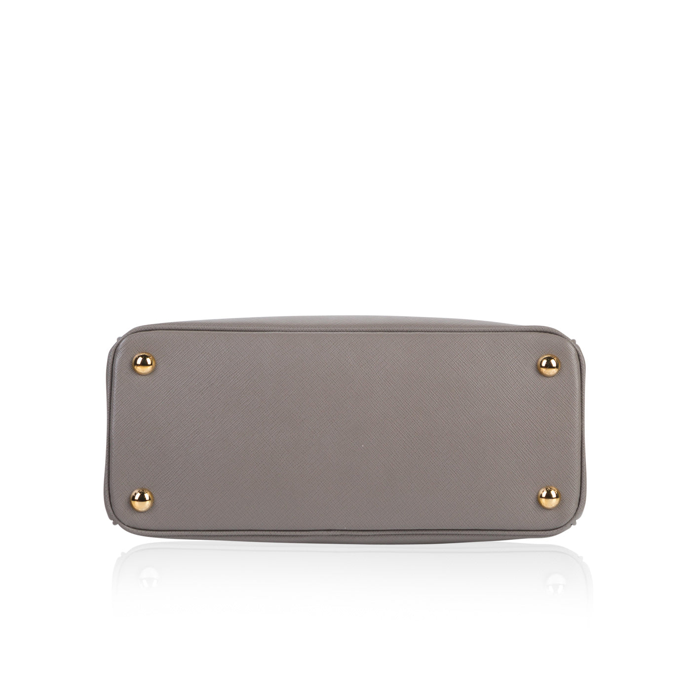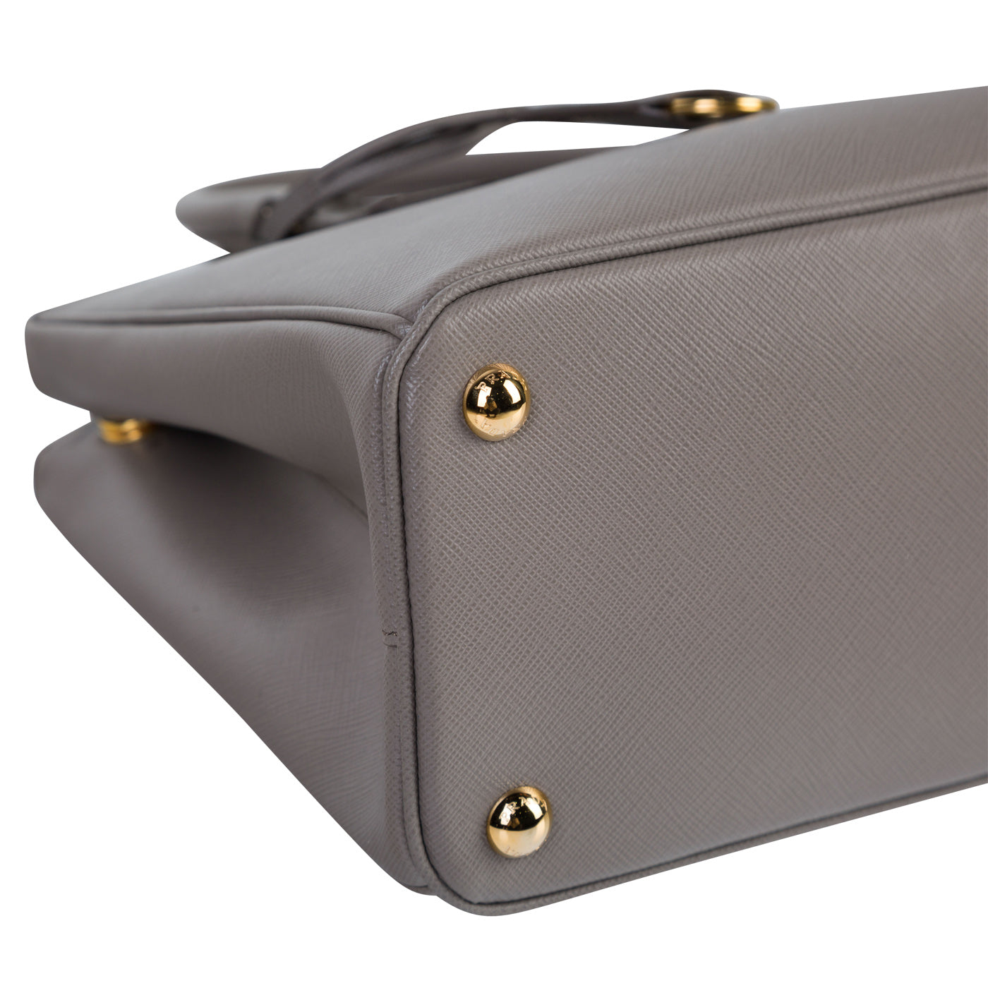 For a compact and chic city accessory, this Prada Galleria is the perfect choice. Although a small bag, it is large enough to hold all of your essentials and comes complete with a detachable shoulder strap, making it an ideal choice for a day to evening bag. Crafted out of luxurious grey Saffiano leather, and complete with gold hardware, this bag displays the Italian craftsmanship the brand is known for.