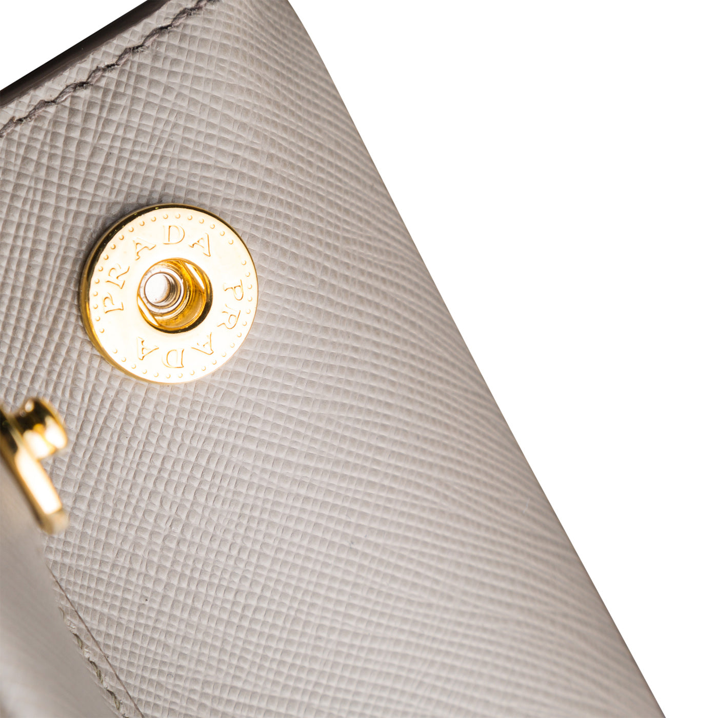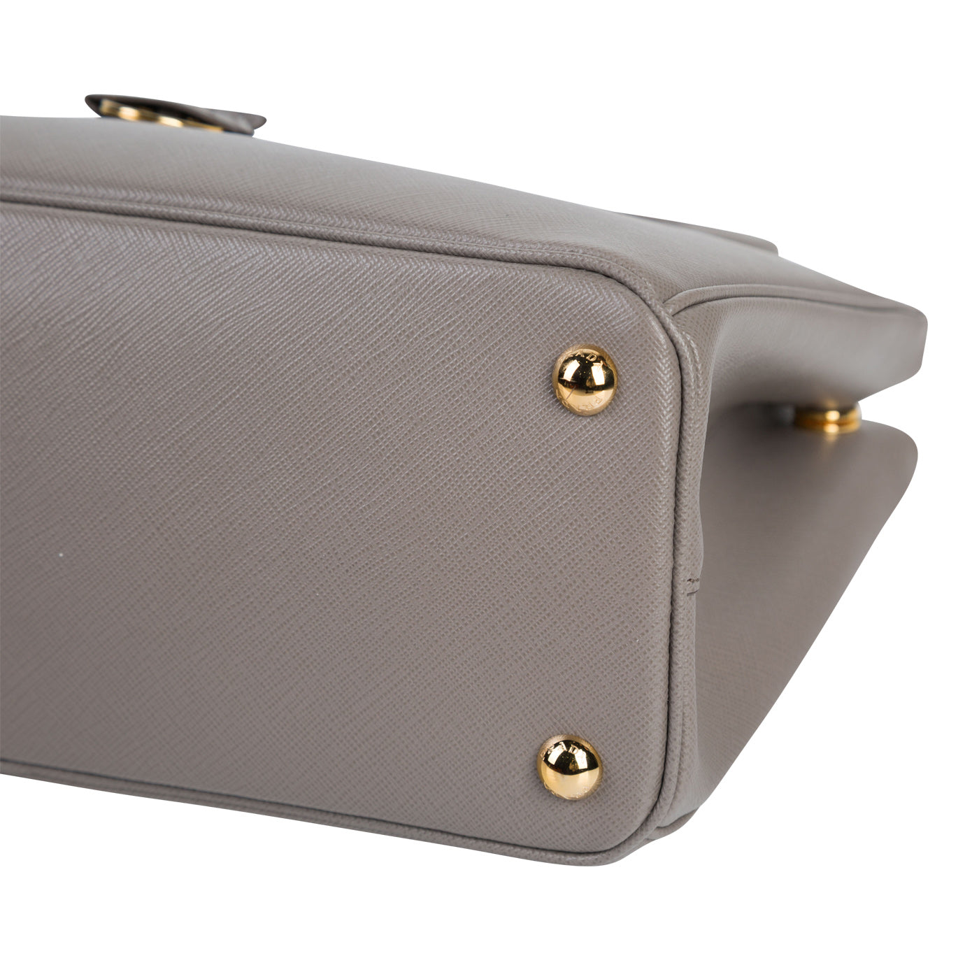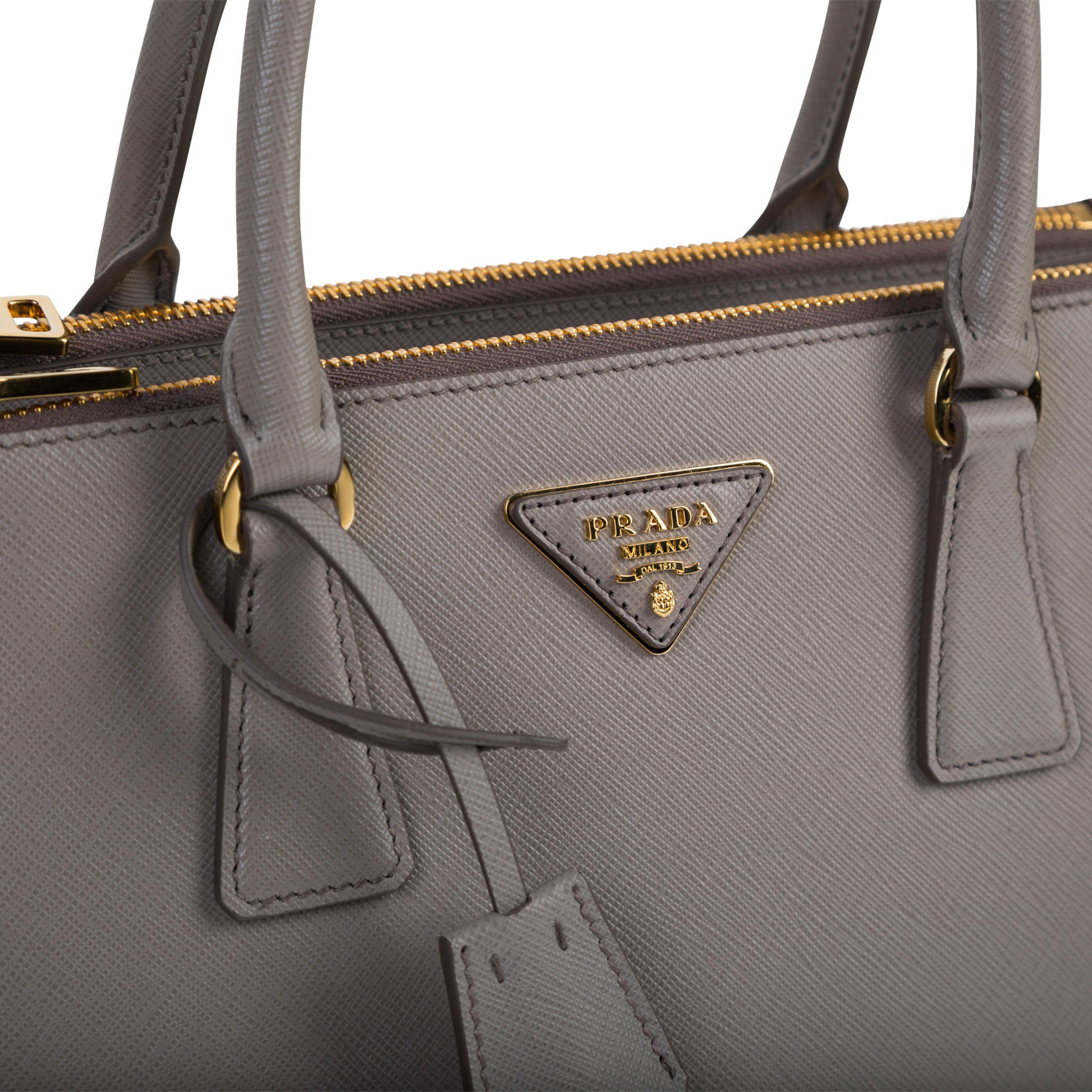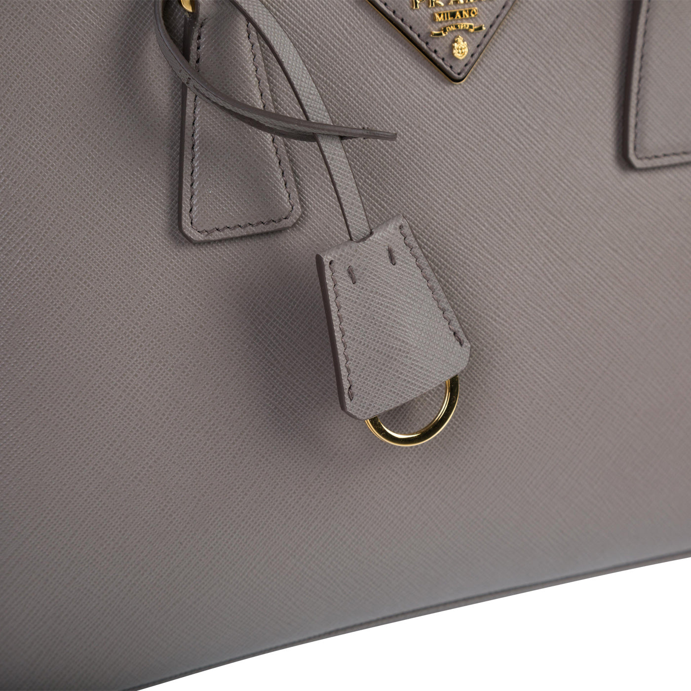 For a compact and chic city accessory, this Prada Galleria is the perfect choice. Although a small bag, it is large enough to hold all of your essentials and comes complete with a detachable shoulder strap, making it an ideal choice for a day to evening bag. Crafted out of luxurious grey Saffiano leather, and complete with gold hardware, this bag displays the Italian craftsmanship the brand is known for.