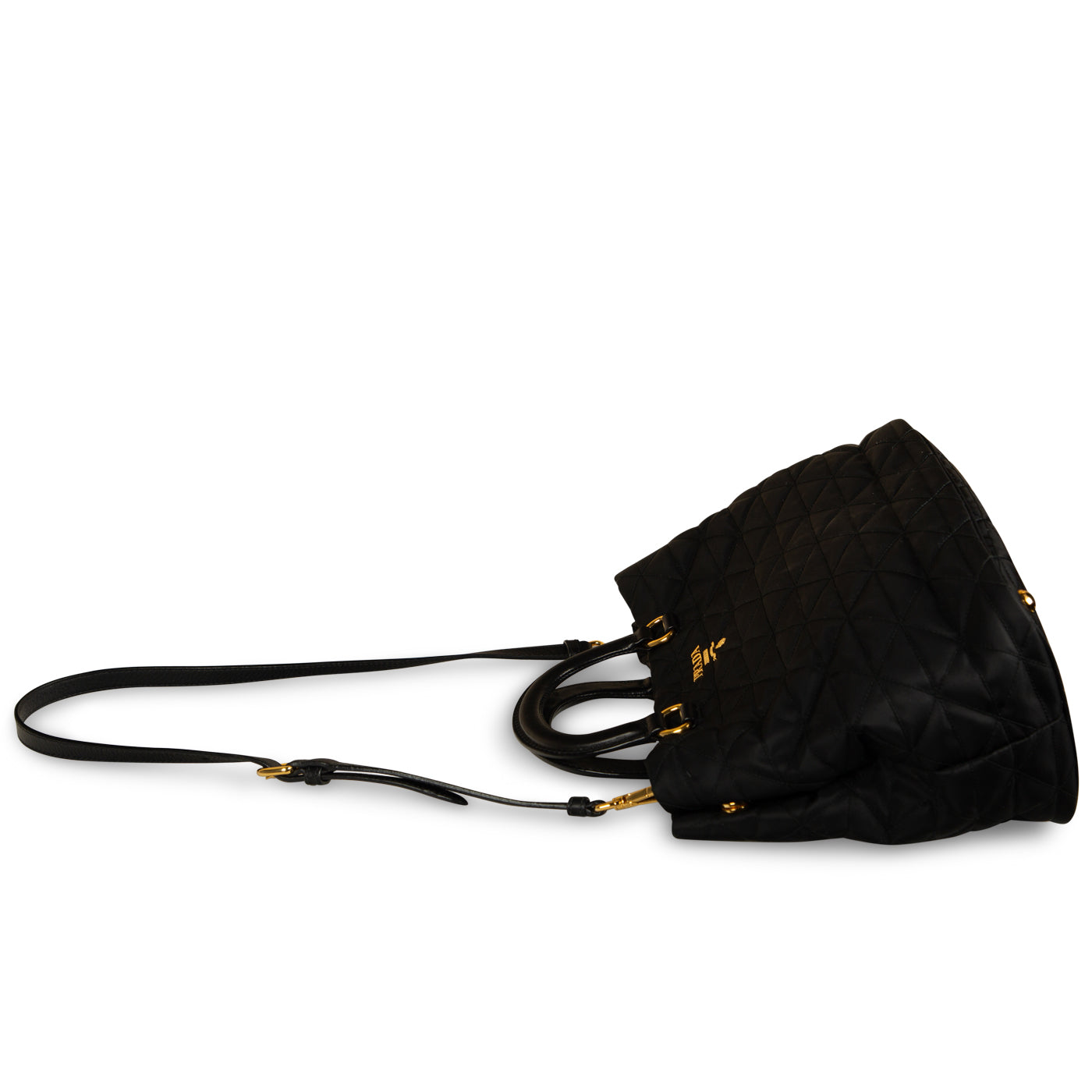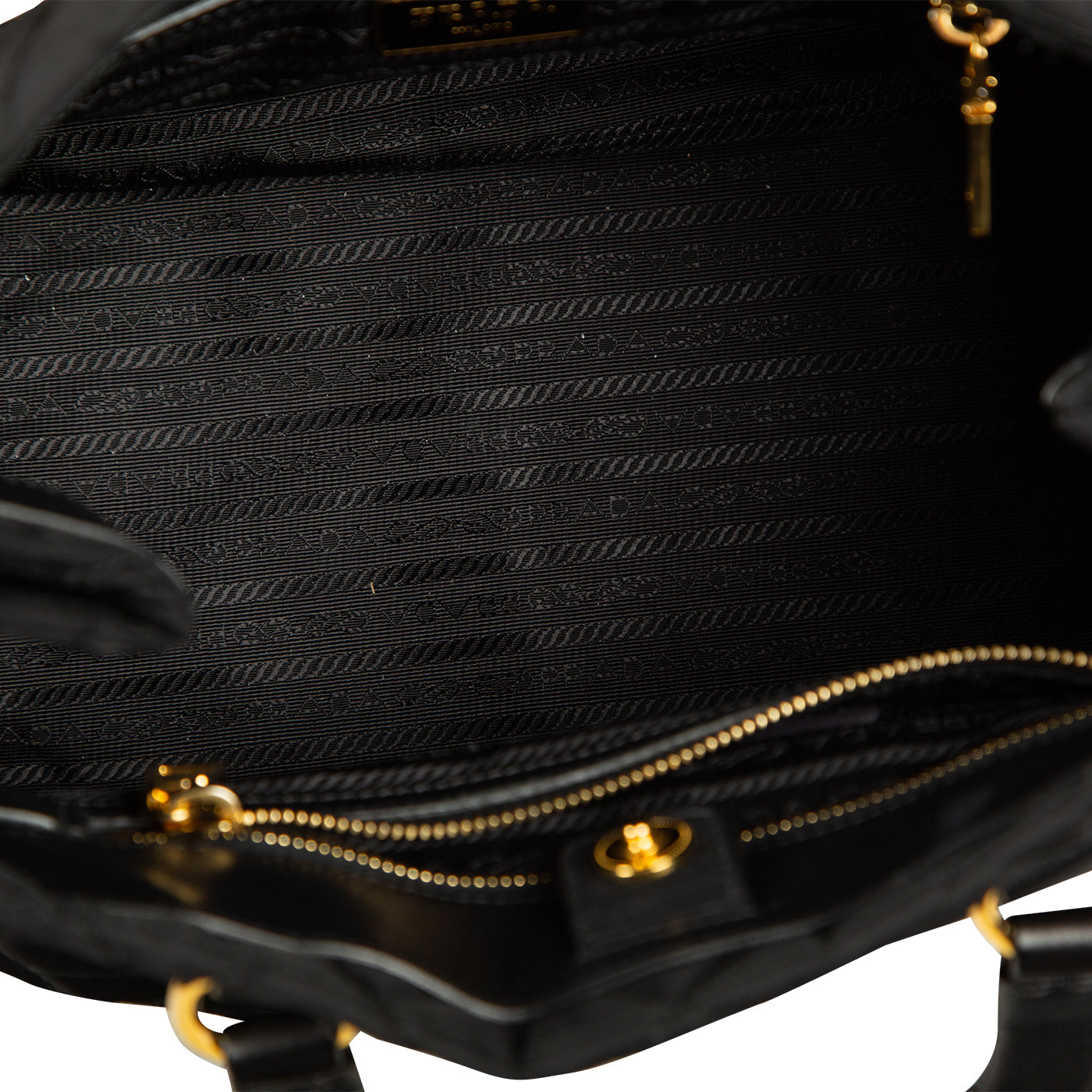 The Prada tote bag is a must have for everyday use. This bag is great to fit all of your essentials in style. The black nylon is in season all year round to match with all of your outfits. A must have for any Prada lover.