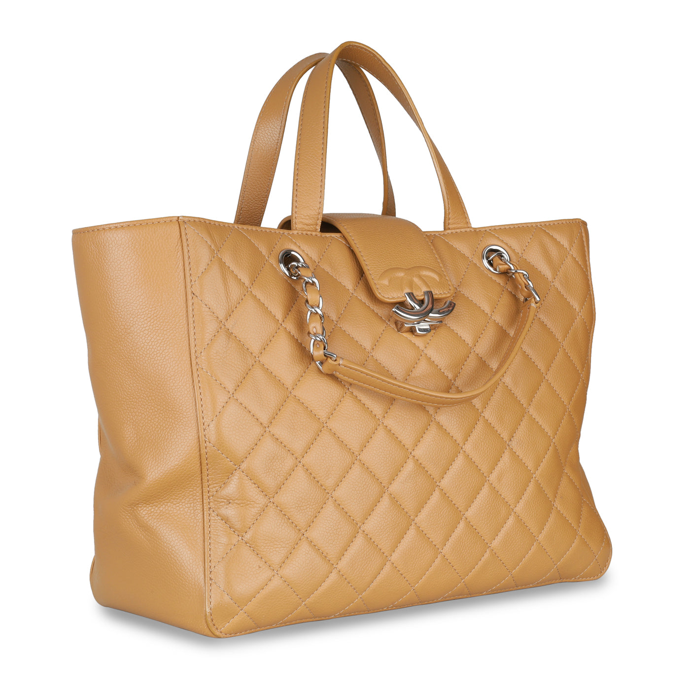 Carefully crafted from tan caviar leather, this Chanel tote is an absolute must-have. The ideal bag for a woman with a love for luxury and a soft spot for Chanel, this shopper tote is also the perfect companion if you like to carry your whole world with you wherever you go.