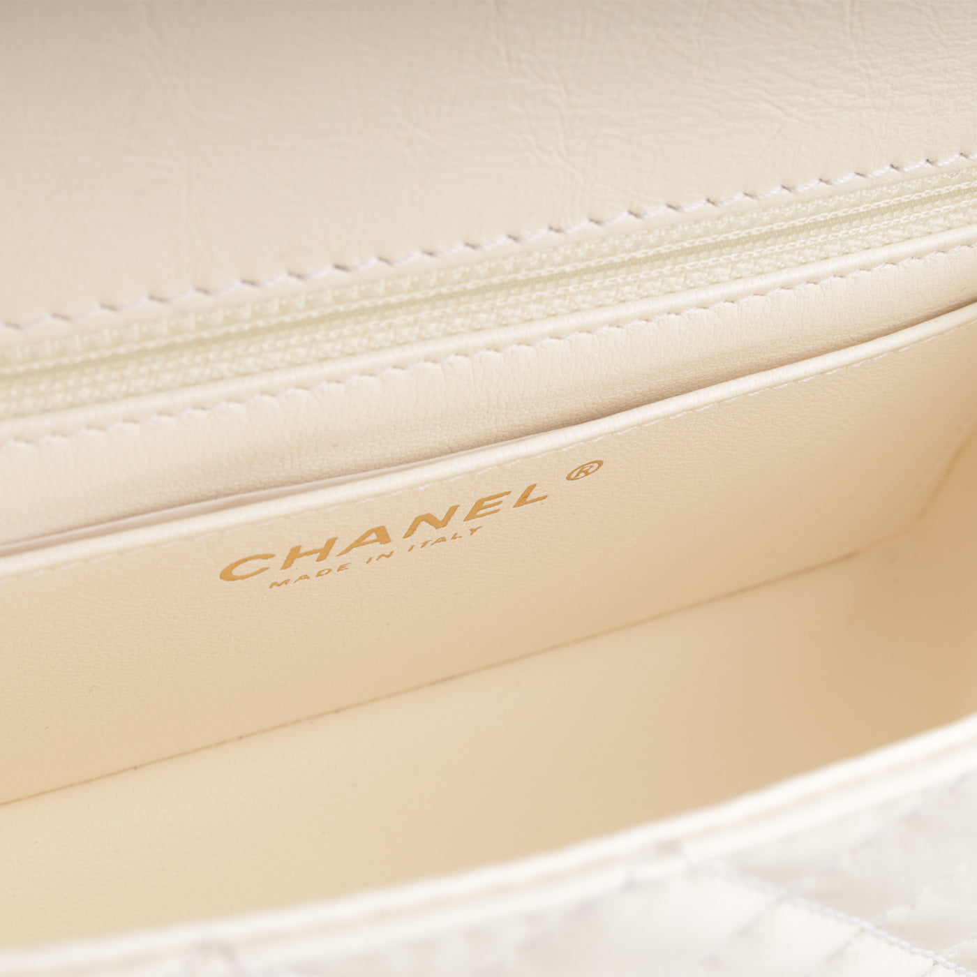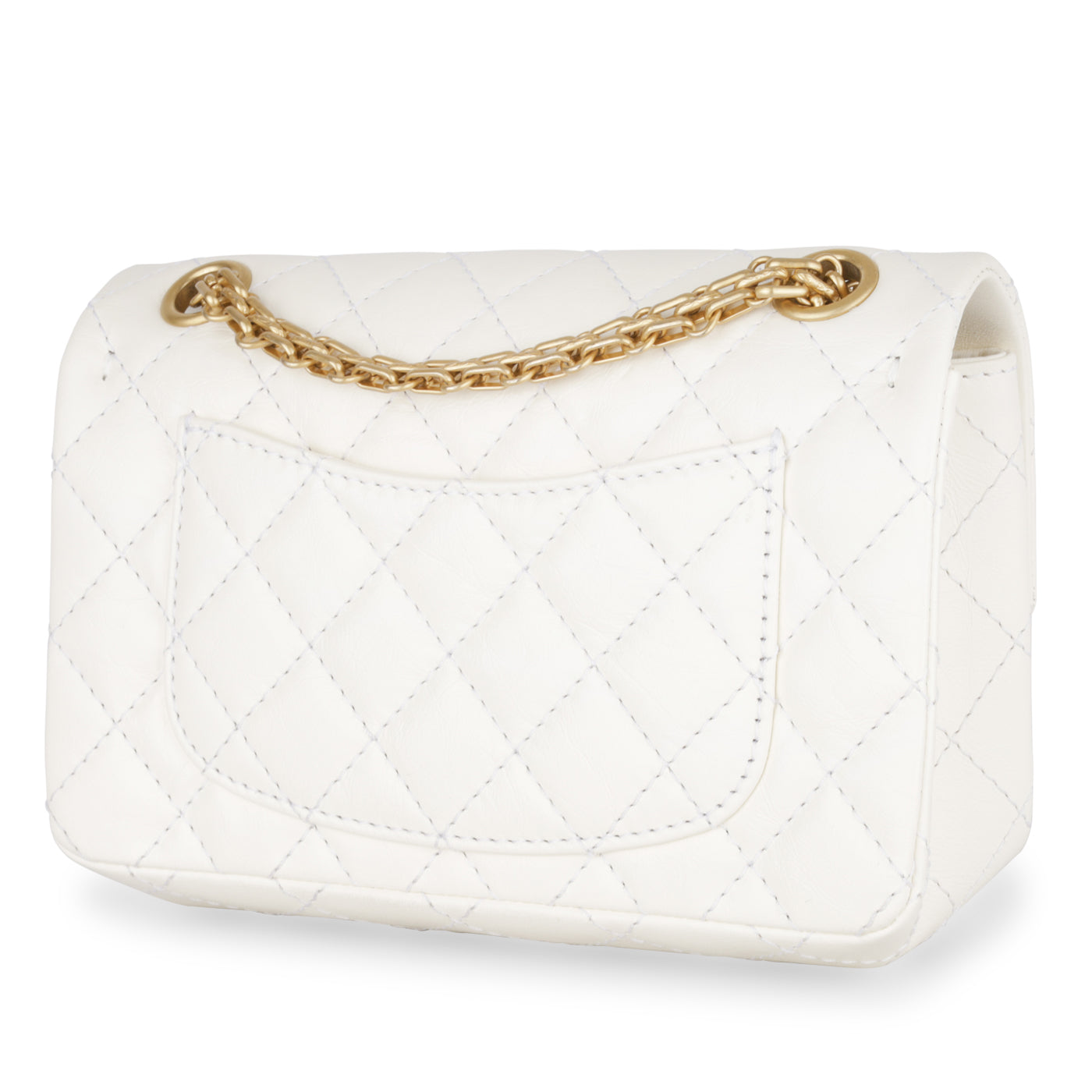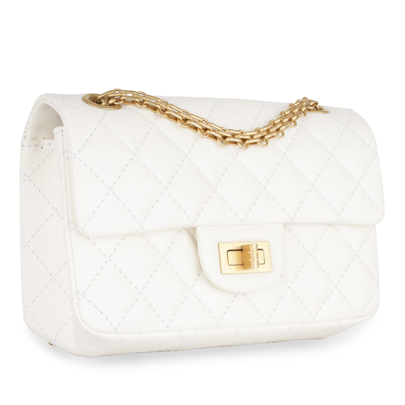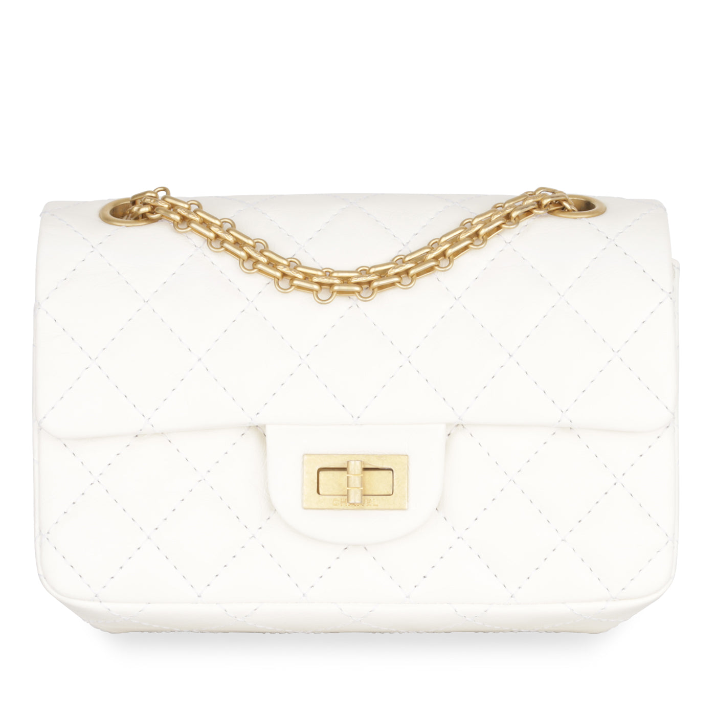 For timeless Parisian-chic there is no better investment than a Chanel timeless bag, be it the classic flap or the original 2.55 re-issue. This particular treasure is the smallest variant of the iconic Re-Issue bag created by Coco Chanel herself. Crafted from classic white aged calfskin and finished with champagne gold hardware, this Re-issue is a rare and stunning find. This re-issue will be the perfect investment piece to take you through SS22 and beyond.