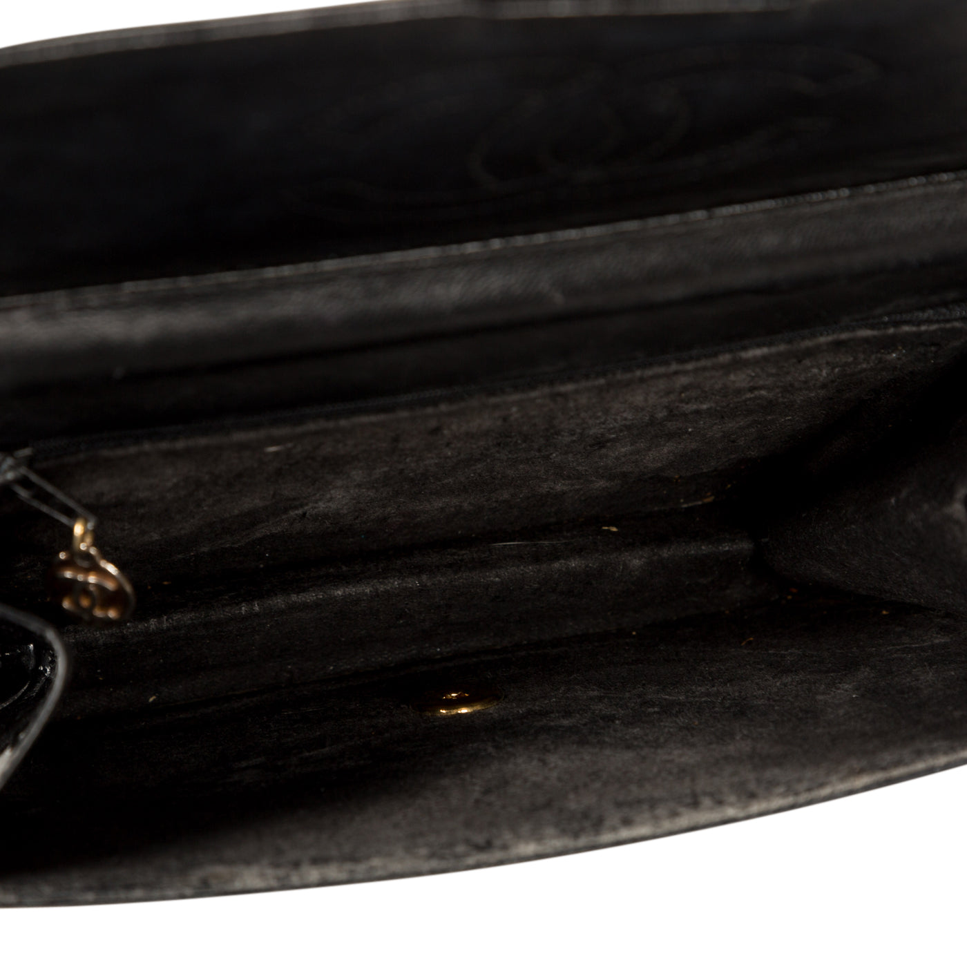 Brilliantly classic and unapologetically aged, Chanel presents its Vintage Flap Bag. Crafted from black patent leather, the Vintage Flap is ideal for those of us who have an adoration for both the past and present. The handbag features the interwoven leather and chain strap alongside Chanel’s signature CC logo closure. Its flap opens to expose an array of storage compartments presented in fabric lining. Similarly to the Classic Flap collection, this Vintage Flap is ideal for both the day and night, with a dress or jeans.