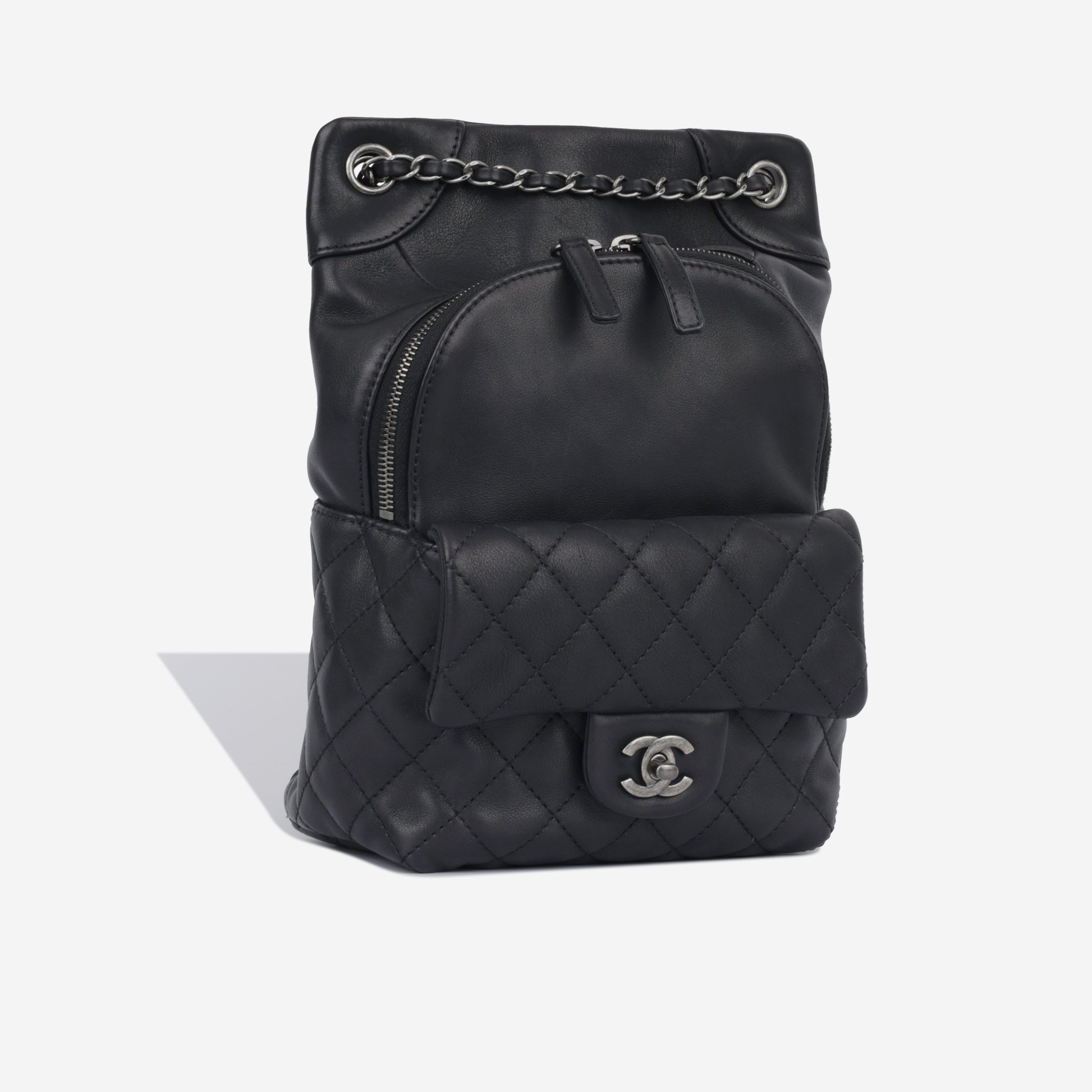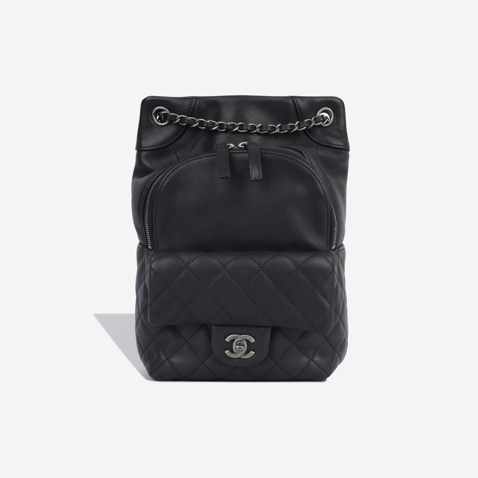 Carefully crafted from calfskin leather, Chanel presents their Day backpack. It's large enough to fit in all your belongings without it being overpowering. It features a front compartment and ruthenium hardware giving this bag a more minimal look since it blends into the colour of the bag.