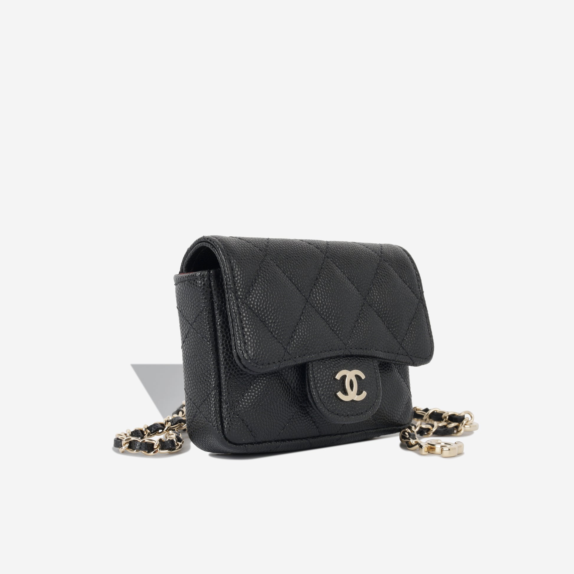 This mini Chanel bumbag is the perfect accessory to amplify all your outfits, day or night, winter or summer. The bag features the coveted caviar leather in black and champagne gold hardware; the classic combination. This is a sweet and modern bag that is functional as well as fashionable.