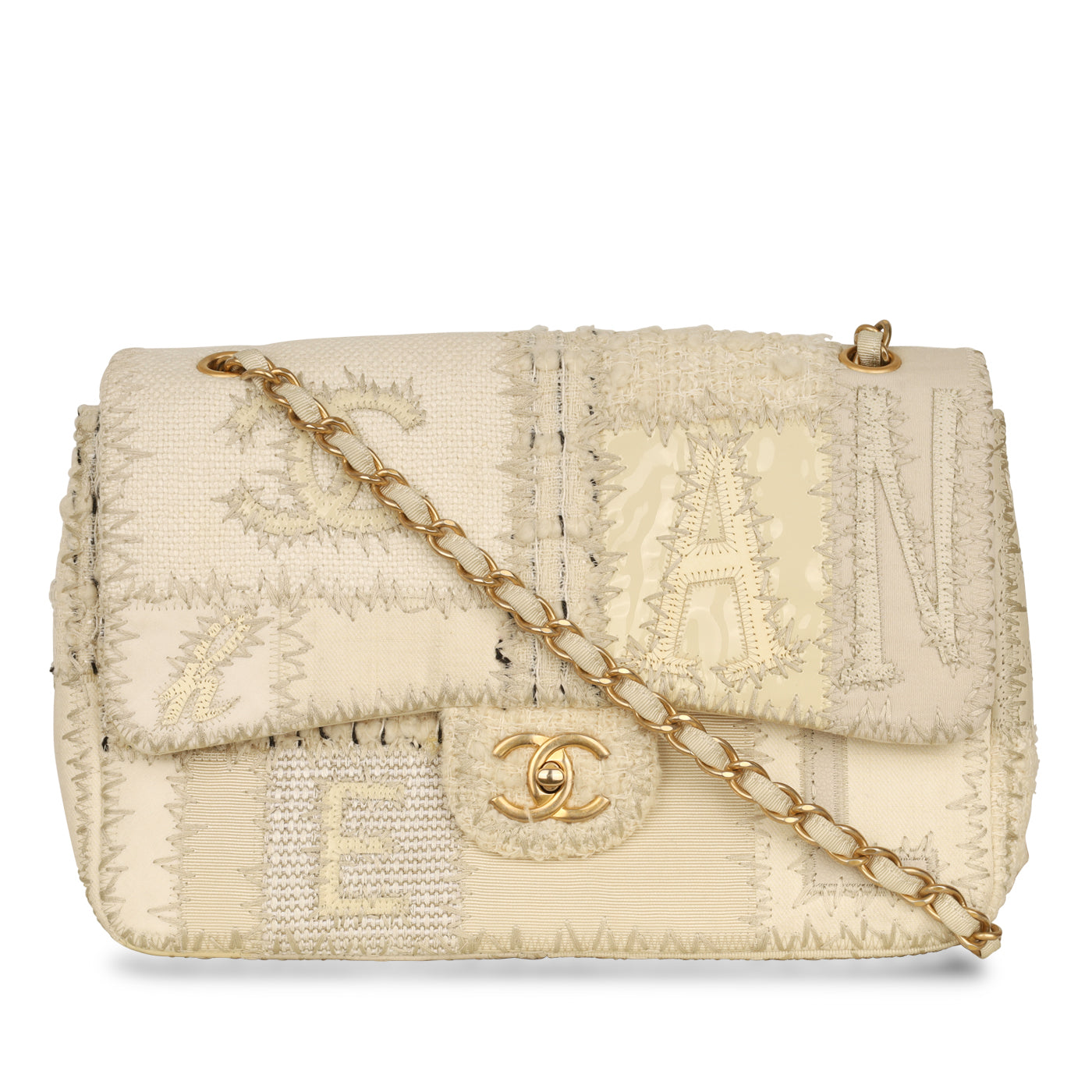 This unique piece is a beautiful take on the Chanel jumbo Classic Flap. It features mixed materials like tweed and patent leather, and accented with detailed stitching. this handbag is elegant and sophisticated. If you like to look a little different from everyone else, then this is the one for you.
