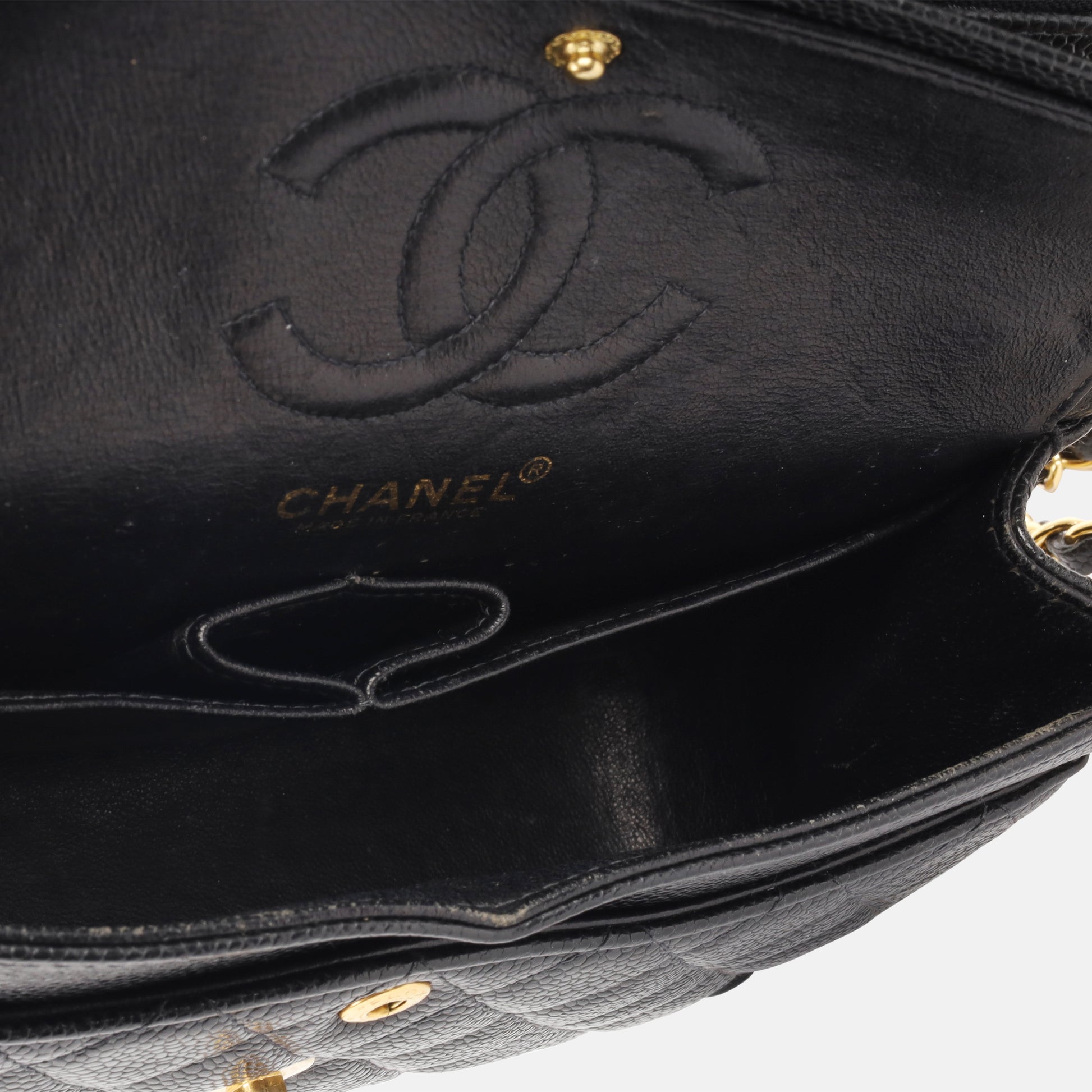 Sleek, refined and effortlessly chic, the vintage Classic Small Flap Bag embodies Chanel’s non-traditionally feminine aesthetic. Crafted from the coveted black caviar leather and complimented by champagne gold hardware, there is nothing more beautiful than this.