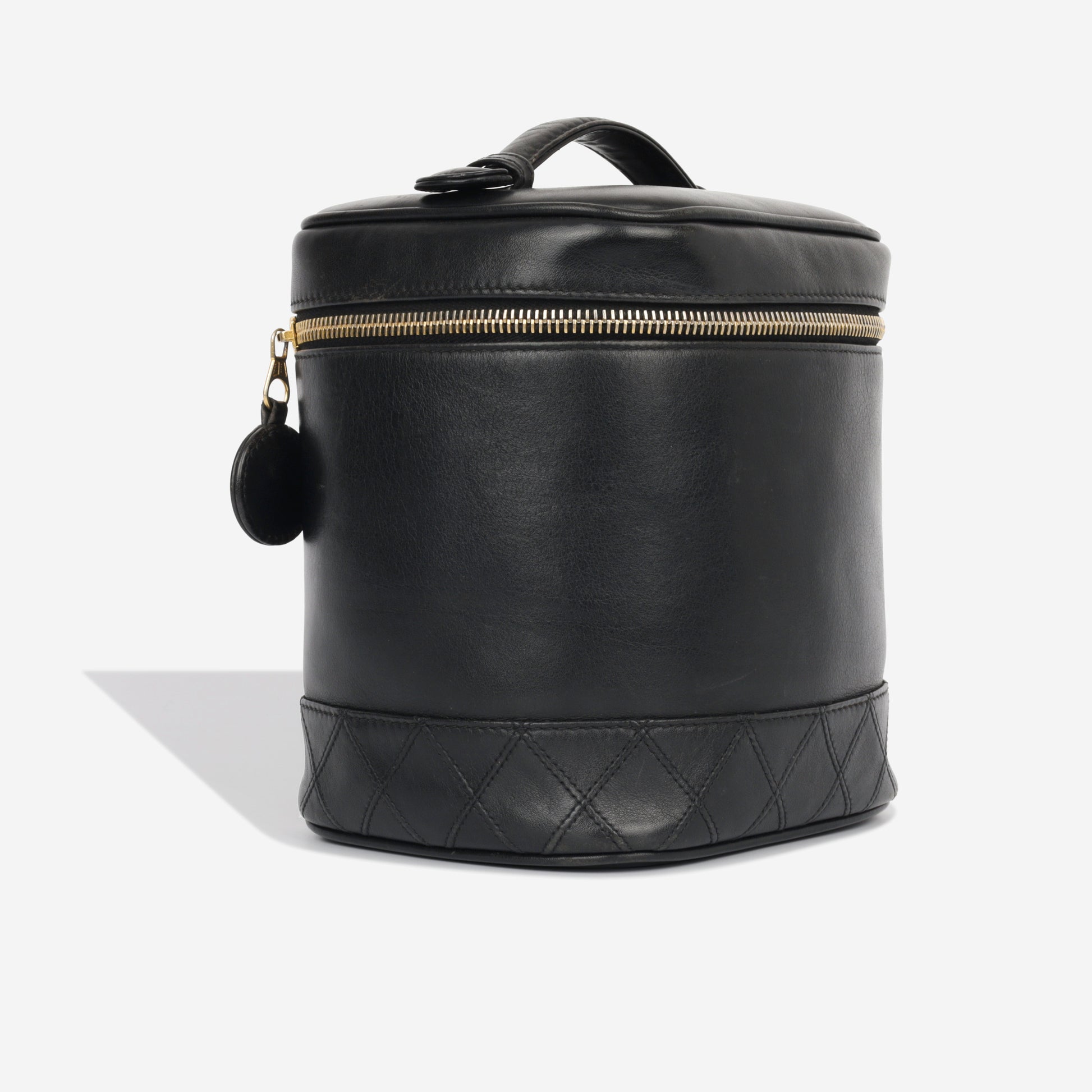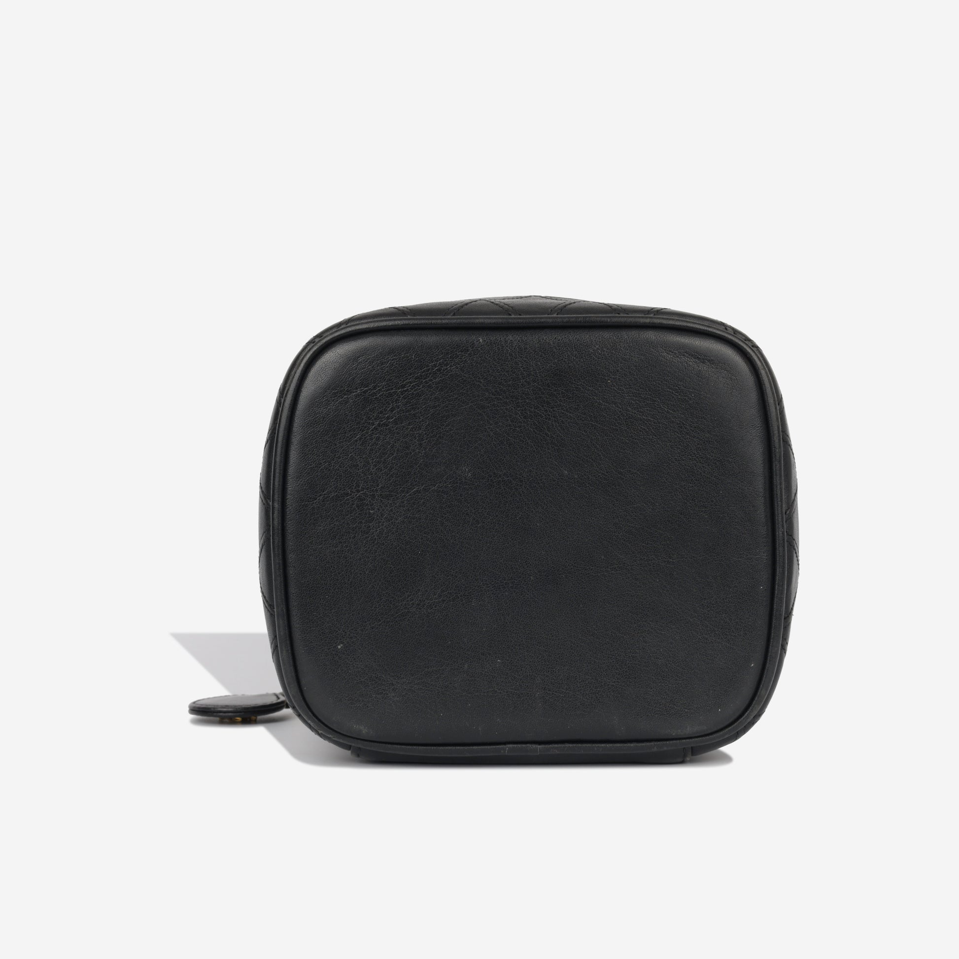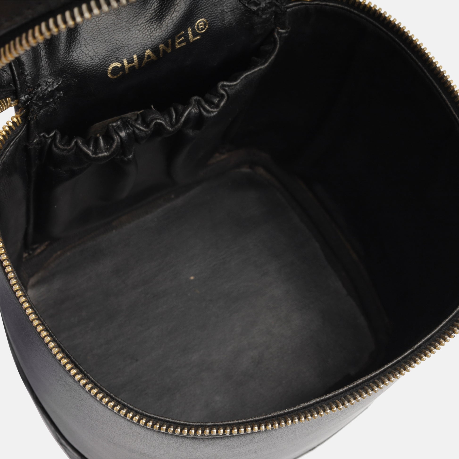Chanel’s vintage collection presents one of its highly sought and rare gems, the tall Vanity Case. Primarily developed for storing your tiny beauty essentials and other small necessities, the vanity case has come a rather long way since its birth. This vanity case is presented in gorgeous black calfskin leather alongside complimentary gold toned hardware.
