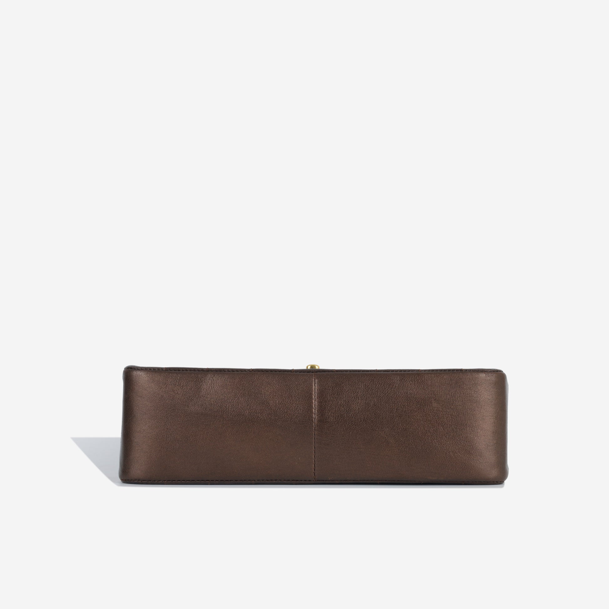 For timeless Parisian-chic there is no better investment than a Chanel flap bag, and this vertical flap bag is a great alternative to a classic, and remains chic and practical. This stylish shoulder bag is beautifully crafted from metallic bronze calfskin leather in a and complimented with champagne gold hardware Under the creative direction of Karl Lagerfeld, Chanel have continued to create these flawlessly crafted handbags which last a lifetime.