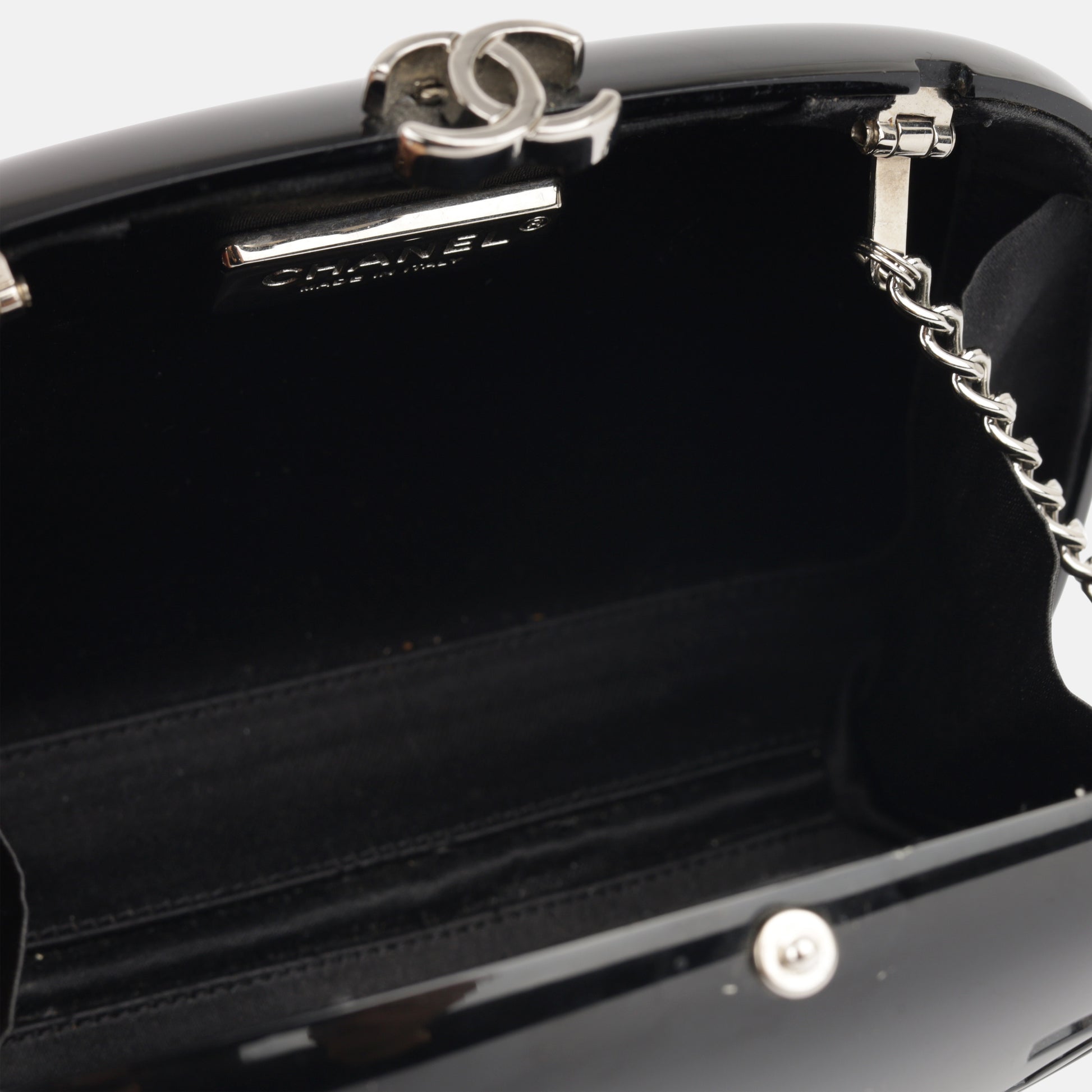 - Black satin fabric interior