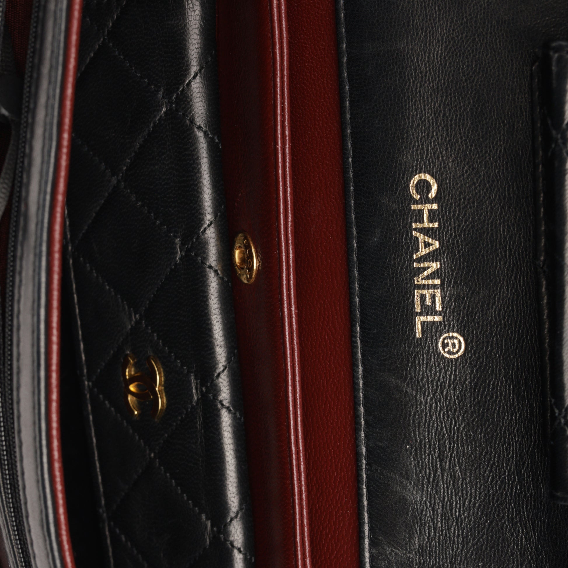 - Chanel embossed leather logo