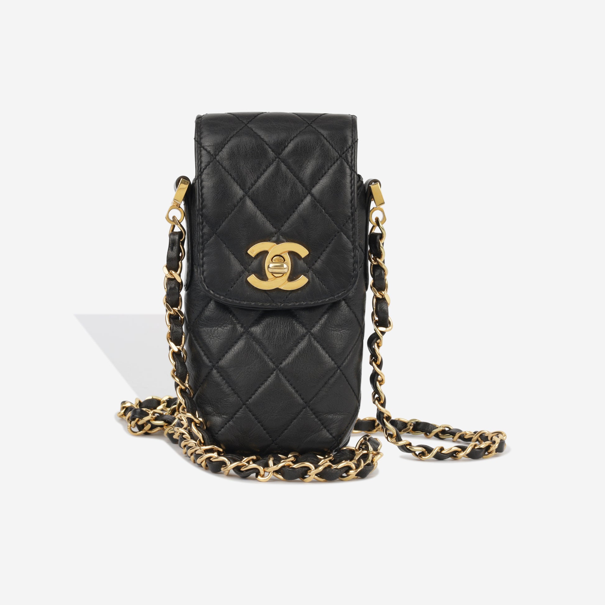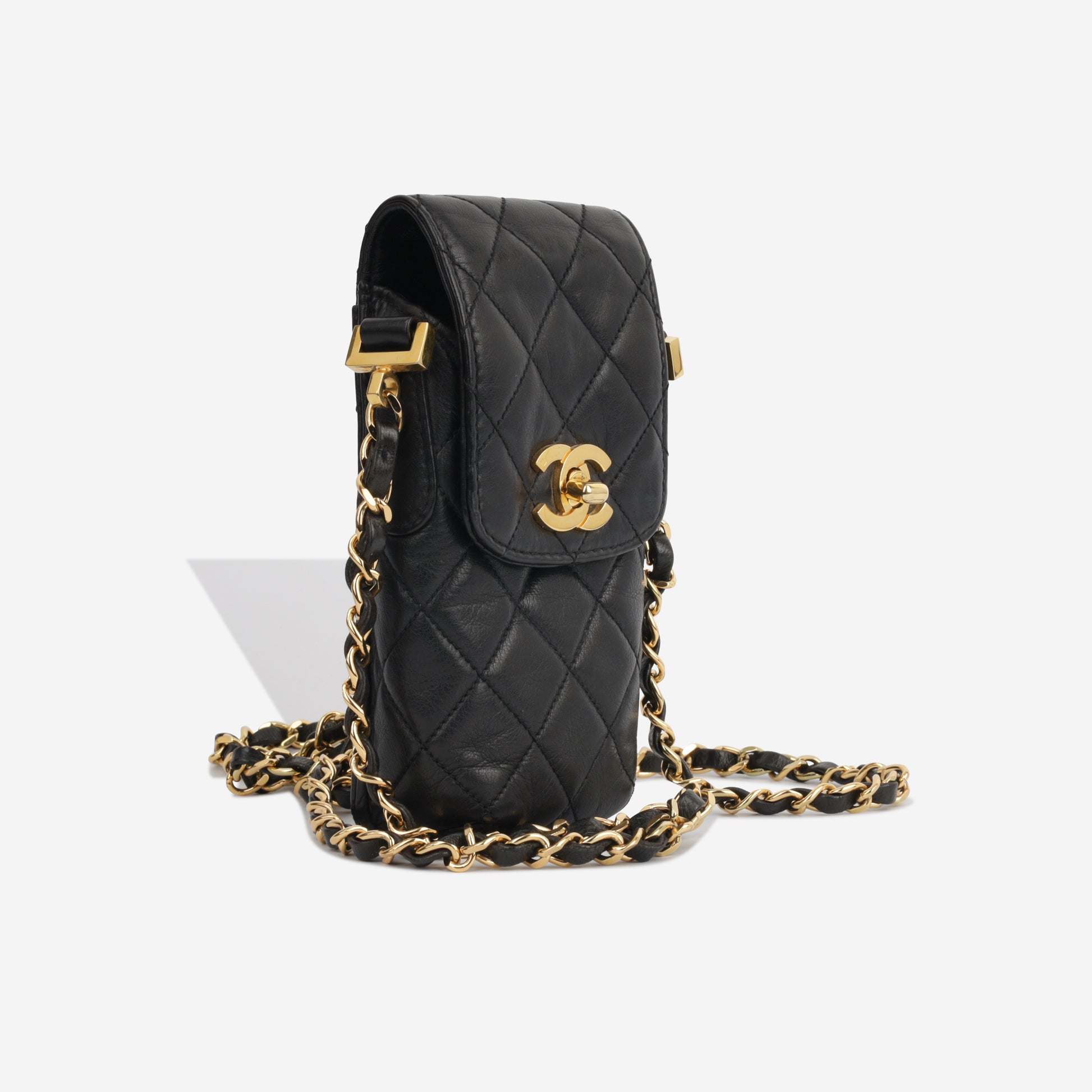 The Phone Pouch crossbody from Chanel is the perfect vintage accessory to complete any outfit. The black lambskin with gold hardware is the perfect combination of colours for a classic look. Designed of course for older model phones which were much larger, this sizing makes it appropriate for phone sizes of 2023. Use it for this purpose, or for any small items you want to carry with you. This stunning little gem is a well-worthy addition to your handbag collection.