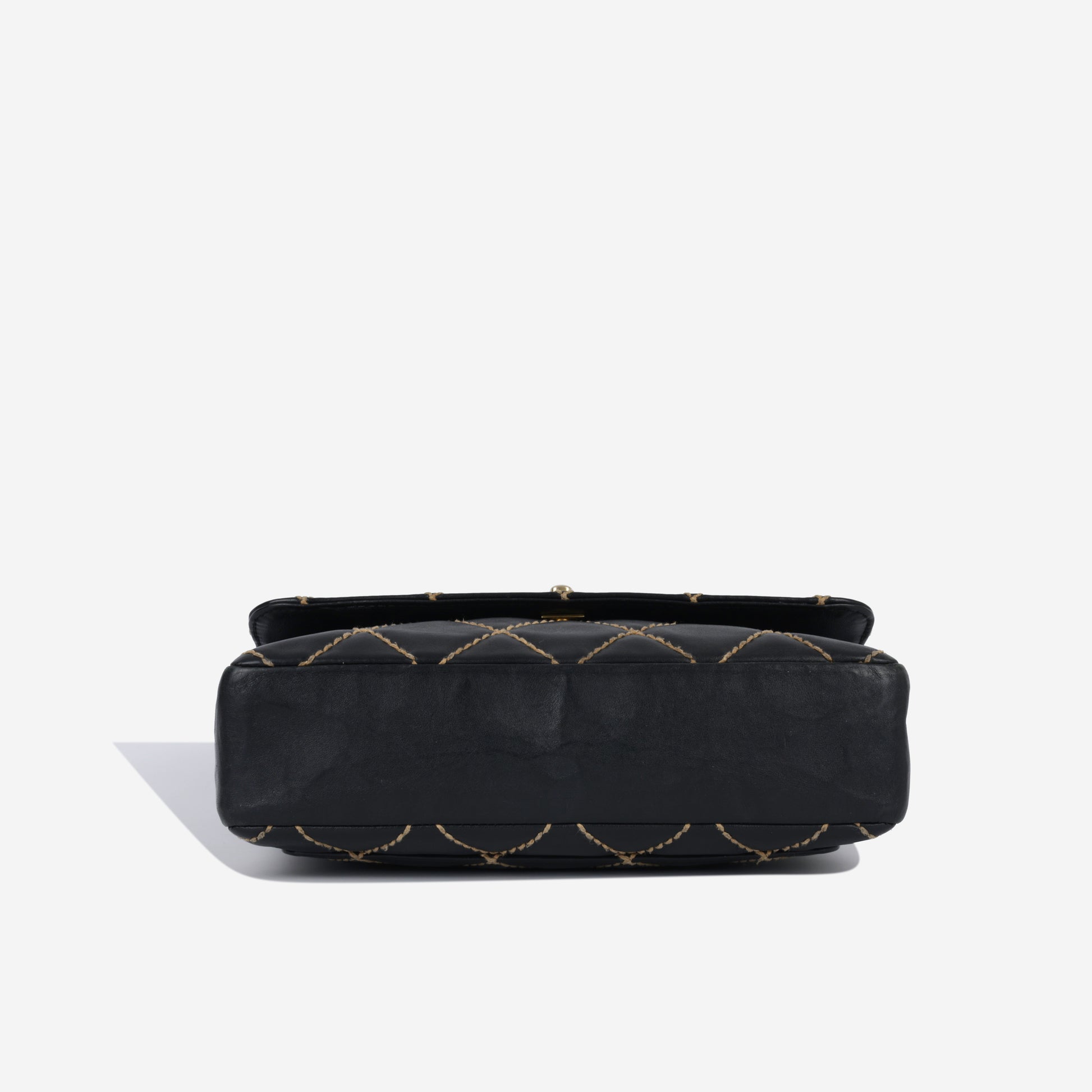 This beautiful piece is a slight variation on Chanels classic flap. Created from black calfskin leather, this bag features beautiful thicker stitching which adds dimension to this bag. In a similar size to the classic medium, it is the perfect size for taking with you day to day and fit your belongings comfortably.