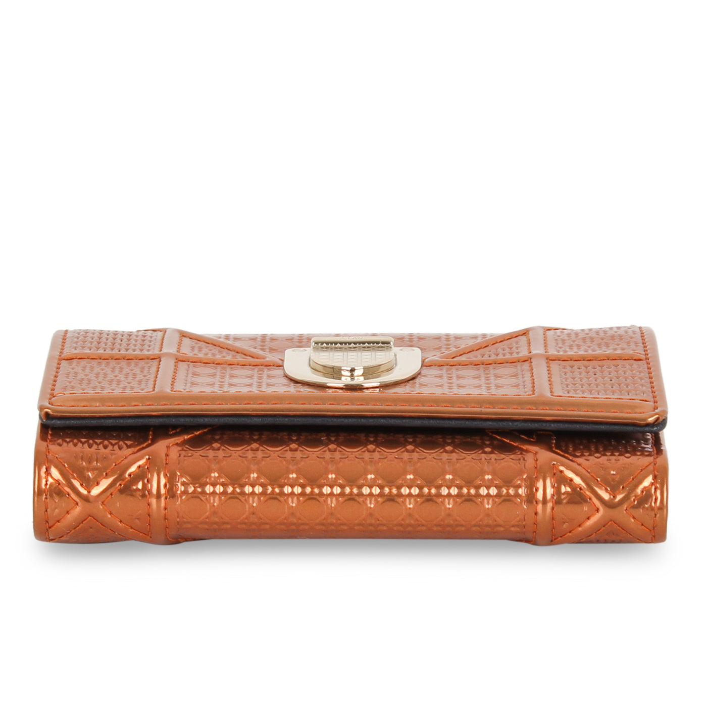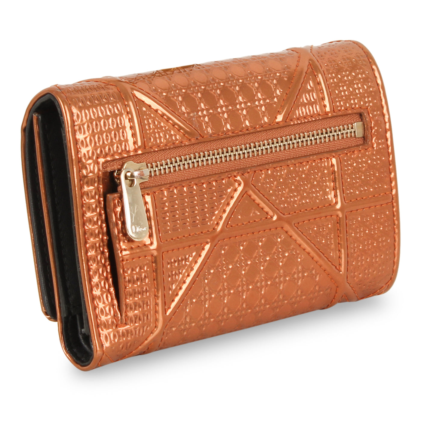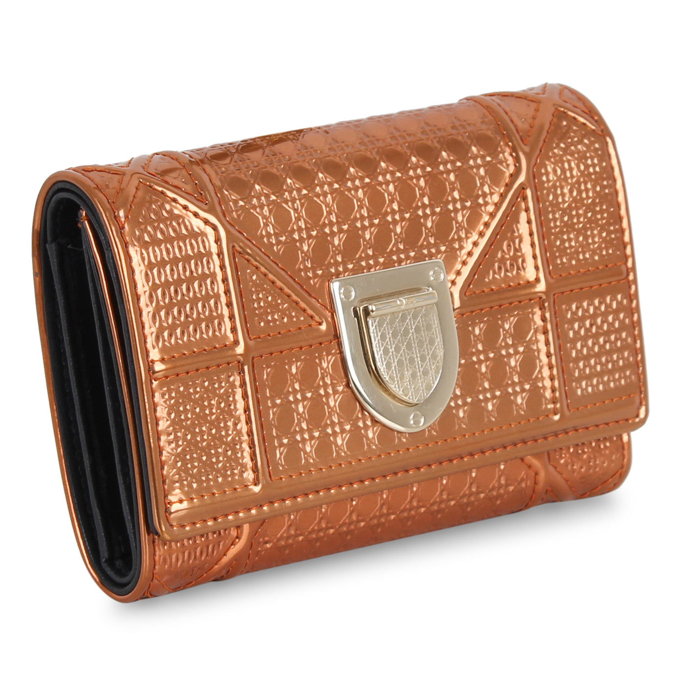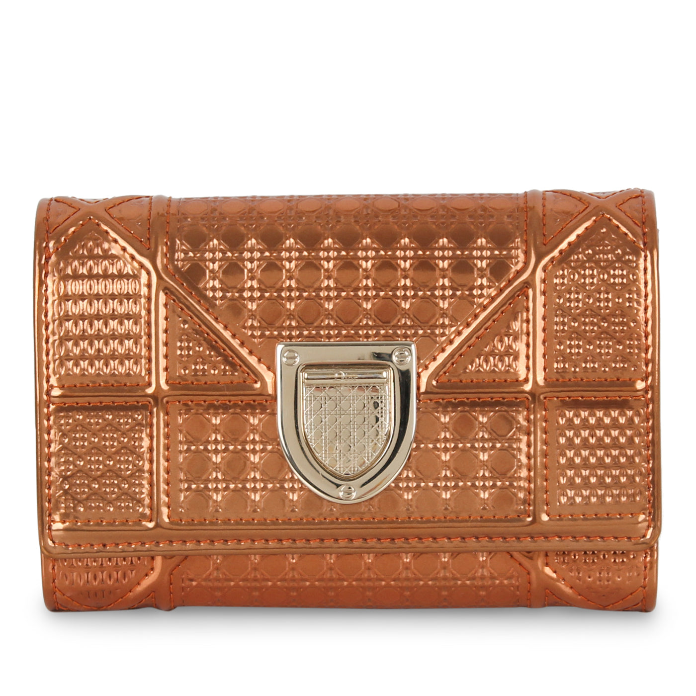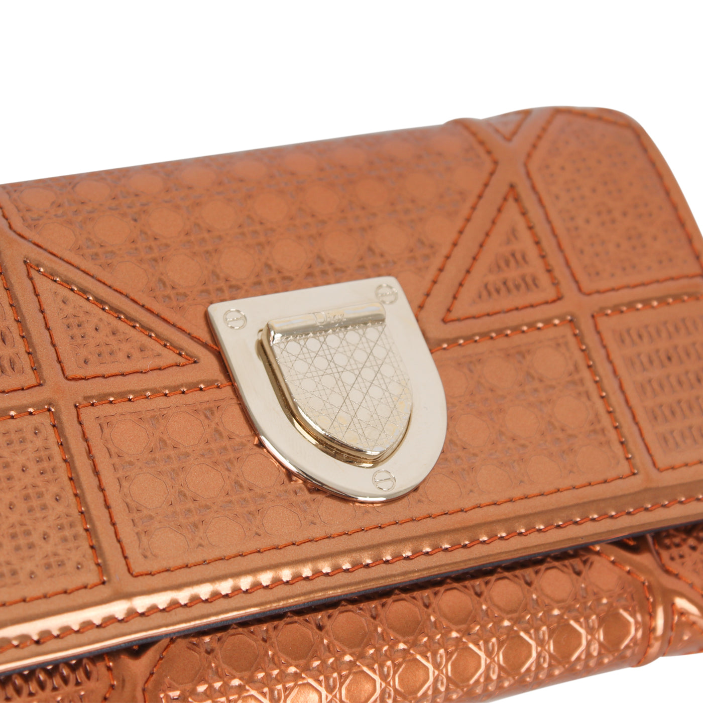 The definition of a statement piece, this Diorama purse is an absolute showstopper. Crafted from bronze-tone metallic calfskin with an micro-cannage motif, it's difficult for heads not to turn when pulling this out your bag. The Diorama has become a timeless piece from Dior's accessories line and is sure to never go out of style. For the woman who wants to add a little bit of drama to her life by carrying some shimmer with her wherever she goes, this Diorama purse is a well worthy addition to any luxury handbag and accessories collection. A trust must have for any lover of timeless pieces and a special spot for Dior.