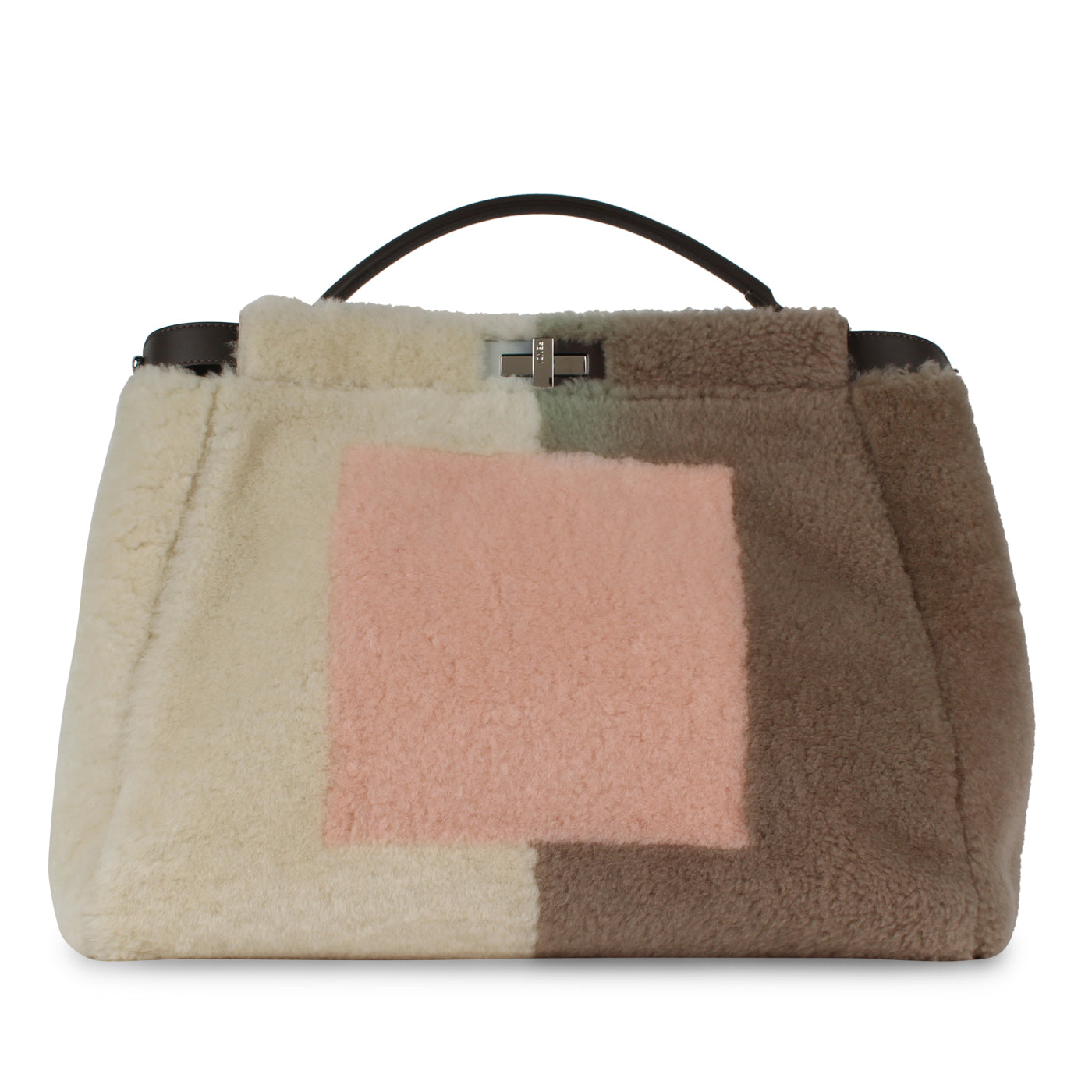 Fendi presents its iconic Peekaboo bag with a unique Shearling exterior in several colours. This bag is the perfect option for a modern, sleek woman on the go. With two interior compartments divided by a stiff partition, an interior zip pocket, as well as the signature twist clasp - the Peekaboo is stylish, sophisticated, and elegant. It's spacious enough to carry your every day essentials, offering function as well as being a timeless piece that will never go out of style.