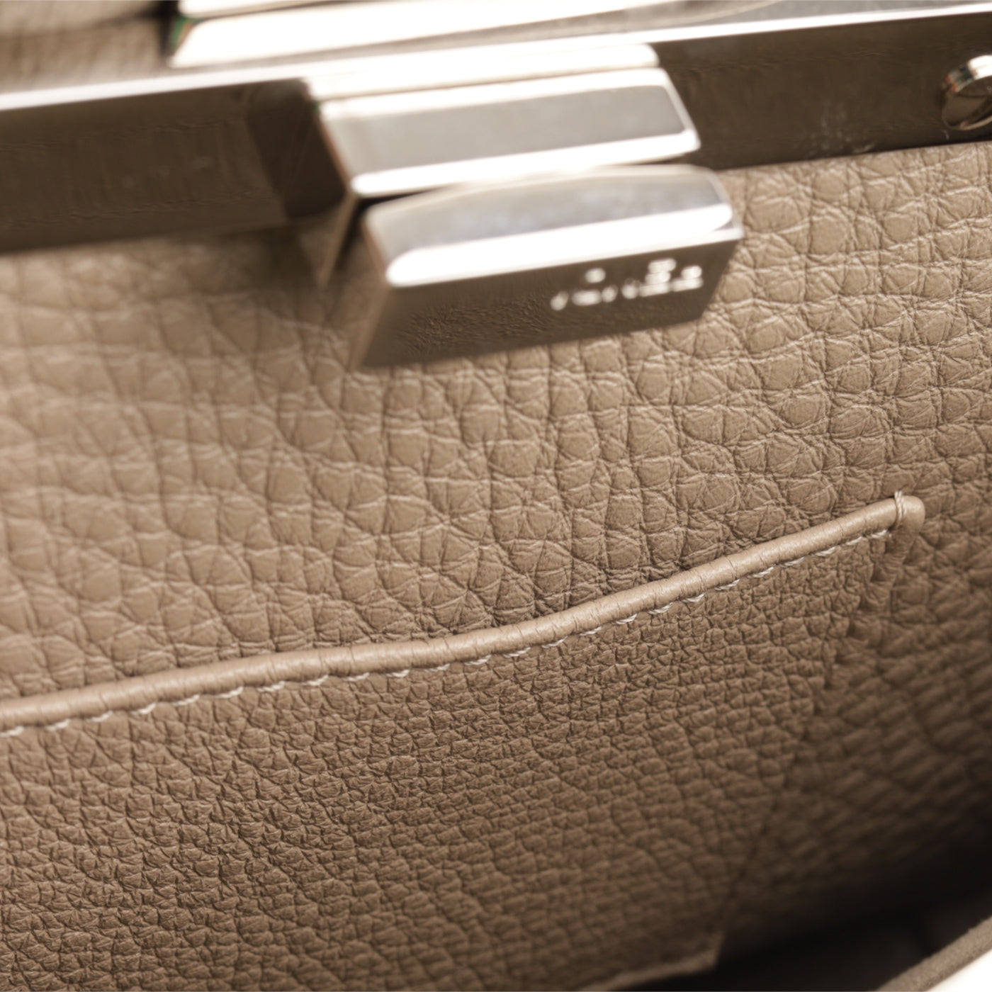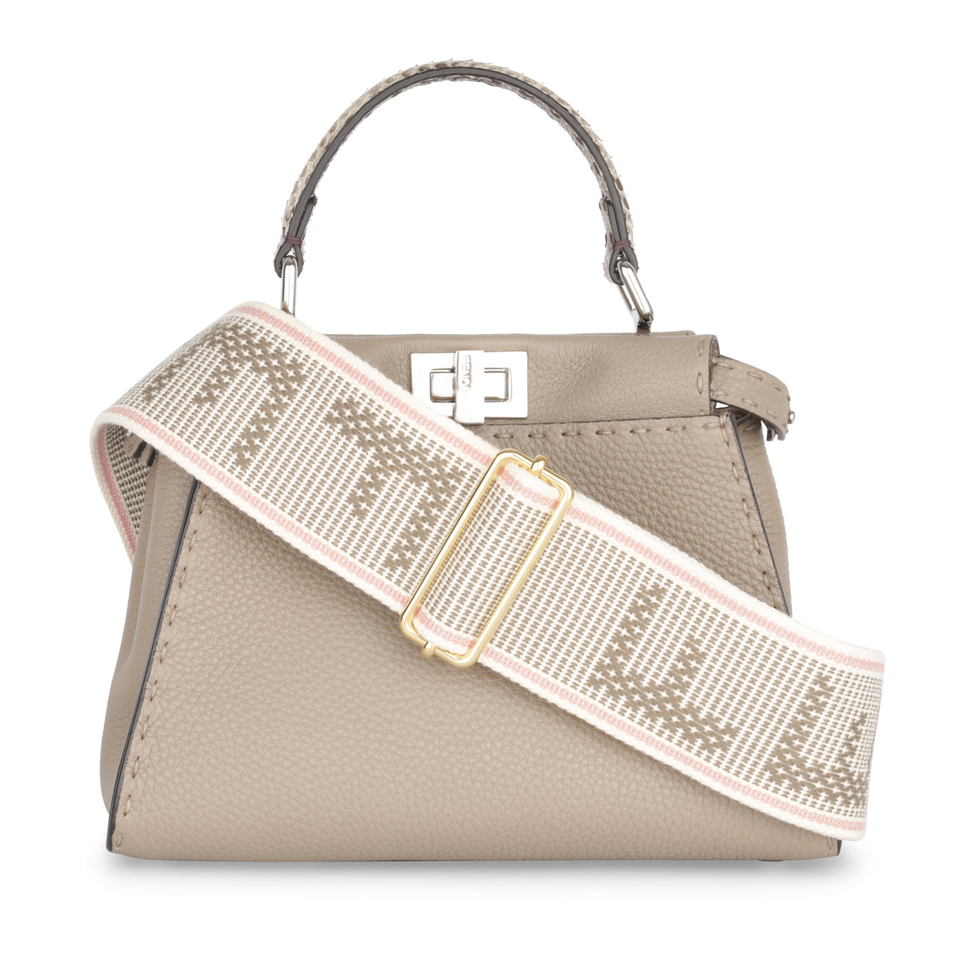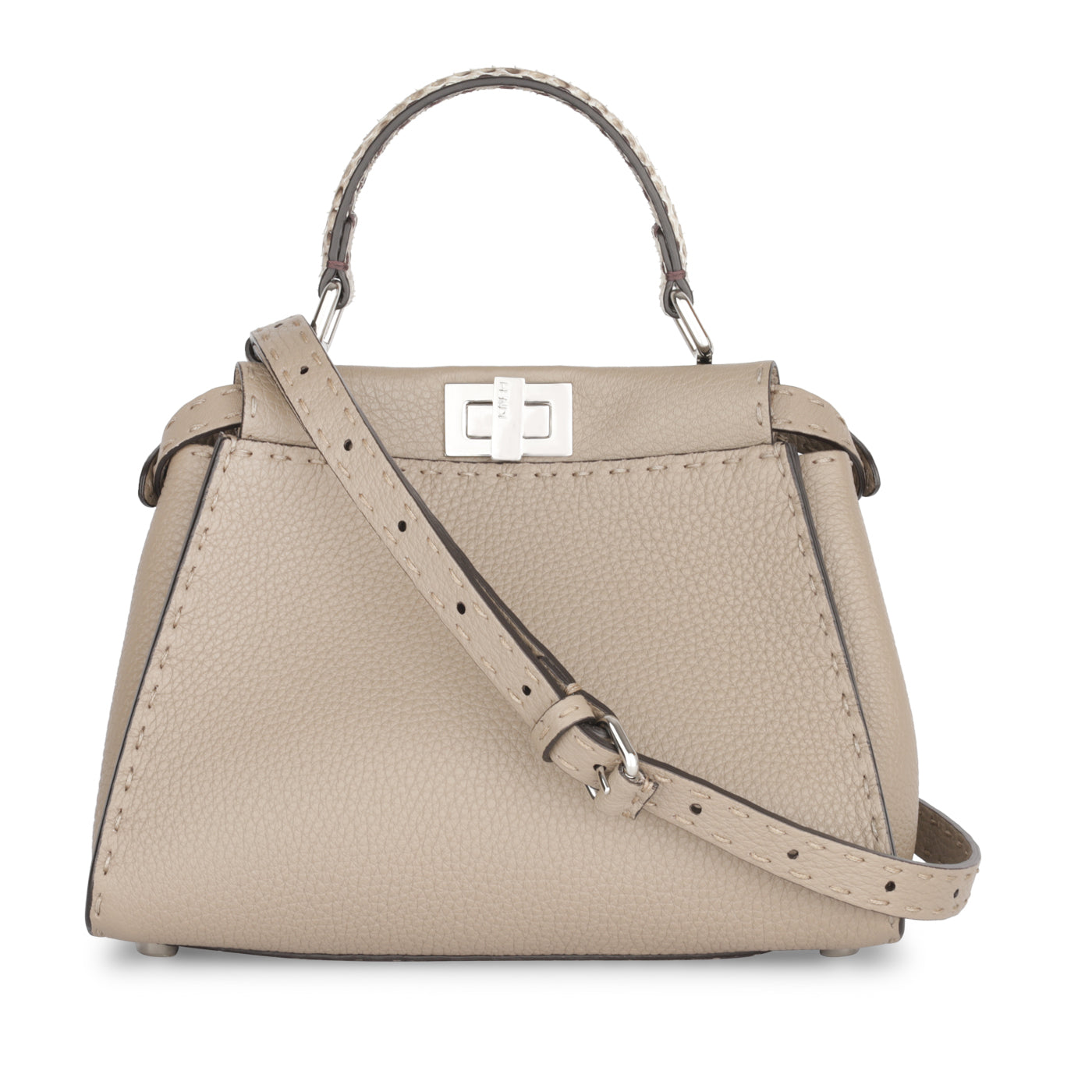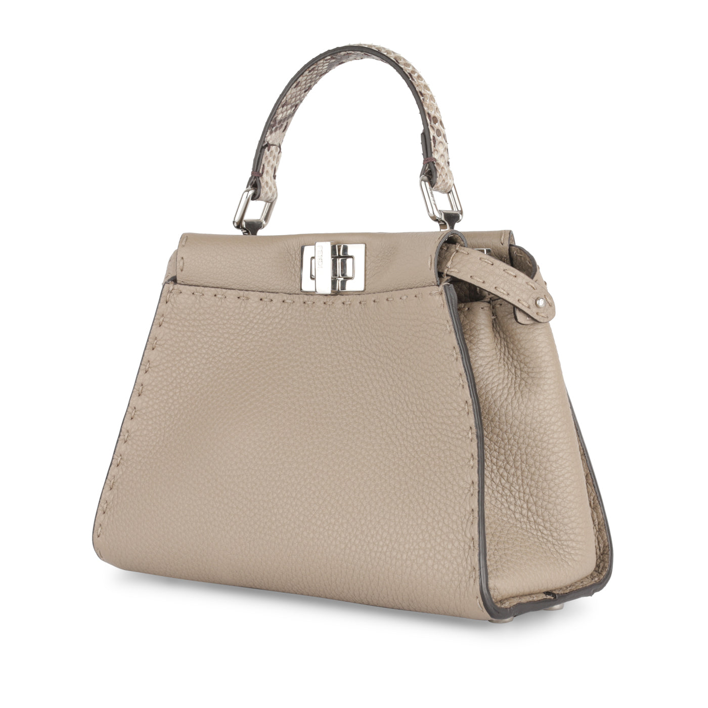 An iconic signature from the Italian fashion house, the Fendi Peekaboo is a timeless classic that will never go out of style. Sleek, stylish and effortlessly chic in the most discreet way possible, the Peekaboo was made for the refined woman with a love for luxury and an understated sense of style. Carefully crafted from taupe leather and a complimenting exotic leather top handle. the Peekaboo is an accessory that will compliment any and every outfit for any and every occasion.