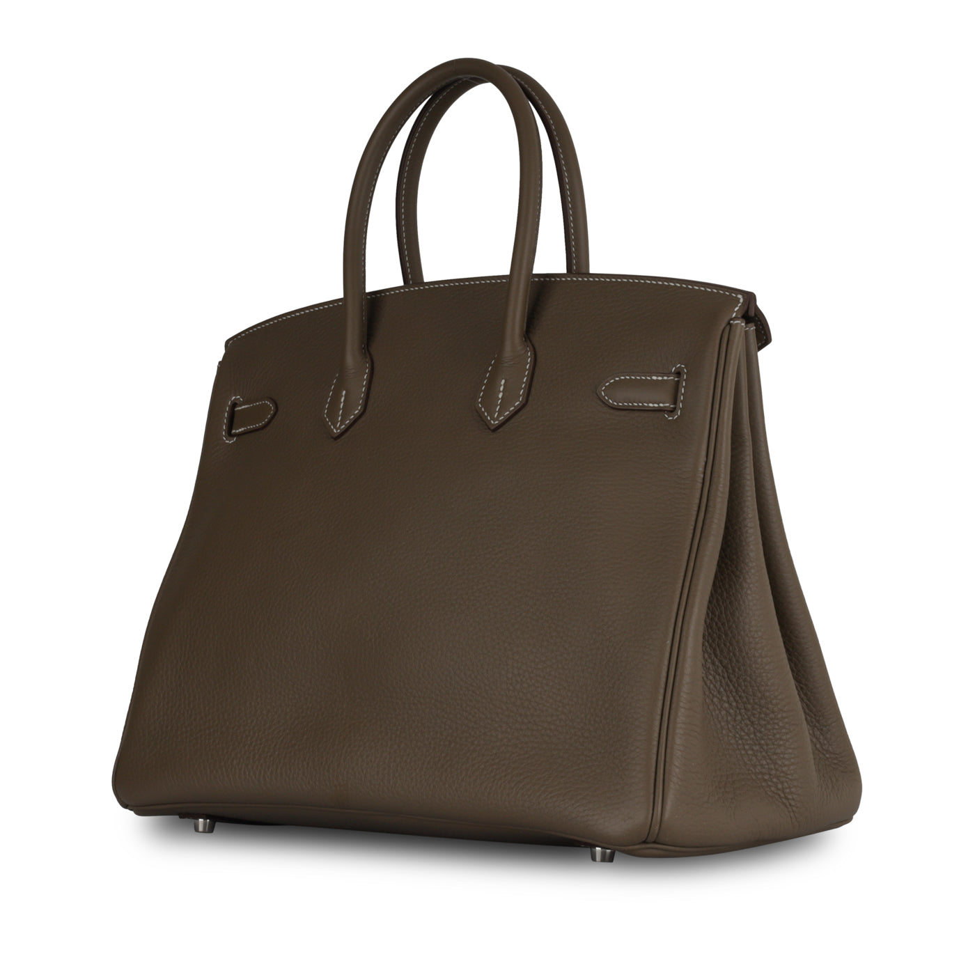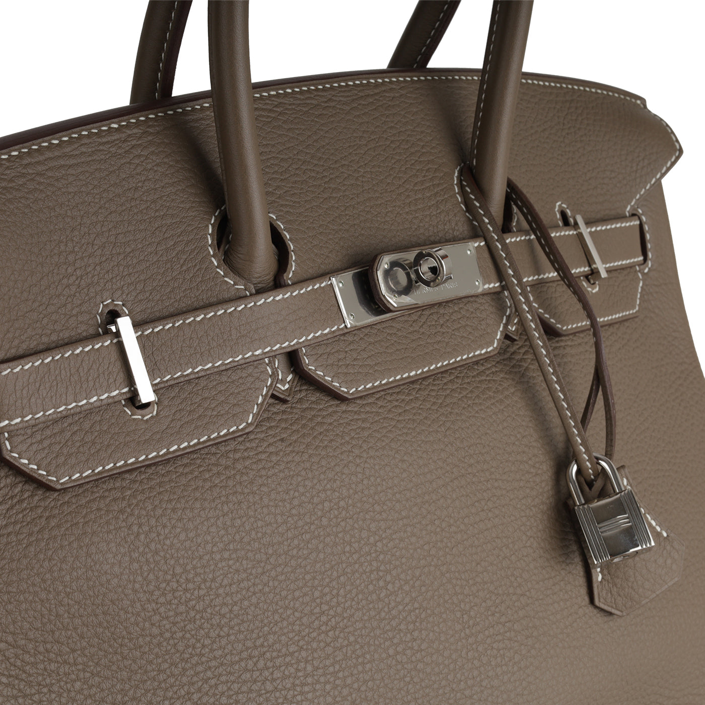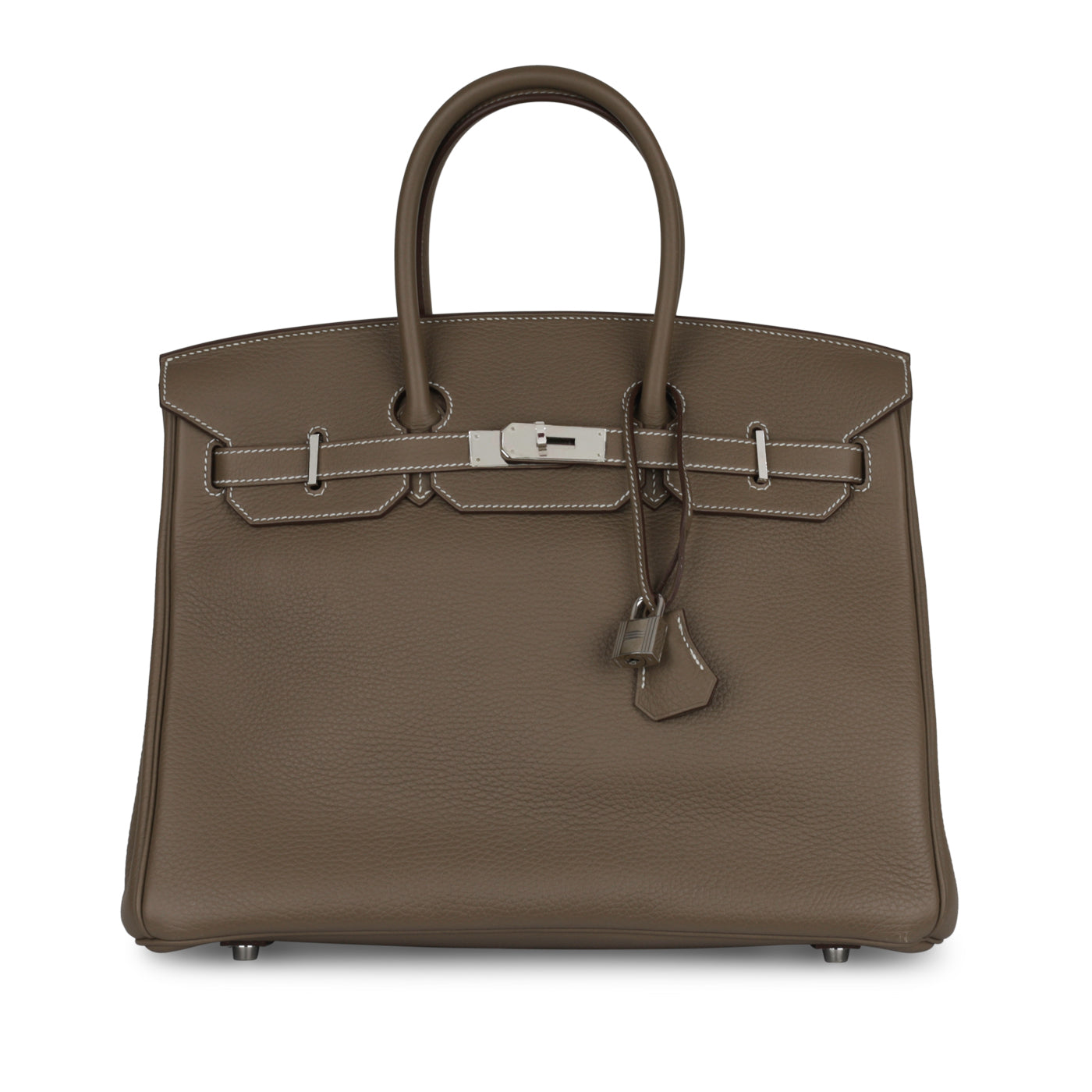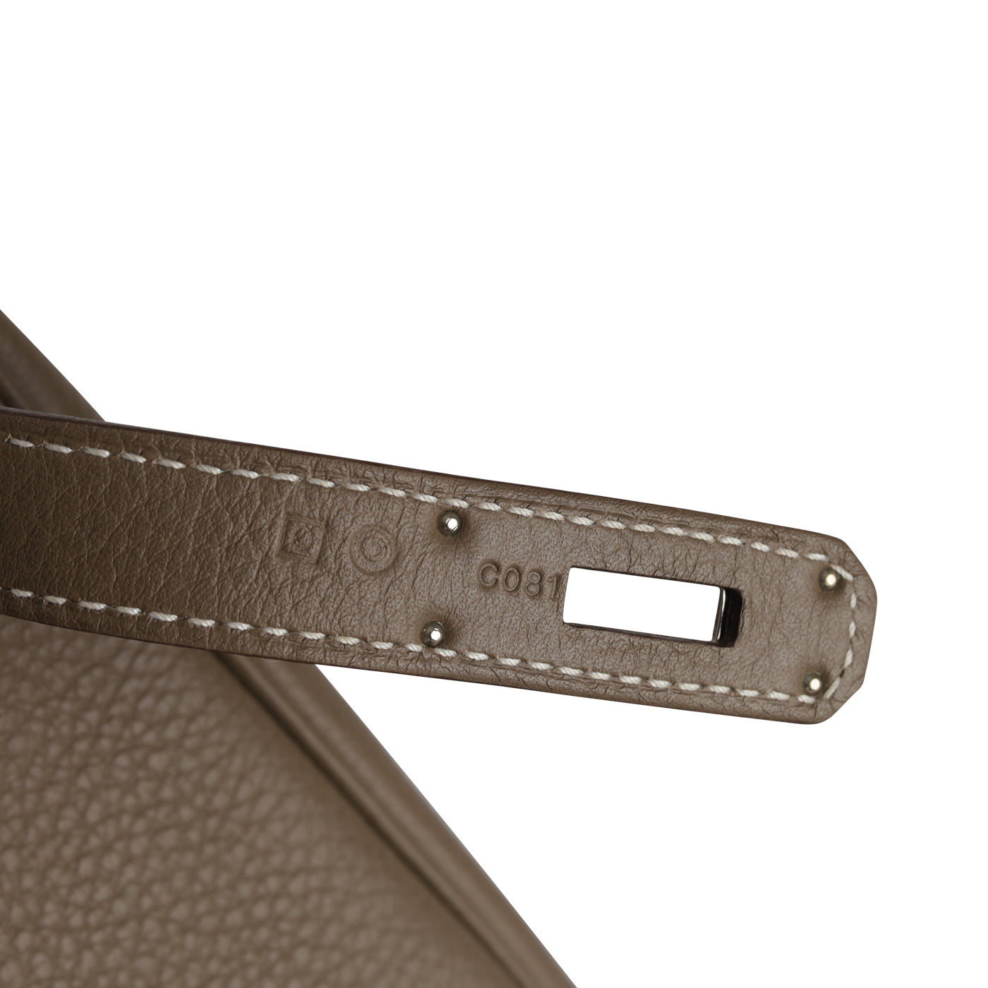 Alongside its iconic sister bag, the Kelly, Hermès presents their iconic Birkin bag - the most internationally recognised and in-demand bag in the world. Originally created in 1983 when Jean-Louis Dumas met Jane Birkin on a flight from Paris to London. Expertly constructed from soft and durable Etoupe Clemence leather, this Birkin is stylish, sleek and sophisticated. Discreet and understated, the Birkin exudes a true "if you know, you know aesthetic."