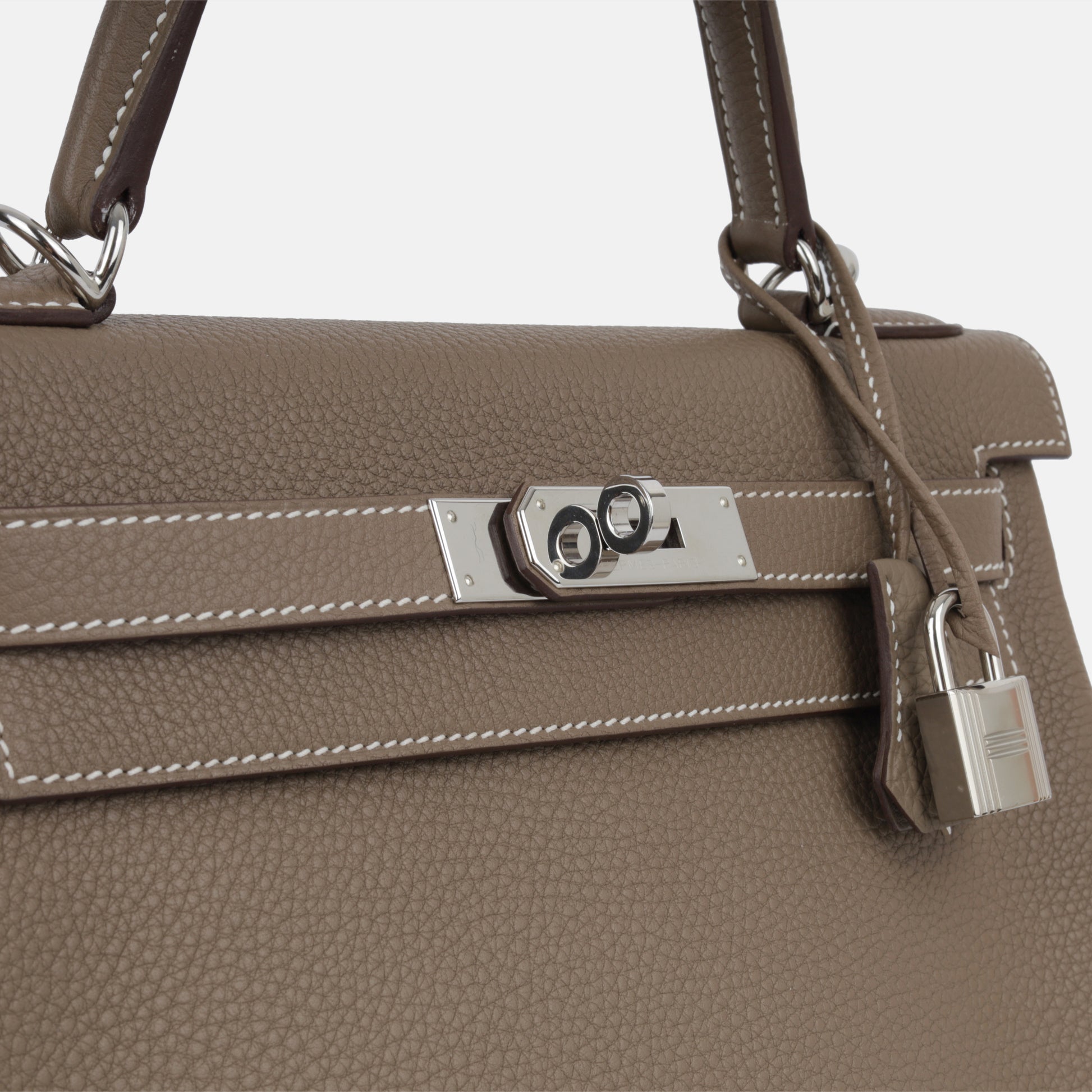 One of the most iconic and desired bags around the world, the Hermès Kelly, along with its sister bag, the Birkin, are the two most internationally recognised bags of all time. Created and designed for actress and Princess of Monaco, Grace Kelly, the bag received its claim to fame when the Princess was supposedly using her bag to shield her baby bump from the paparazzi. Crafted in luxurious Etoupe Togo leather, the Kelly is structured and durable but maintains its classic silhouette.
