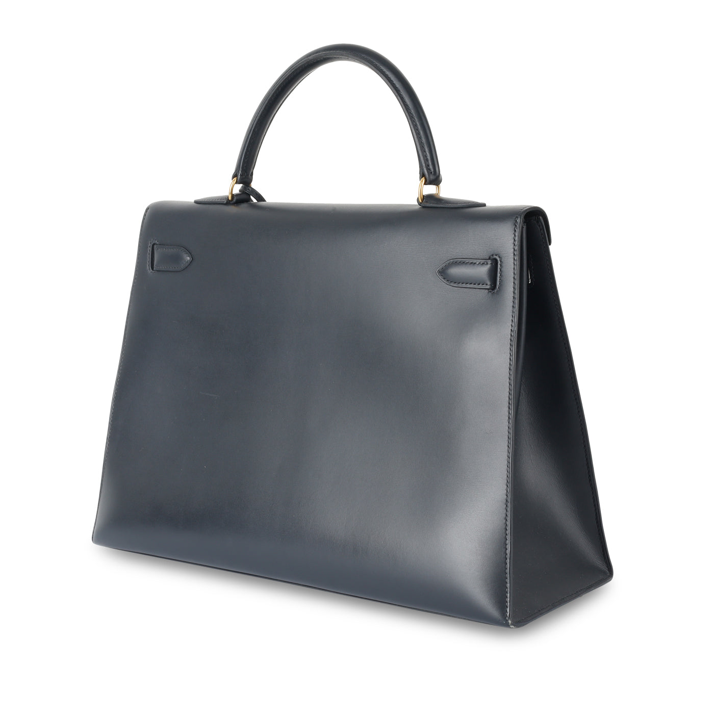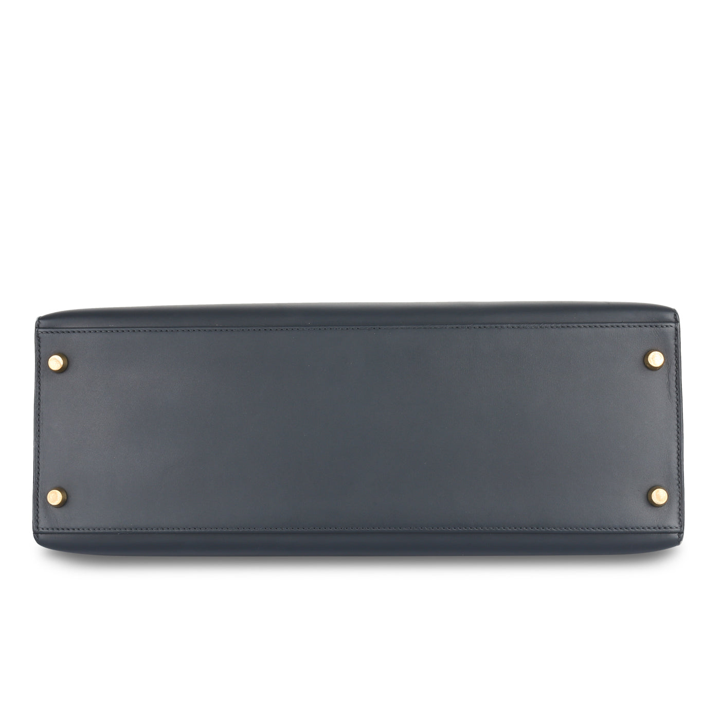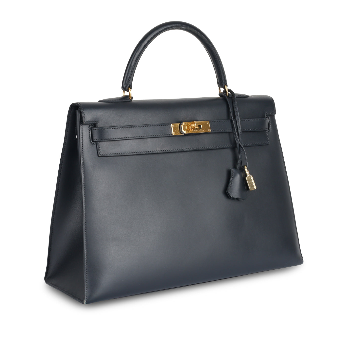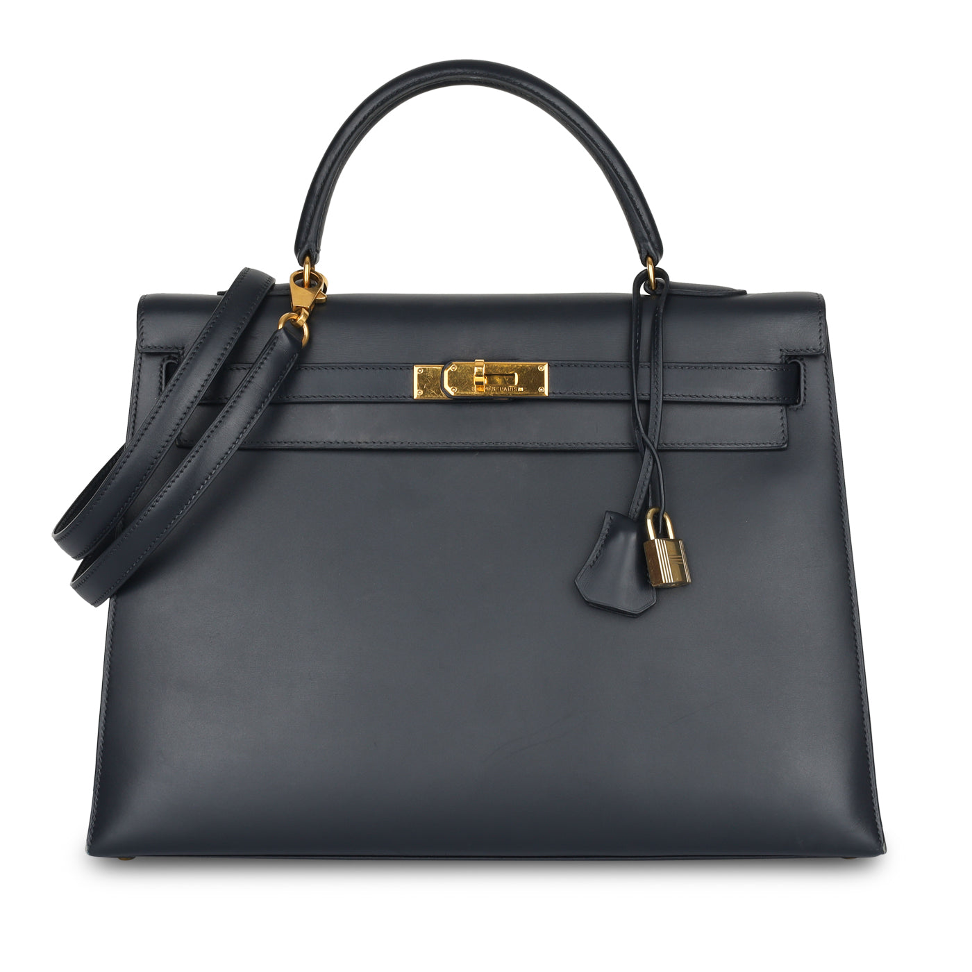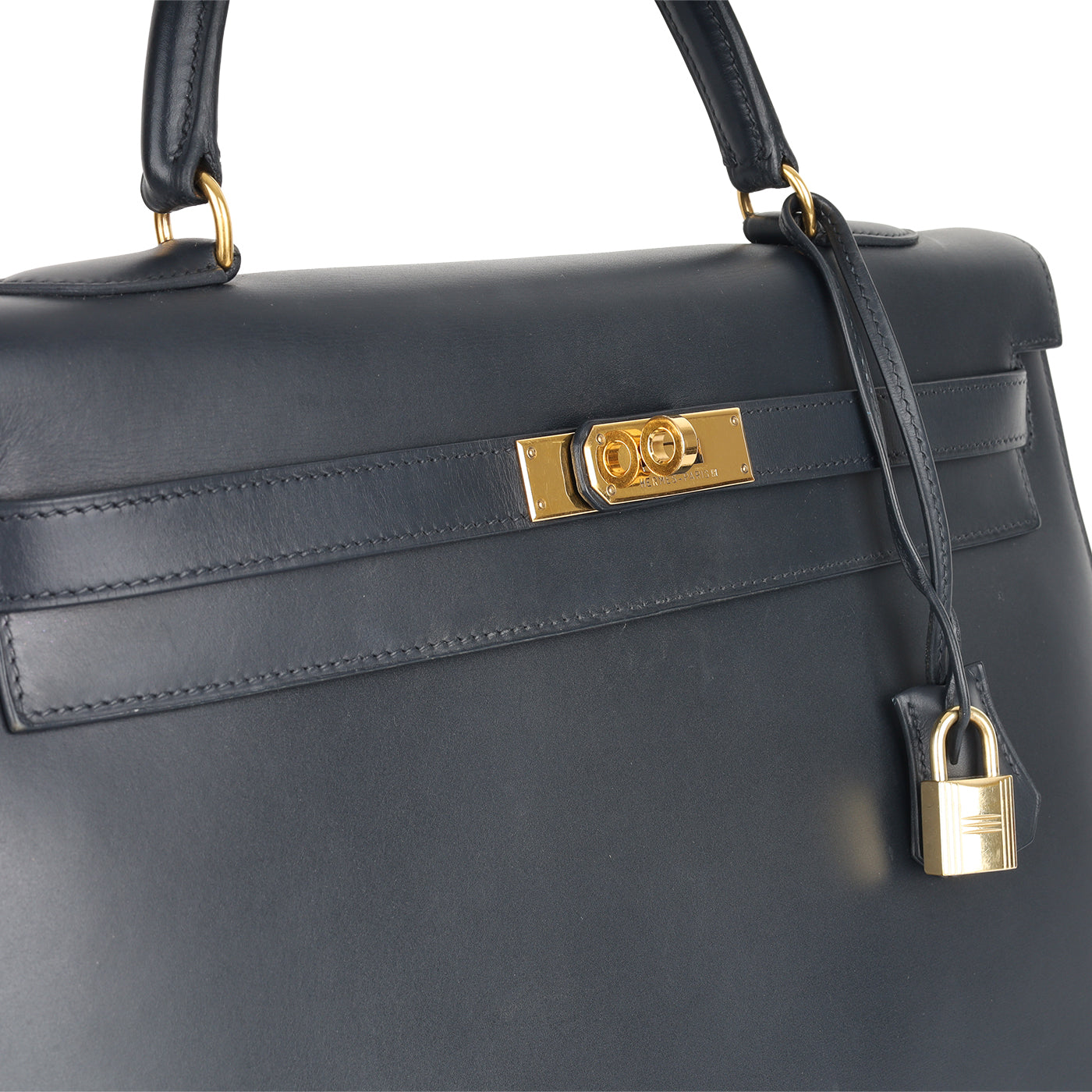 The Hermes Kelly - alongside its sister bag, the Birkin, is one of the most desired bags in the world. Originally created and designed for actress and Princess of Monaco, Grace Kelly - the Kelly bag is true investment piece that will never go out of style. Carefully crafted in smooth, navy box calf leather, this bag is durable as well as timelessly elegant by combining the ideal mix of function and fashion.