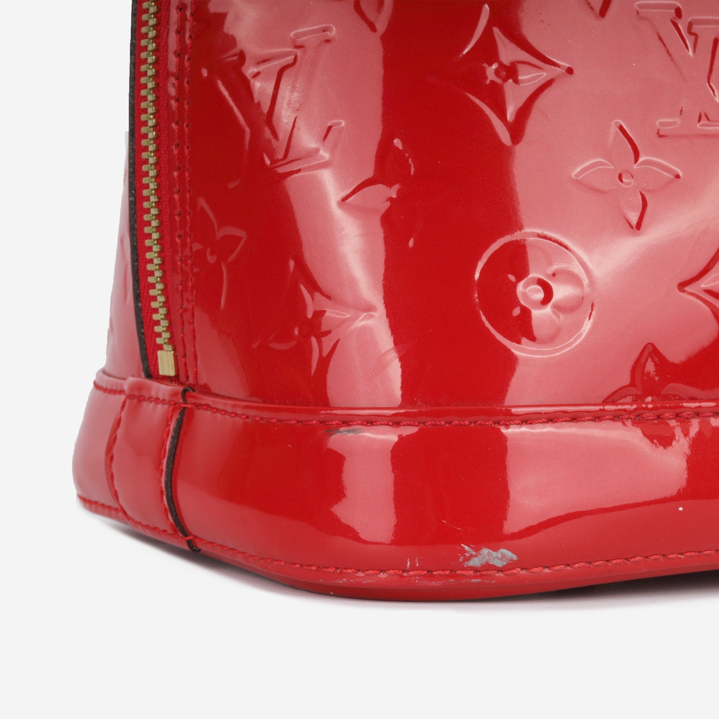 Carefully crafted in shimmering, green monogram vernis leather, Louis Vuitton presents their iconic Alma bag. A signature piece for the brand, the Alma is one of the most popular LV bags and is constantly in-demand. With their monogram logo print embossed into the leather, this bag is the perfect example of a "subtle statement" piece.
