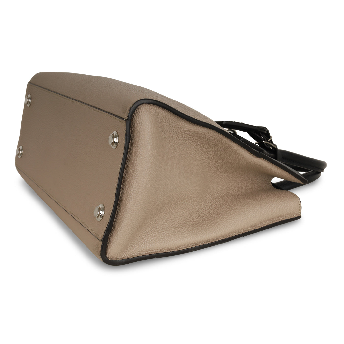 Louis Vuitton presents their ever-popular City Steamer tote. Inspired by historic House luggage by Vuitton and restyled for contemporary living by Creative Head, Nicolas Ghesquière. This particular City Steamer MM handbag is crafted from rich grained calfskin in taupe and black, and is a more understated piece from Louis Vuitton.