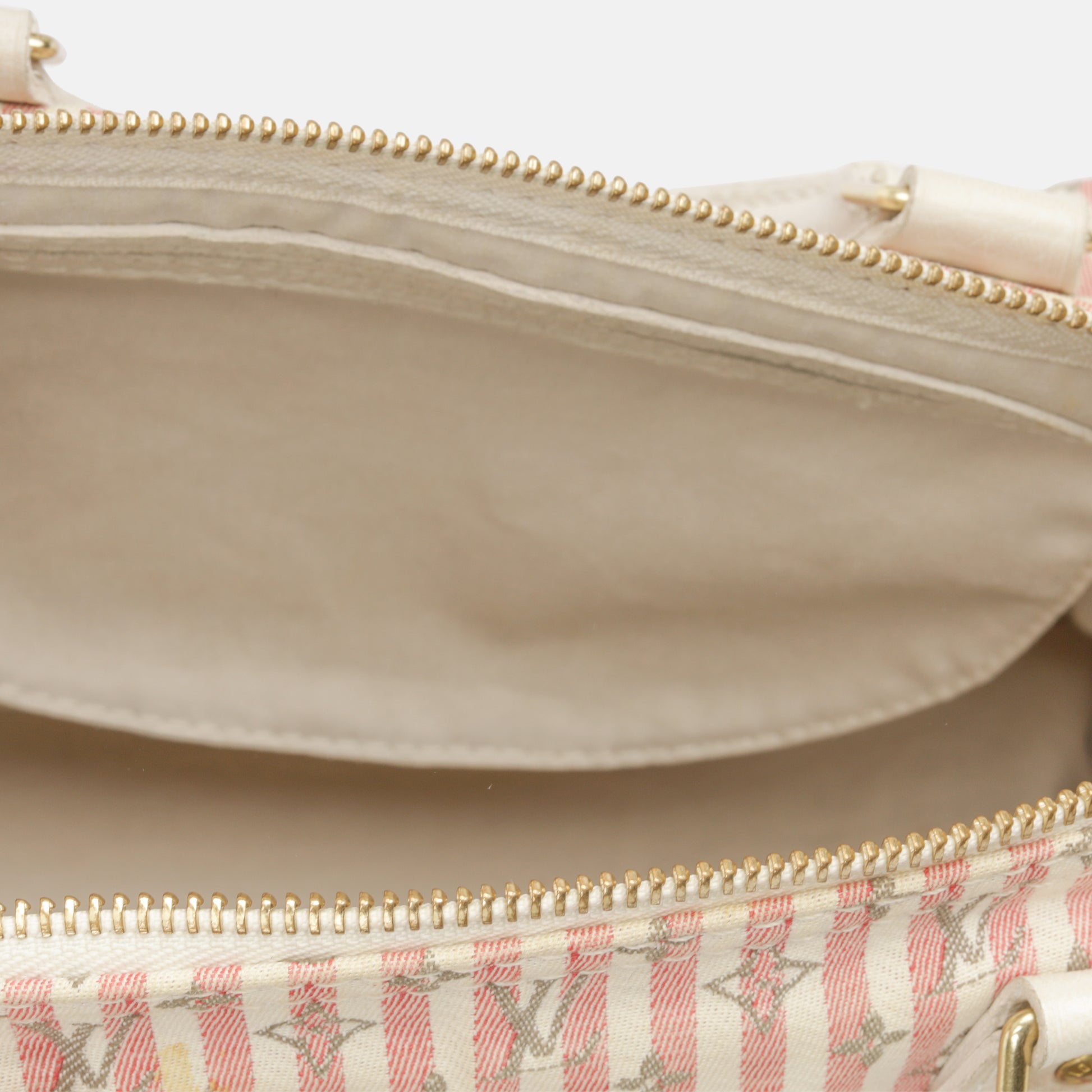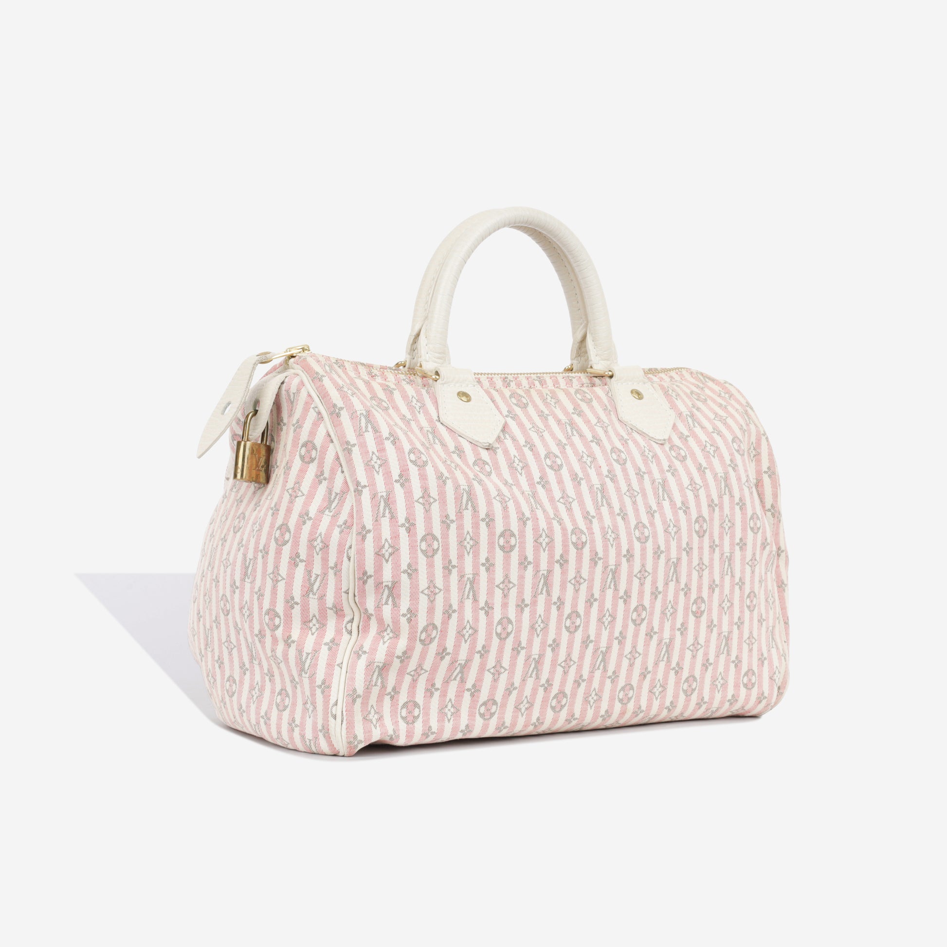 One of the most iconic bags in fashion history, the Speedy was the first ever handbag from the legendary French Fashion house. Originally created after the immense success of Louis Vuitton’s Keepall, Georges Vuitton invented the smaller version in 1932. Thus, the Speedy was born and it remains one of the necessary additions to any luxury handbag collection. Crafted in the brand’s limited edition Pink and Ivory striped detailing with matching white leather features.